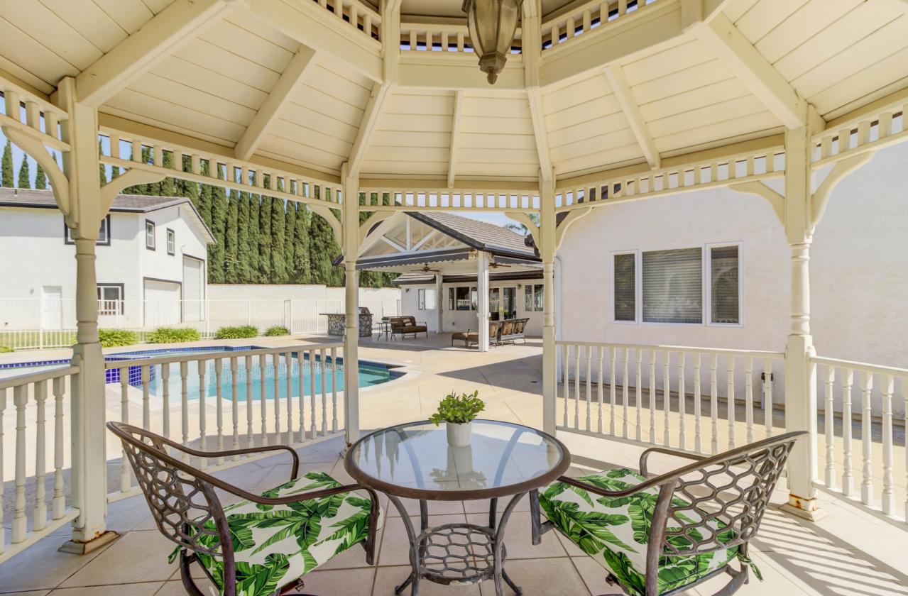 The Ultimate Car-guy, Multi-generational Equestrian Estate! Experience the "Land of Gracious Living" in this rare, single-story masterpiece, perfectly situated on a large flat lot at the end of a quiet cul-de-sac. Rebuilt in 2001, this estate blends modern efficiency with unparalleled versatility. Ideal for extended families or rental income, this property features a sprawling single-story residence (3334sf) PLUS a 2-bedroom apartment (approx.750sf) PLUS a studio apartment (approx. 250 sf). Both ADUs are detached from the main house and have separate entrances. It is a vehicle collectors dream! There’s an attached 3 car garage, PLUS a detached pull through RV/car barn/workshop, AND a separate boat barn with an additional storage room. The gated side driveway offers a covered carport and plenty of parking for all your toys and trailers. Located in the heart of Yorba Linda’s horse country, this horse property has 2 stalls. It is a short ride to the public equestrian center and just three houses from the Yorba Linda Lakebed wilderness area. You will love immediate access to over 90 acres of riding and walking trails right from your doorstep. Designed for both comfort and functionality, the main home offers a spacious primary suite complete with the unique set up of his-and-hers primary bathrooms. The single-story layout ensures easy living with seamless flow between indoor and outdoor spaces. Step outside to savor your private backyard oasis featuring a sparkling swimming pool and spa with waterfall features, a gazebo and built-in BBQ perfect for relaxing or entertaining. There are several fruit trees to appreciate, including a large avocado tree. Also, enjoy the energy efficiency of fully owned solar panels. This property is more than just a home—it is a private compound designed for a lifestyle of freedom. Whether you are trail riding through the nearby lakebed or hosting a summer gathering by the pool, this is a unique opportunity to own a piece of Yorba Linda’s finest real estate.