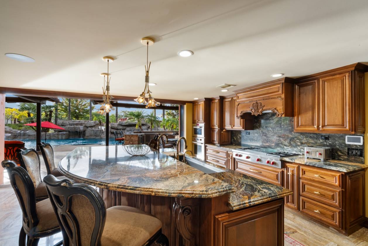 - Step into a light-filled masterpiece where every detail is perfected.The main residence is defined by seamless indoor-outdoor living, highlighted by panoramic sliding glass doors that disappear to showcase sweeping views of the property. The chef's kitchen has custom cabinetry, statement lighting, a Galley sink and a full suite of premium Wolf and Sub-Zero appliances. The amenities extend beyond the kitchen including a custom, climate-controlled 1,700 bottle wine cellar, perfect for the serious collector.
