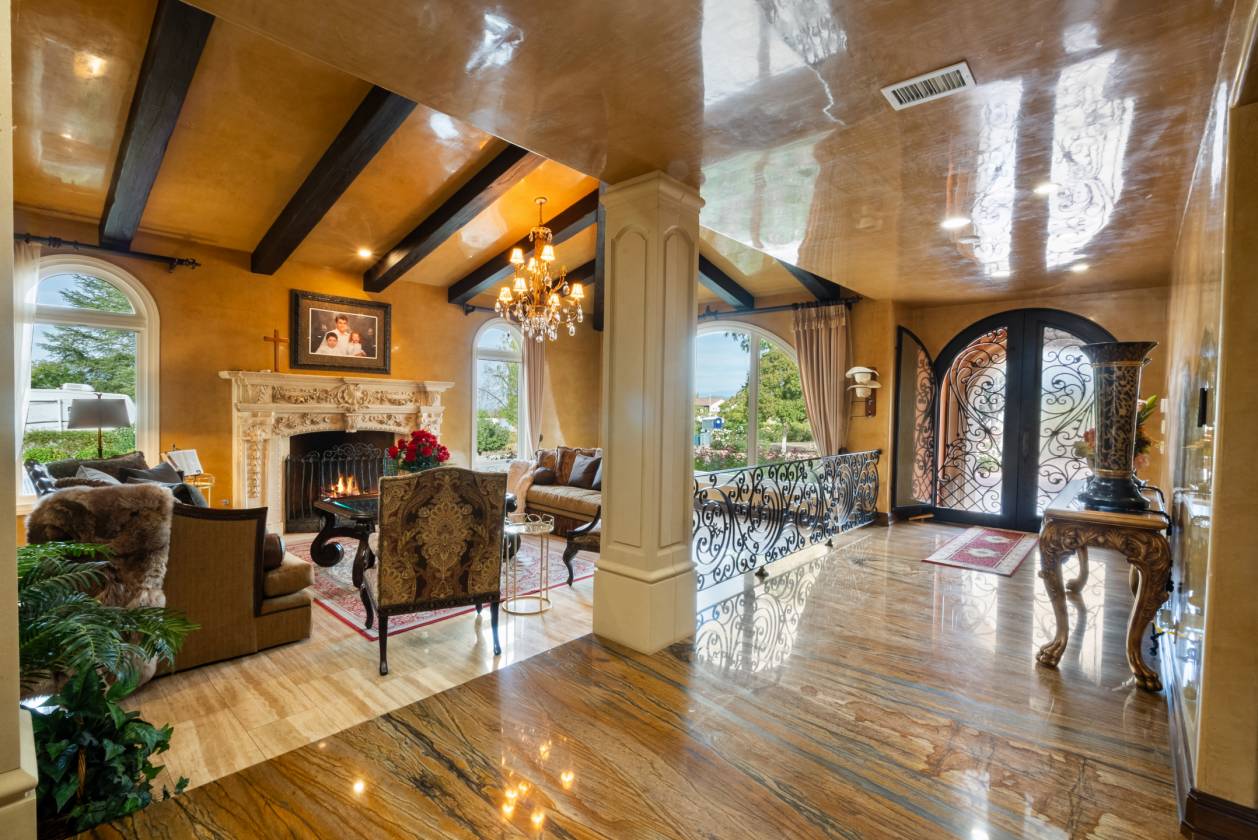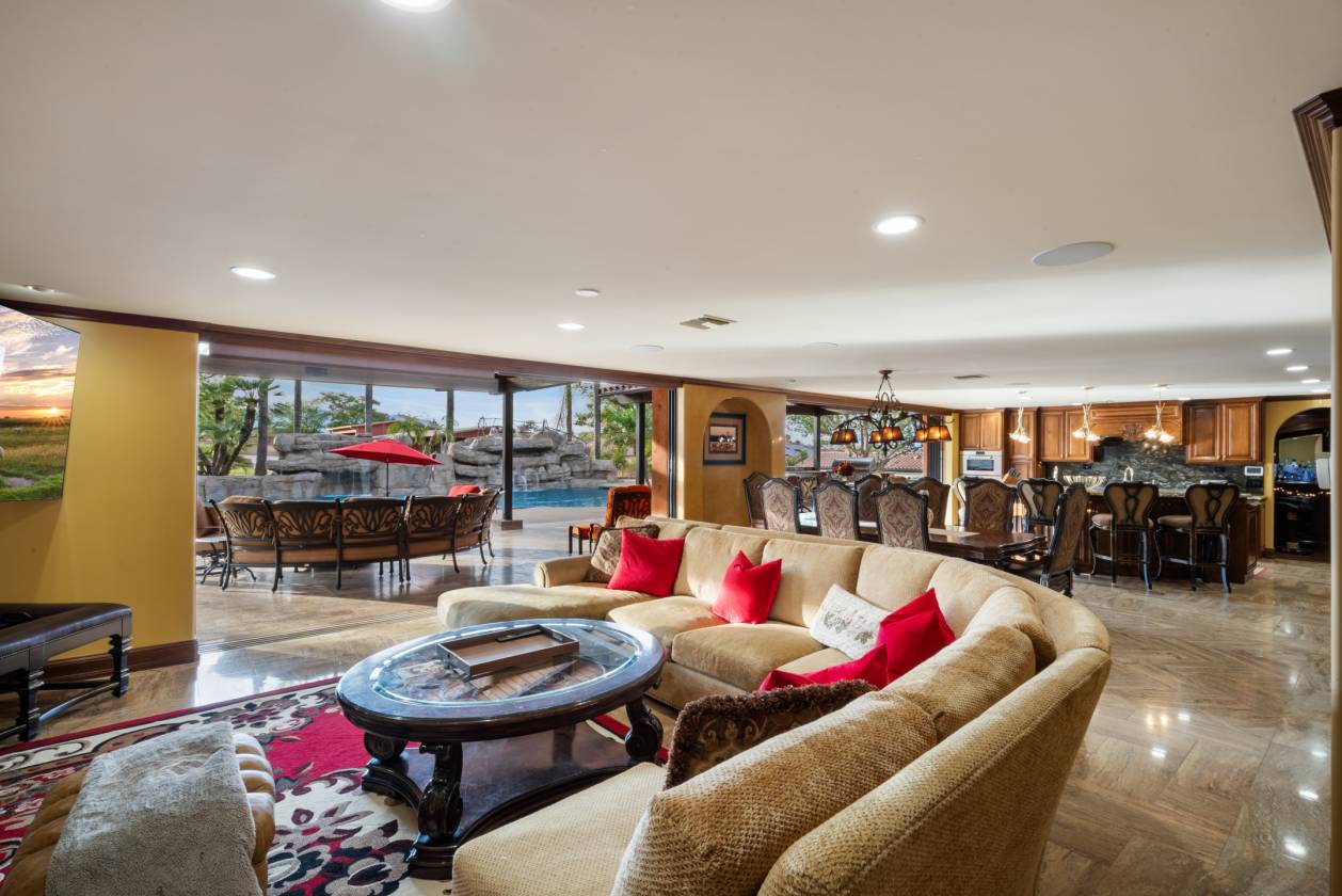 • The backyard is a private waterpark and entertainment delight. At its heart lies the stunning 90,000 gallon salt water pool, complete with a winding lazy river surrounded by luminous glow stones for magical evening swims. The extensive outdoor kitchen is ready to host grand events, complimented by a professionally installed sound system throughout the entire property and thoughtfully placed outlets throughout the landscape for lighting and events. The fully landscaped grounds feature a diverse collection of mature fruit trees creating a truly idyllic setting. The property includes a detached Guest House/ADU complete with its own living quarters, privacy, and dedicated two-car garage. All with the same sophisticated comfort as the main house, making it perfect for multi-generational living.