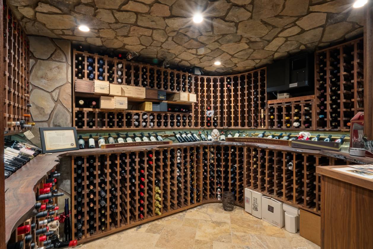• Step into a light-filled masterpiece where every detail is perfected.The main residence is defined by seamless indoor-outdoor living, highlighted by panoramic sliding glass doors that disappear to showcase sweeping views of the property. The chef's kitchen has custom cabinetry, statement lighting, a Galley sink and a full suite of premium Wolf and Sub-Zero appliances. The amenities extend beyond the kitchen including a custom, climate-controlled 1,700 bottle wine cellar, perfect for the serious collector.