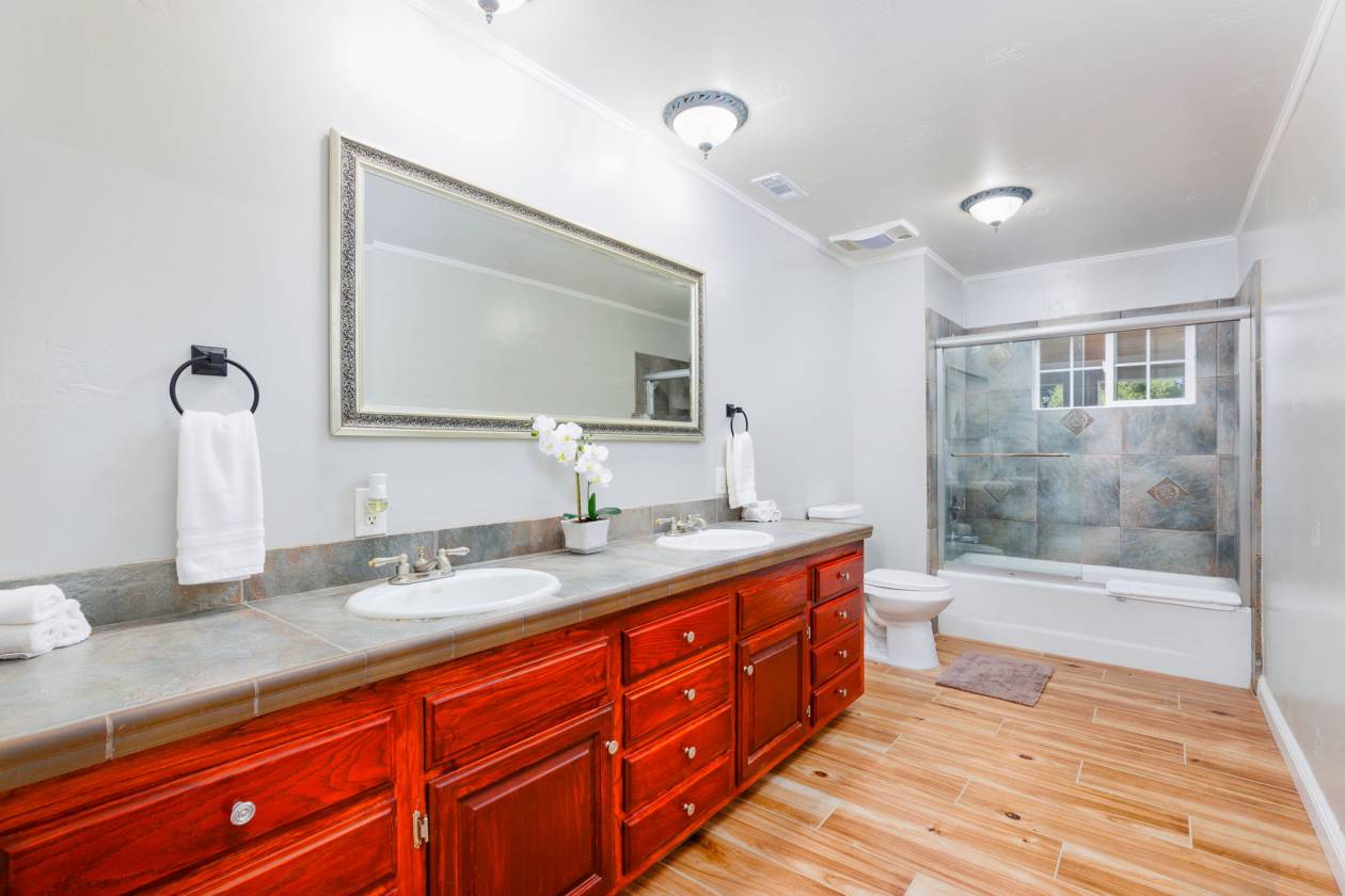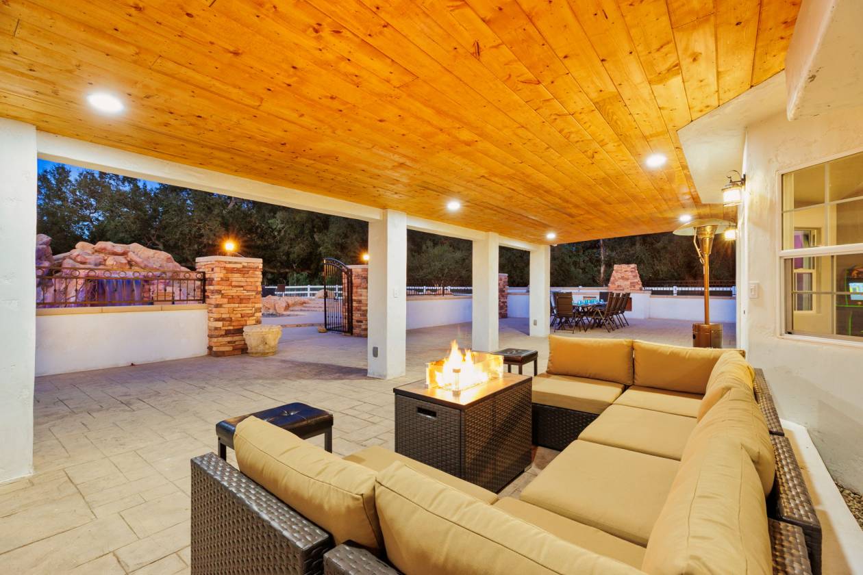 PRICE REDUCED: $̶2̶,̶7̶5̶0̶,̶0̶0̶0̶ → $2,190,000. MOTIVATED SELLER! IMAGINE WHAT IT WOULD BE LIKE TO OWN THIS MAGICAL ESTATE RETREAT WITH Airbnb, SHOWING AN APPROXIMATE INCOME OF OVER $150,000 PER YEAR, SURROUNDED BY OAK TREES LOCATED IN THE STUNNING COMMUNITY OF LA CRESTA, MURRIETA. The property lies on 5 acres (approx). This estate home is also an Airbnb and is completely fenced. A creek also runs alongside the property at the bottom of the hill, adding to the dynamic and beautiful landscape of La Cresta. There is also an additional parcel that can be purchased separately (not included in sales price), which also includes plans for a 5Br, 3Ba, 5,012 sqft. (PLANS O͟N͟L͟Y͟ INCLUDED, NO HOME!). Plans are being submitted to the building department. Both the home and vacant lot are approx. 5 acres each, for a total of 10 acres. This newly remodeled vacation home is a licensed Airbnb and has been in operation for over 1 year. Escape to this gorgeous Wine Country retreat for an unforgettable experience! The home has 5 bedrooms and 10 beds designed to accommodate up to 20 guests, making it the ideal place for large group getaways. The home has a game room with a pool table, arcade cabinets, and a large flat-screen TV. For a more relaxed atmosphere, enjoy the oversized sofa in the living area or play a game of poker with friends. The kitchen is fully equipped for any meal you can imagine. Dine outdoors on the patio or cozy up inside for a meal with family and friends. The patio has a BBQ area for those that like to grill while taking in the breathtaking scenery around the property. The master suite has a King-sized bed, built-in trundle beds, and a luxurious bathroom with a stand-up shower and jetted tub. You'll find two guest bedrooms with bunk beds, each featuring a loft area. The rear bedroom serves as a cozy lounge area with a pull-out bed. Property has cross fencing and corrals. Bring your horses, dirt bikes, ATVs, and other outdoor toys to enjoy the wide-open space, as well as equestrian trails for horseback riding and hiking. Discover your own private haven in the backyard, with a stunning rock pool and spa with a waterfall and waterslide for hours of fun or relaxation. The backyard has a volleyball court and horseshoe pit for fun & games. The backyard has 3 firepits for evening gatherings. For convenience, the property includes a garage with space for up to six vehicles, making parking easy for everyone. Entire home is solar-powered. This property offers the perfect balance of fun and tranquility, while also providing a yearly income. Situated in a highly upscale community offering many amenities, dining & entertainment! This is a one-of-a-kind opportunity! Schedule your showing today!