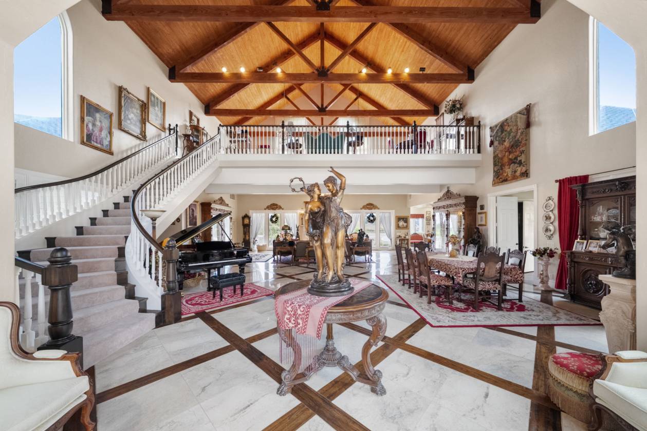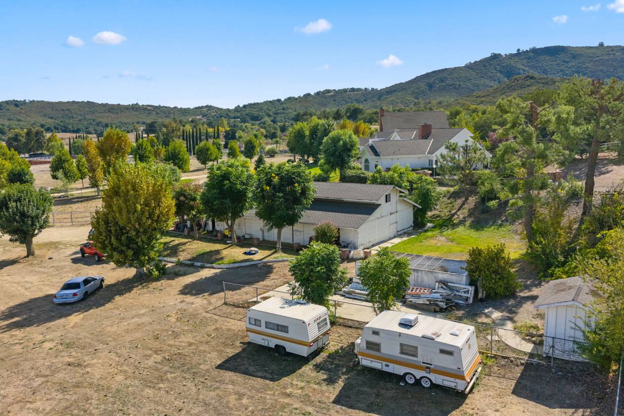 Dream Ranch Retreat with Endless Possibilities in Tenaja. Welcome to a place where craftsmanship, comfort, and wide-open space come together. Behind a private gated entry, this custom farm-style ranch in the heart of Tenaja blends rustic charm with refined design. Inside, you’ll find hand-scraped walnut floors with blue ocean marble inlays, 40-foot open-beam wood ceilings, and expansive windows that fill the home with natural light and capture views of the surrounding countryside. At the heart of the home, the chef’s kitchen is both beautiful and functional, featuring a Wolf range, Sub-Zero refrigerator, Gaggenau pizza oven, and an oversized island that makes gathering effortless. The great room centers around a stone fireplace and flows seamlessly into the main living spaces. With four bedrooms and four-and-a-half baths, the main residence offers comfortable luxury, including a primary suite with its own fireplace, dual vanities, and jetted soaking tub. A sweeping staircase leads to an expansive loft and game room with exposed beams and a cozy fireplace perfect for entertaining or unwinding. Outdoors, this 8-acre ranch property truly shines. A private well provides self-sufficiency, while the barn, round pen, and fenced pasture make it ideal for horses, animals, or hobby farming. The sparkling pool, built-in barbecue, and spacious brick-lined patio create an inviting space for gatherings or quiet evenings under the stars. Completing the property is a four-car garage with a 600-square-foot ADU above—complete with bedroom, bath, living area, and kitchenette offering flexibility for guests, extended family, or rental potential. Whether you dream of a working ranch, hobby farm, or peaceful homestead, this property offers the freedom, functionality, and beauty of true country living. A rare opportunity to own a Tenaja estate that embodies the best of the Santa Rosa Plateau lifestyle—where every sunrise brings new possibilities.