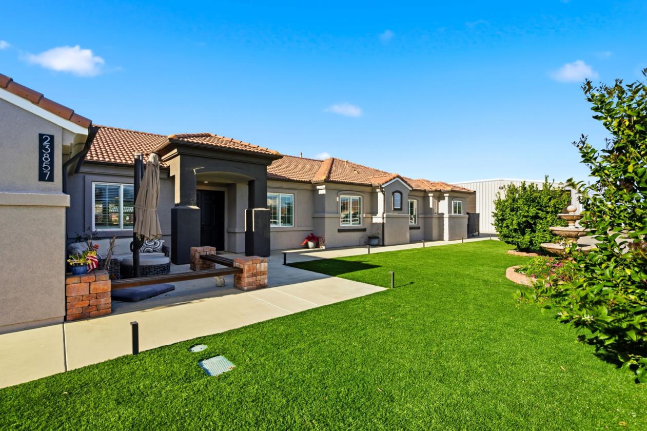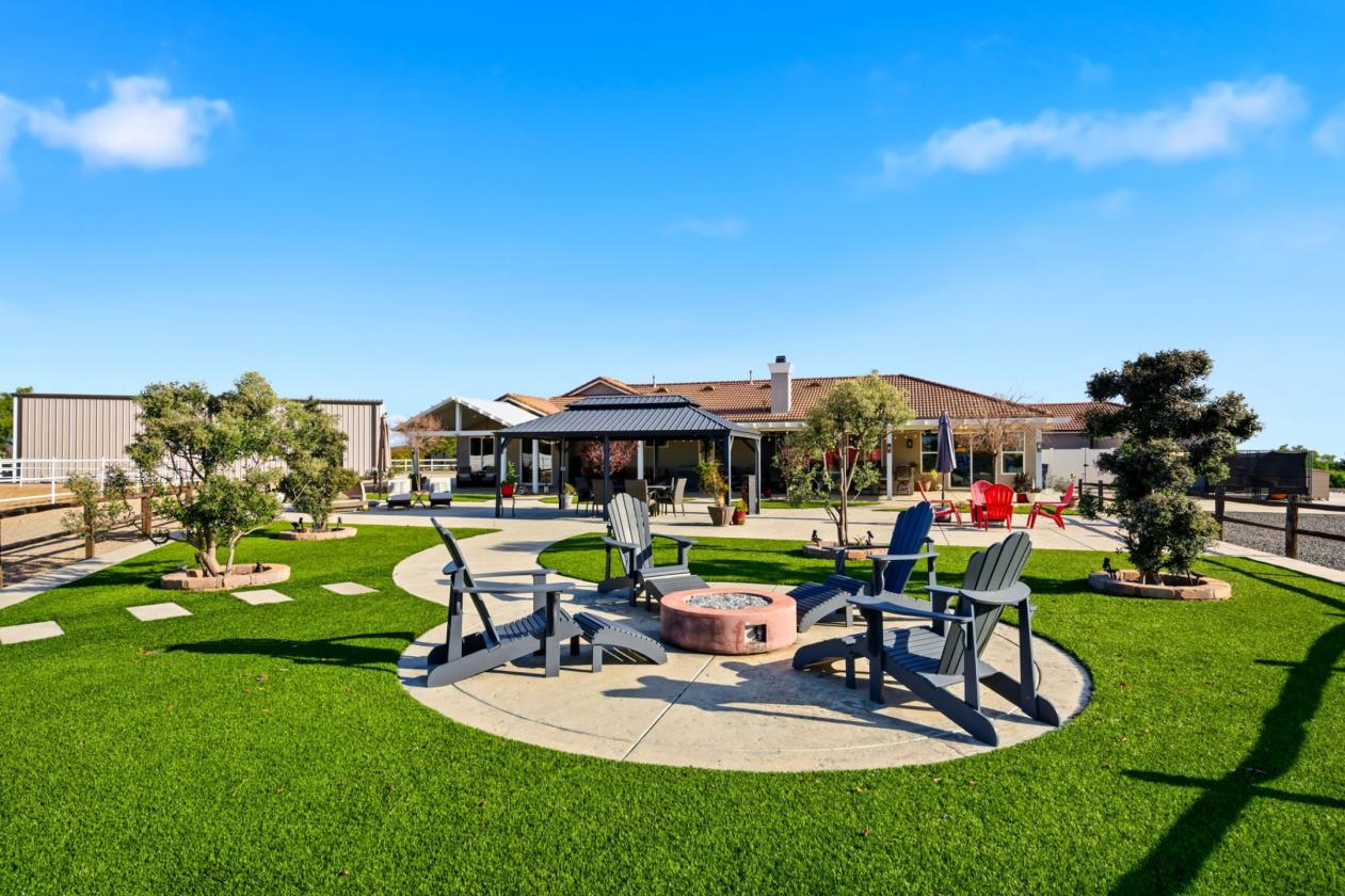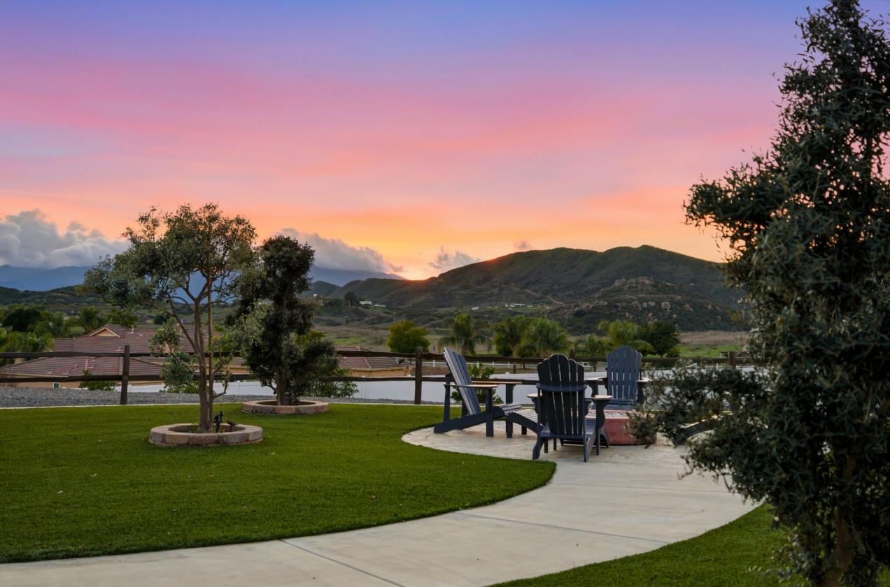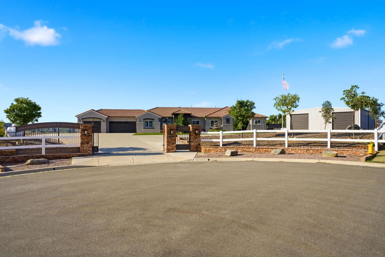 - End of a private cul-de-sac with automatic vehicle gate and pedestrian gate. Fruit trees, beautiful sunset views, multiple entertaining areas with a full-length alumawood patio cover, artificial turf, 2 year new spa, smart watering systems with landscape lighting and some unusable land for future expansion.