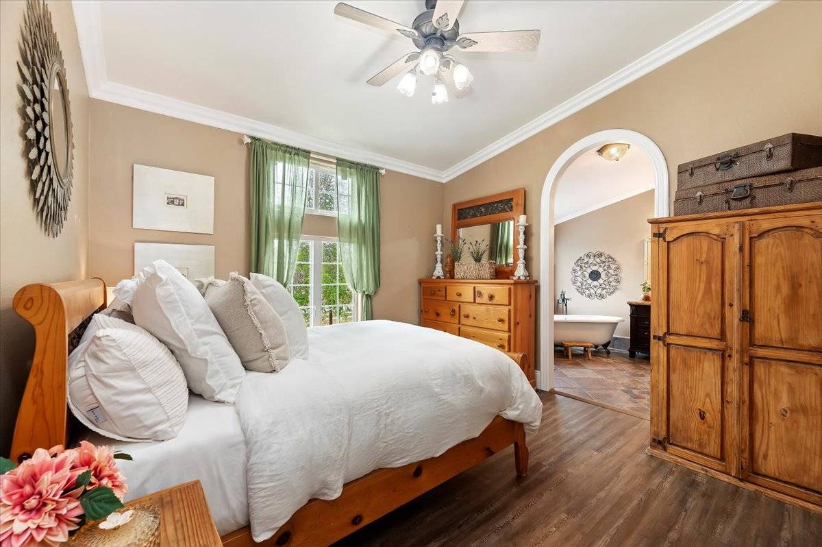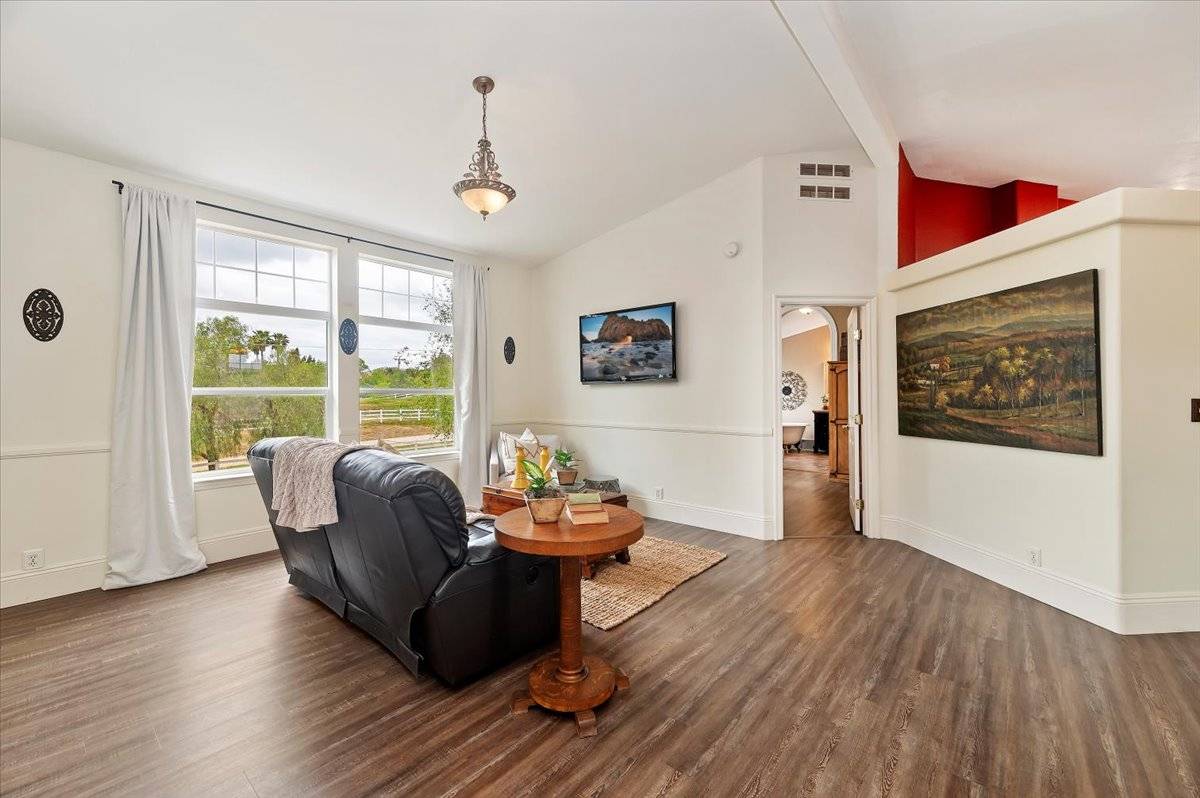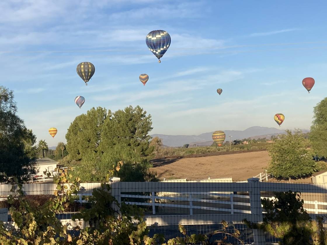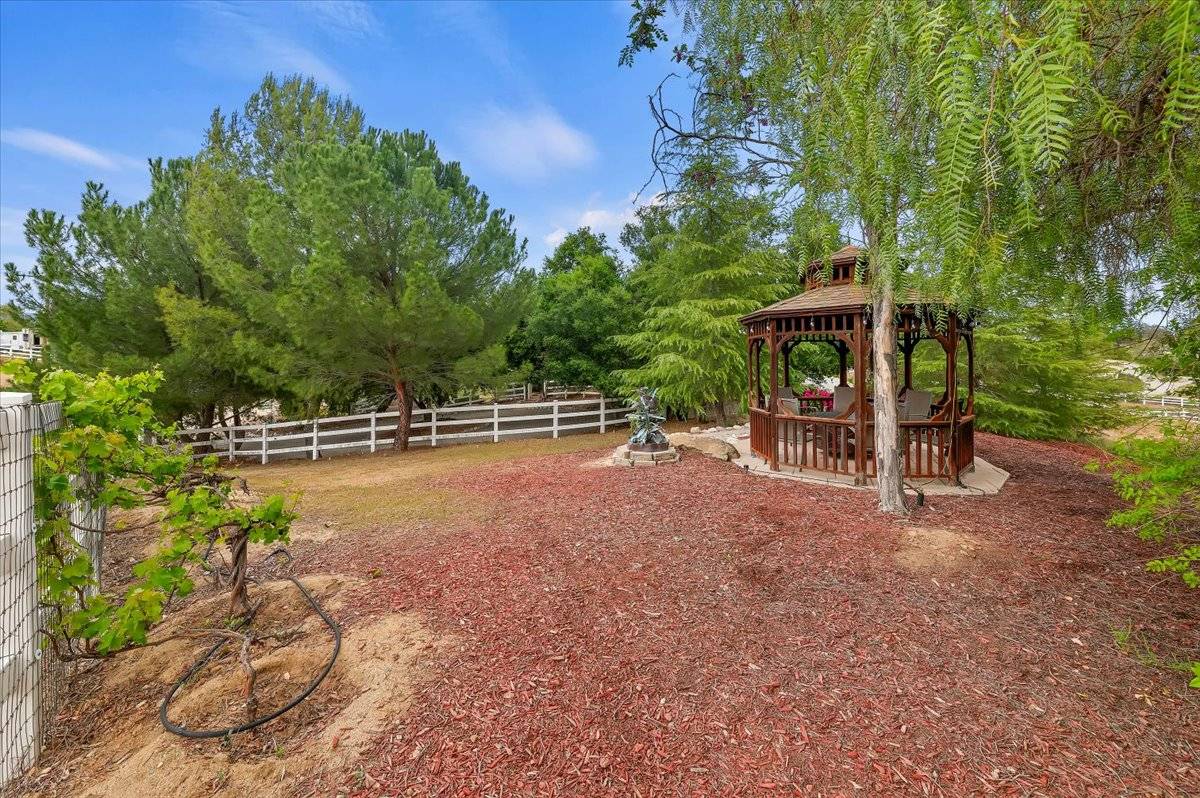 NEW PRICE!! You don't want to miss this property! It's truly a MAGICAL WONDERLAND in the HEART OF TEMECULA WINE COUNTRY with amazing views and park-like grounds close to wineries. 1.94 Acres zoned C/V (Citrus/Vineyard) and NO HOA. Flat, useable land in the front & rolling meadow in the back. Perfect for horses, fully fenced, room to add ADU, barn, outbuilding or plant a vineyard. HOT AIR BALLOONS are part of your daily views while hanging out in the gazebo or relaxing in the hot tub or swing on the covered wrap-around deck. MULTI-GEN manufactured home on permanent foundation has 2,416sf, 4 Bedrooms + Office, 3 Baths, with Studio En-Suite & Kitchenette, walk-in closet + private entrance, perfect for guests, extended family or RENTAL INCOME + 3-car detached Garage. There are also 4 drive-through gates, 3 access gates, plus a separate area for your RV with hookups, 2 fire hydrants, 2 septic tanks, above ground private spa and much more. Only love and thoughtfulness has gone into creating this tranquil oasis with flagstone pathways, landscaping, oak tree canopy over the circular drive and did we say views? YOU WILL LOVE THIS PLACE!!!