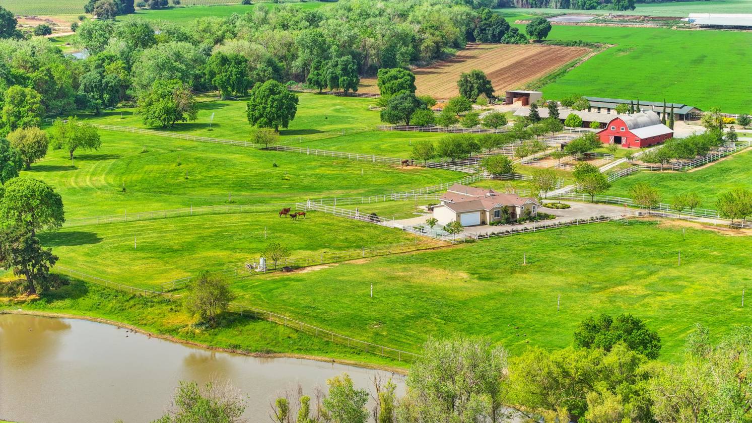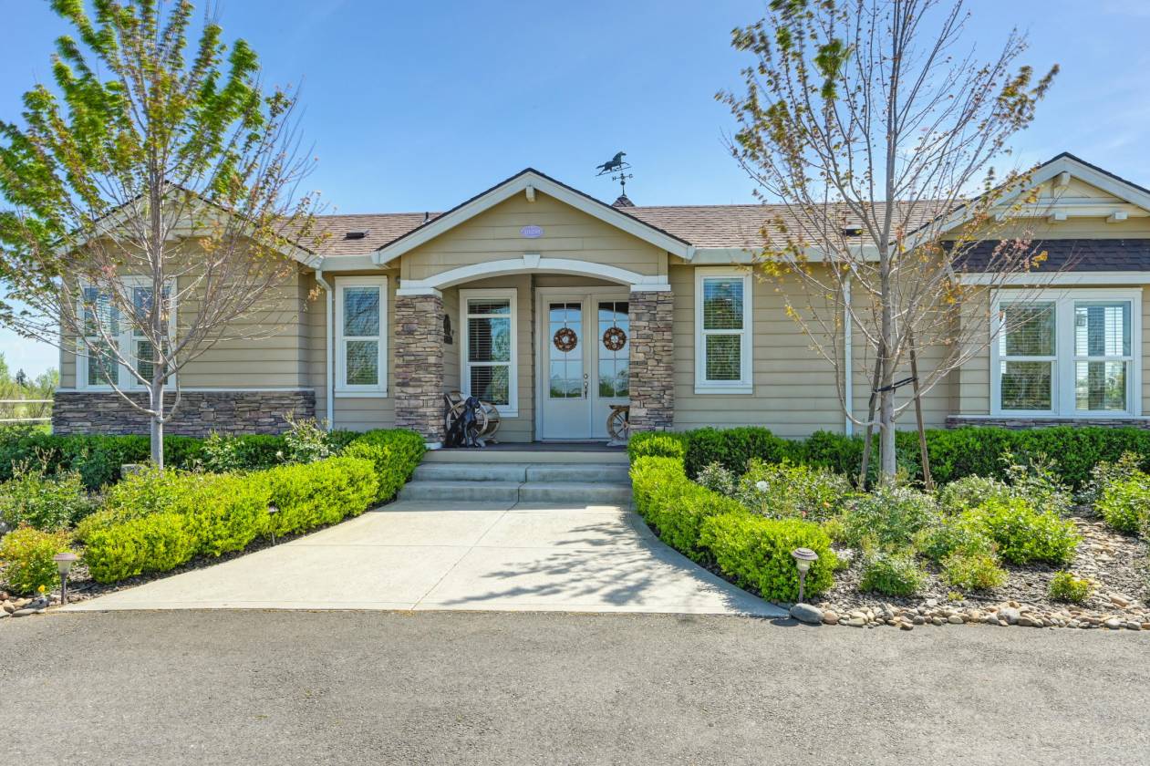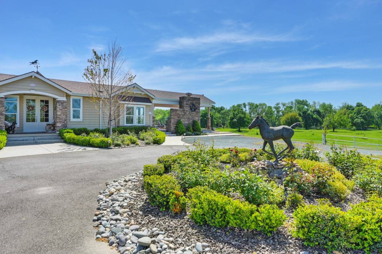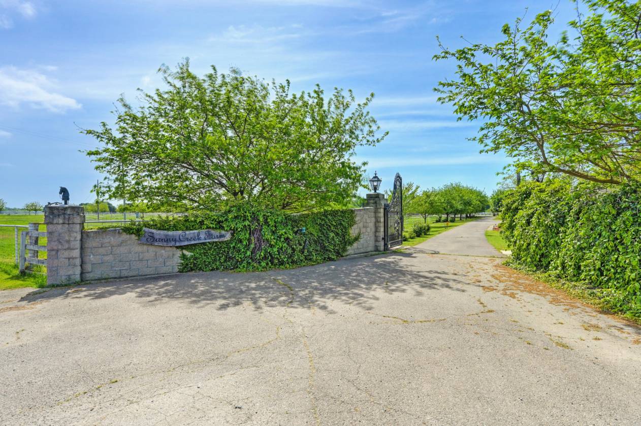Welcome to Sunny Creek Farm, an equestrian dream property 30 miles south of Sacramento. This beautifully designed and maintained facility is 35+ acres of gently rolling terrain dotted with trees and bordered by a creek. Set back from the road behind electric gates, you will find 7 large pipe fenced and irrigated pastures, 3 barns with a total of 40 stalls, Equisizer, Hotwalker, 22 turn-out paddocks plus hay and equipment storage areas. Four wells supply water for the homes and to irrigate the pastures. This country estate consists of two separate parcels of land, with two homes. The original, comfortable ranch home houses full time farm help and has 1848 sq ft, 3 bedrooms, 2 baths, and a fireplace. The second customized Manufactured home is 1904 sq ft with 3 bedrooms and 3 baths, high ceilings throughout, tile floors, open living room and kitchen area that leads to an outdoor deck and covered family room with a stone fireplace, plus separate firepit, heat lamps, a built-in BBQ and spectacular pastoral views. Relaxing after a day with your horses in this handsome home with gentle breezes and stunning sunsets is country living at its best! Co-Listed with Sharon Vallejo, Compass Broker Associate, DRE #00826851