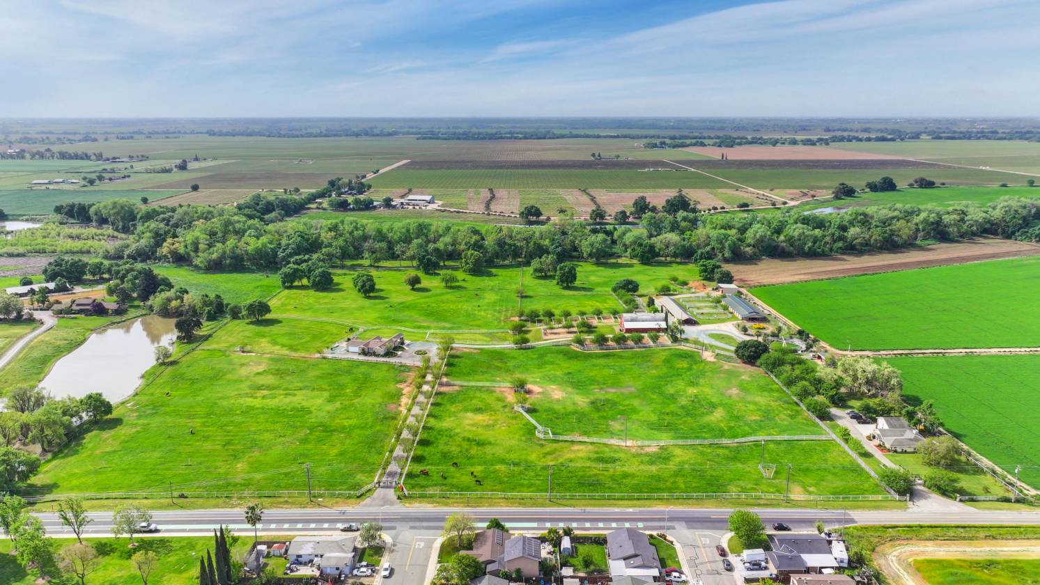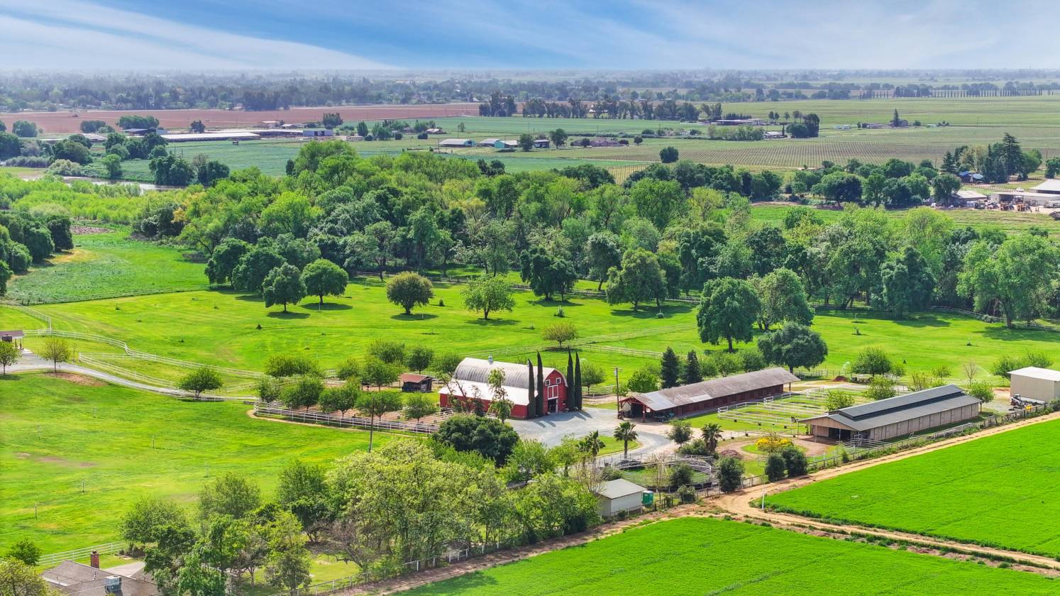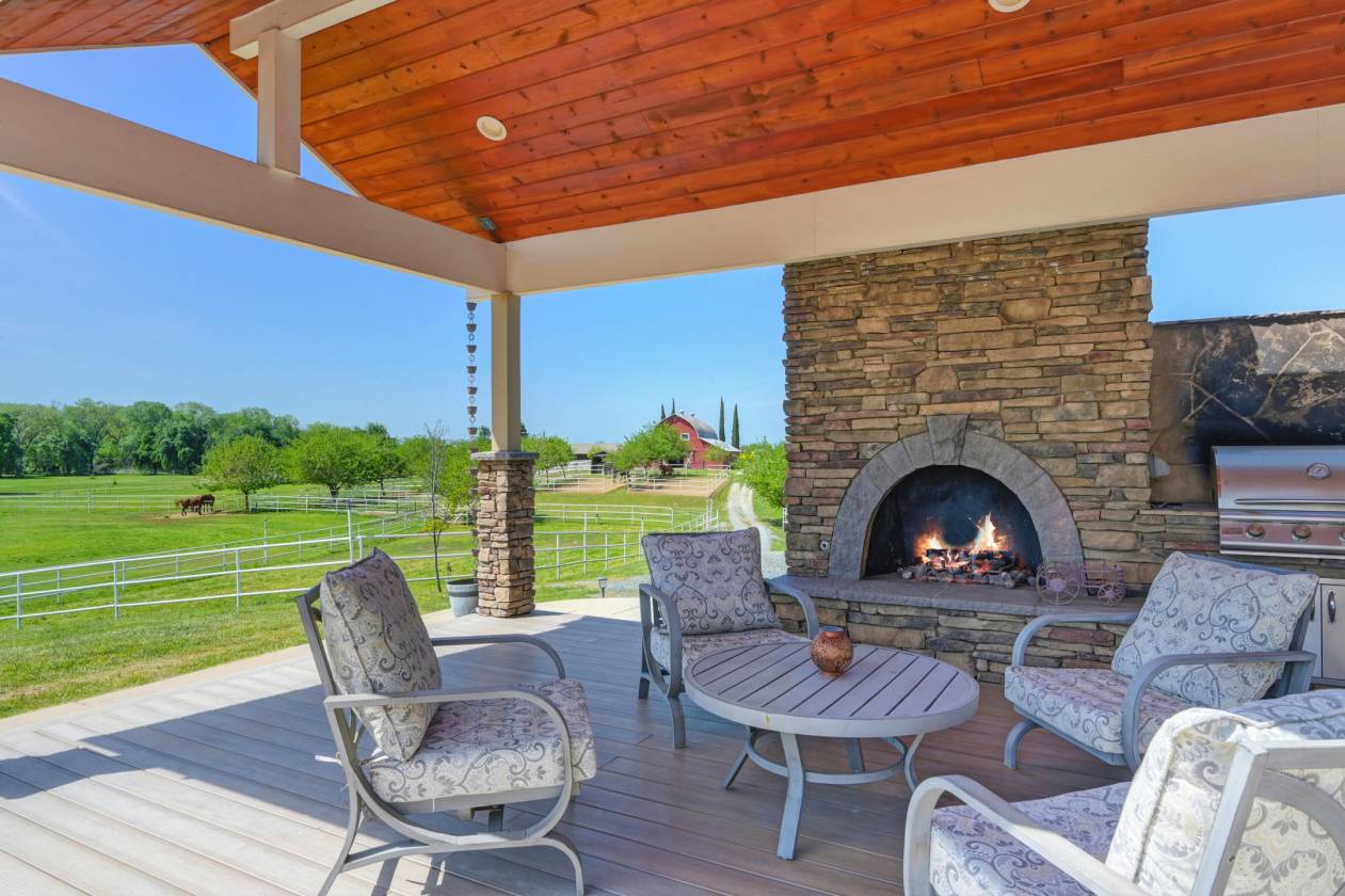 Welcome to Sunny Creek Farm, an equestrian dream property 30 miles south of Sacramento. This beautifully designed and maintained facility is 35+ acres of gently rolling terrain dotted with trees and bordered by a creek. Set back from the road behind electric gates, you will find 7 large pipe fenced and irrigated pastures, 3 barns with a total of 40 stalls, Equisizer, Hotwalker, 22 turn-out paddocks plus hay and equipment storage areas. Four wells supply water for the homes and to irrigate the pastures. This country estate consists of two separate parcels of land, with two homes. The original, comfortable ranch home houses full time farm help and has 1848 sq ft, 3 bedrooms, 2 baths, and a fireplace. The second customized Manufactured home is 1904 sq ft with 3 bedrooms and 3 baths, high ceilings throughout, tile floors, open living room and kitchen area that leads to an outdoor deck and covered family room with a stone fireplace, plus separate firepit, heat lamps, a built-in BBQ and spectacular pastoral views. Relaxing after a day with your horses in this handsome home with gentle breezes and stunning sunsets is country living at its best! Co-Listed with Sharon Vallejo, Compass Broker Associate, DRE #00826851