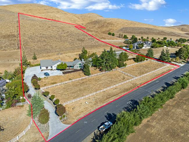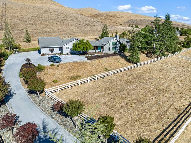 Live the Dream in Tres Pinos! Nestled into the exclusive gated Stonegate community, this gorgeous 9+ acre property blends resort-style living with wide-open Country FREEDOM! Whether you're an equestrian enthusiast, hobby farmer, 4-H/FFA family or just craving space to breathe, this property DELIVERS! The 2,560 sf barn includes 4 stalls/separate gated entrance/trailer parking. Inside the beautifully updated 3bed/2.5bath 3,000 sf single story home, enjoy a blend of granite & quartz countertops, hardwood, tile, plush carpeting & fresh interior/exterior paint for a crisp, modern feel. The expansive primary suite opens directly to a private deck & pool/hot tub, perfect for evening stargazing & soaking. The spa-like bathroom features an oversized tub, walk-in shower & a closet prepped for a sauna conversion. Designed for comfort & efficiency, enjoy pellet stoves in both the living room & family rooms, an EV charger in the garage, water softener & a 3000 gallon water tank for landscape support. With direct pool access from three parts of the home, a spacious deck for entertaining, tons of parking & panoramic views of rolling hills, this is the perfect blend of luxury & land. Located just minutes from Hollister & a short drive for Bay Area commuters w/golf/dining/shopping/schools nearby.