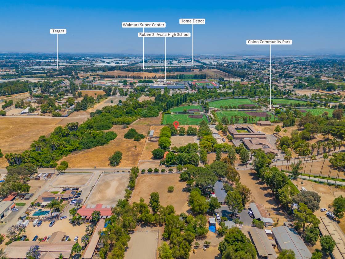 This is a once-in-a-lifetime chance to own 4.74 flat, fully usable acres in the heart of Chino Hills. The single-story home offers classic East Coast charm, with beautifully renovated barns, riding arenas, and 3 pastures that feel like a Virginia countryside retreat. The owner upgraded the horse jumping arena. Surrounded by luxury estates, ranches, and the gated Payne Ranch community, this property is just half a mile from The Shoppes at Chino Hills, top-rated schools, and city amenities. There's huge potential here—expand the current home, build your dream estate, grow a vineyard or organic farm, or even create a wedding or other non-profit projects. Legal to add a guest house, too! Whether you're an equestrian, car collector, or investor, this is a truly special opportunity.