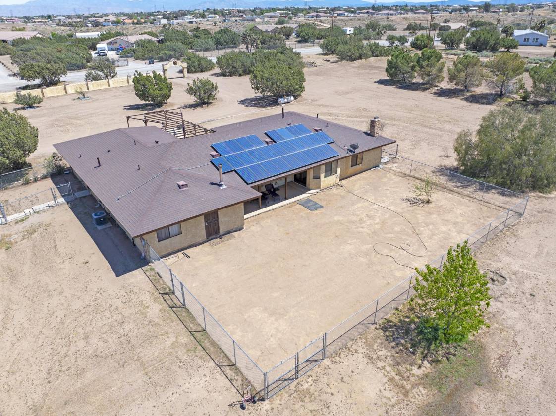 Don't miss this great opportunity to own a beautiful 9.80 acre horse ranch and enjoy the Serene Lifestyle of the High Desert in the city of Oak Hills. This ranch has a 3157 sq. ft. 3 BR, 3 BA custom built home and includes five horse stables, a hay barn, a horse arena and a tack room for storing saddles, bridles and much more. The house features a very spacious main bedroom and the main bathroom has a sunken tub, dual sink vanity, separate shower and a bonus room next to the bedroom with a Jacuzzi spa and a free standing wood burning fireplace. The two spacious guest bedrooms have mirrored closet doors and extra storage underneath the windows. There are plenty of storage closets and cabinets throughout the house. There is a ceiling fan in almost every room of the house. The kitchen has new stainless steel appliances including a 5 burner stove with convection, regular and air fryer oven, as well as a refrigerator, dishwasher, microwave and trash compactor. The house has Japanese Red Oak kitchen cabinets, including all the cabinets and window sills throughout the house. It also features a huge Game room with a 17 ft. long wet bar and pool table. The family room has a stone decorated masonry fireplace with a solid wood mantle and a blower. There is a direct propane connection in the back patio for your barbecue grill and several electric outlets. The house also has a 2 inch water line with an anti-siphon valve. It has an oversize 3 car garage with plenty of room for a workshop, new septic tank with 2 cleanouts, (1 in front & 1 in back of house), 28 solar panels, underground electricity, 2 A/C units, 2 water heaters, 12 year old roof on house and horse stables, 6 month old roof on garage, new paint inside house and outside wood trim, dual pane metal windows and much more. This house is perfect for Holiday entertaining and family gatherings. It is close to shopping and approximately 4 miles to the I-15 freeway. The property has been surveyed. There are too many amenities to mention so this is a "Must See".