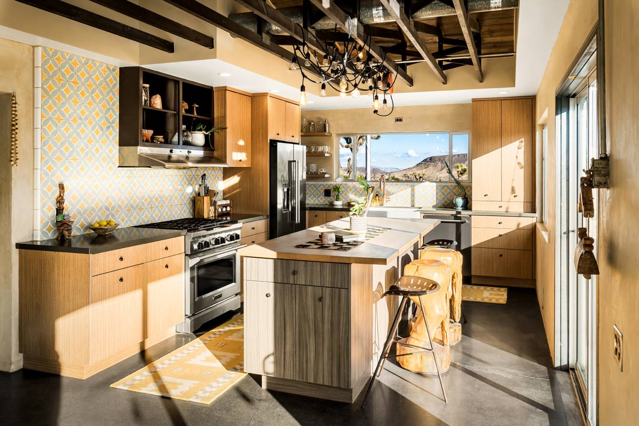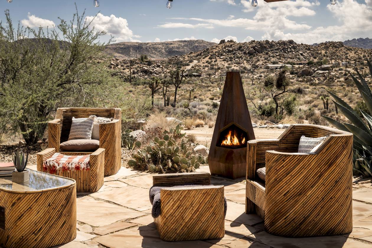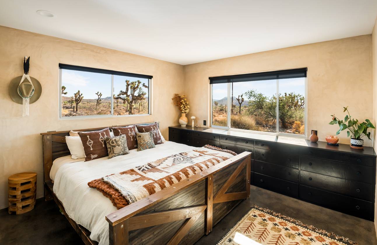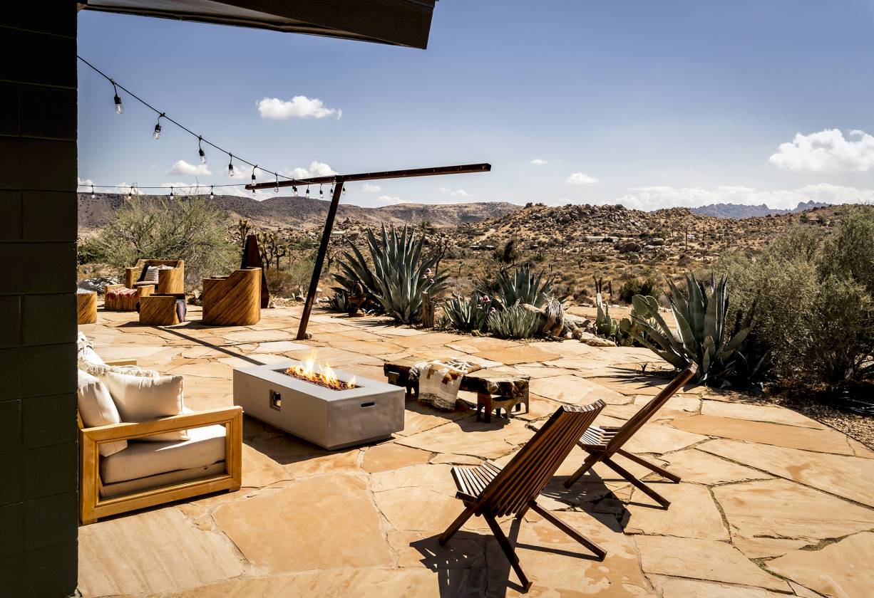 40-acre ranch surrounded by ancient boulders, lava buttes, and panoramic mountain vistas Subdivision in progress – includes 20-acre main compound + 6-acre and two 7-acre parcels (easements & utilities nearby) Main residence: 1,527 sqft, 2 bed / 1 bath + bonus office off 2.5-car garage 1932 Homestead Cabin: 313 sqft, 1 bed / 1 bath, full kitchen, soaking tub & dipping pool Chef’s kitchen with butcher block island, KitchenAid appliances & hand-troweled Venetian plaster walls Remodeled bath featuring Italian & Moroccan tile, floating vanities, and spa-like finishes Wood-burning fireplace with NuTone blowers + paid solar system (on-grid) Outdoor amenities: Cowboy hot tub, airplane-engine pool, horse corral, chicken coop, playhouse, bike track & garden room Scenic privacy: Every area of the home captures dramatic desert and mountain views Investment upside: Perfect as a working ranch, private estate, or long-term investment property