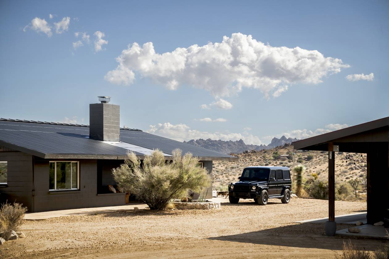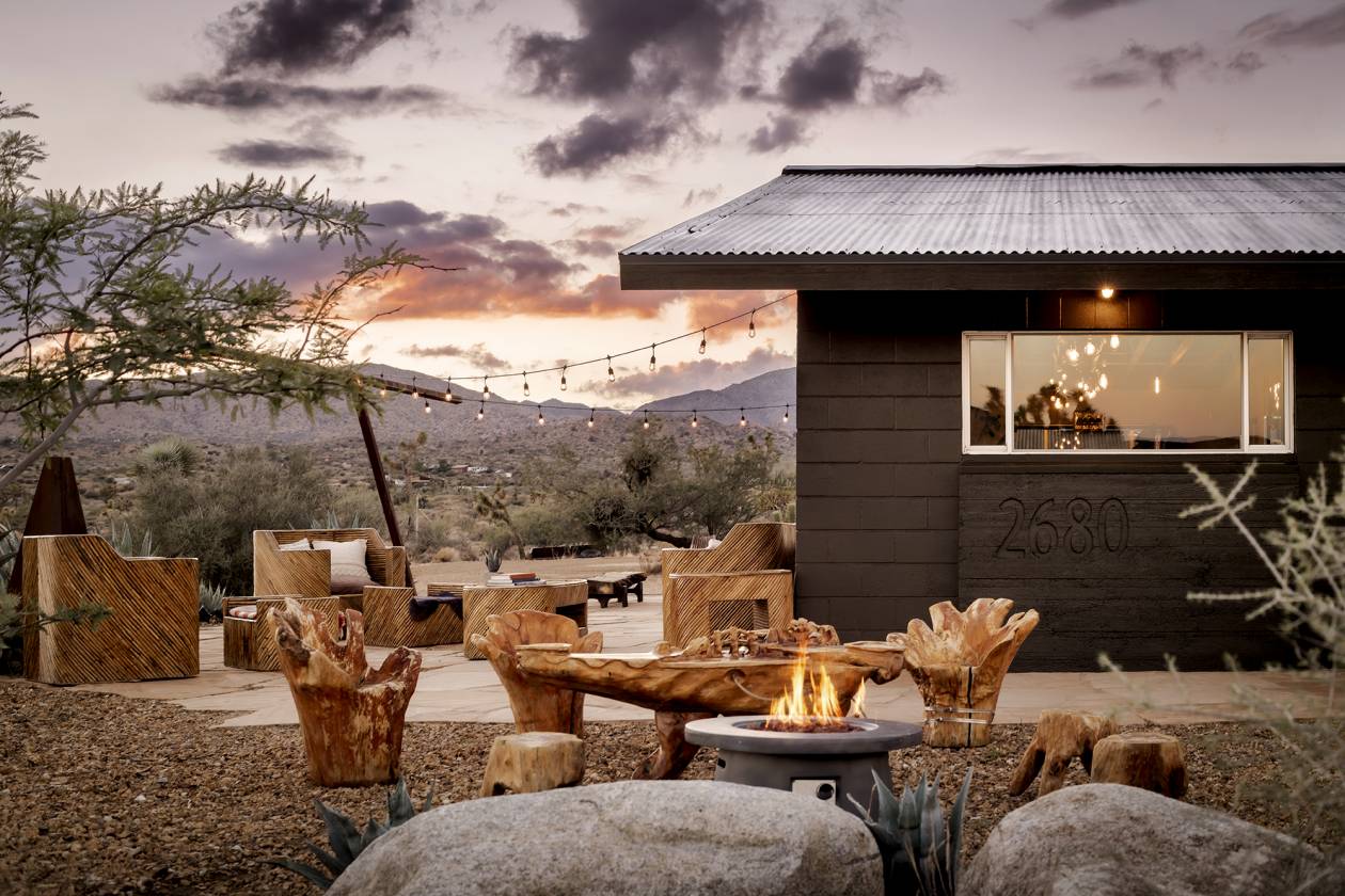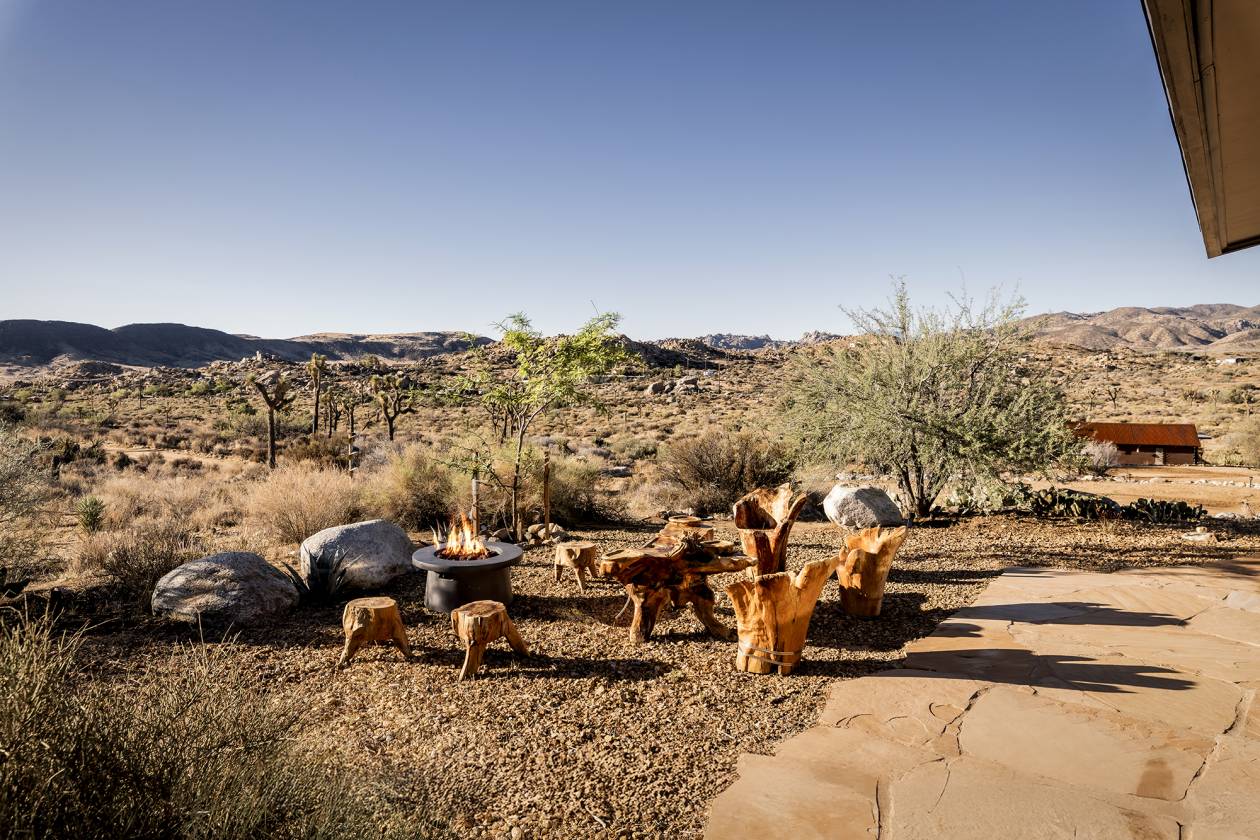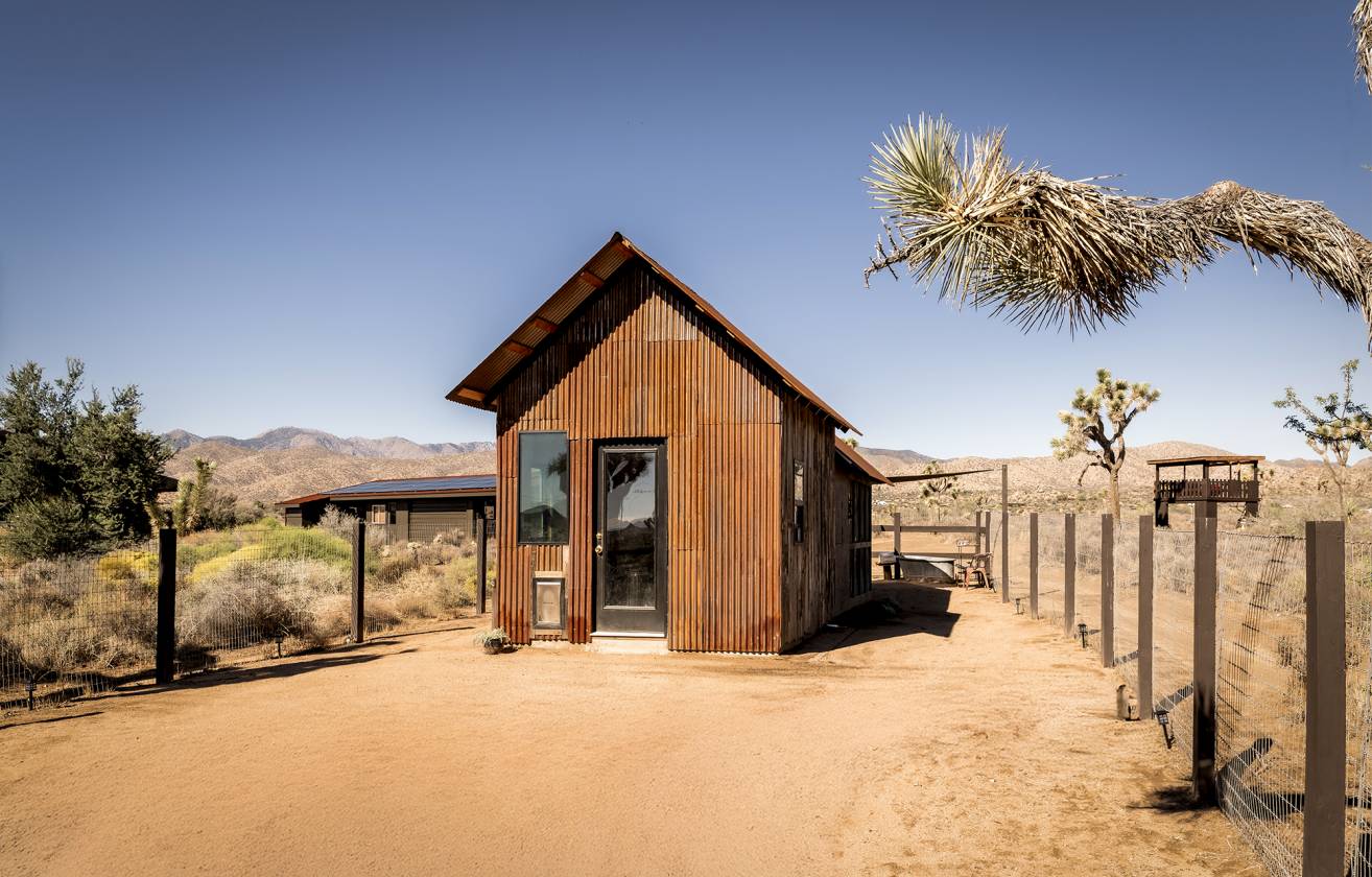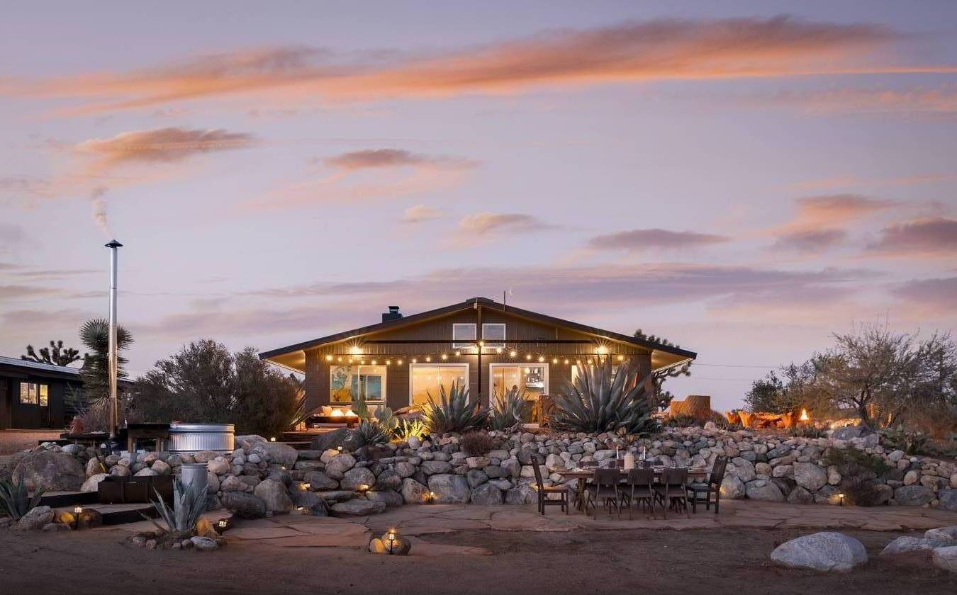 - Surrounded by ancient boulders, lava buttes, and panoramic vistas of Pioneertown’s dramatic ridgelines, this 40-acre ranch offers a rare combination of natural beauty, privacy, and convenience, just minutes from Pappy & Harriet’s, Joshua Tree National Park, and the heartbeat of Pioneertown. Every area of the home captures a different, breathtaking view of the surrounding desert and mountains, making the property as inspiring indoors as it is outdoors. Already one year into the subdivision process, the 40-acre parcel is being divided into multiple opportunities: 20 acres encompassing the main house, detached garage with office,original 1932 homestead cabin, and stables, plus one 6-acre parcel and two 7-acre parcels. Easements are in place, and nearby electric poles provide future utility access, making this not only a lifestyle compound but also an investment with substantial upside. The main residence spans 1,527 sqft with 2 bedrooms, 1bathroom, and a bonus office space located off the 2.5 car garage. Venetian plaster walls, a newly remodeled bath with Italian and Moroccan finishes, and a chef’s kitchen with butcher block island and KitchenAid appliances blend rustic authenticity with modern comfort. A wood-burning fireplace with NuTone blowers and Solar power (while still on-grid) that’s paid for. The original 1932 homestead cabin (313 sqft) serves as a charming 1-bedroom, 1-bath retreat with full kitchen, soaking tub, and dipping pool. Offering flexible options for guests, creative use, or additional income. Outdoor amenities include a cowboy hot tub beneath desert skies, an airplane engine pool, a horse corral, chicken coop with egg-laying hens, a playhouse, bike track, and garden room. This property is as much a retreat as it is an opportunity, a working ranch and a long-term investment poised for its next chapter.