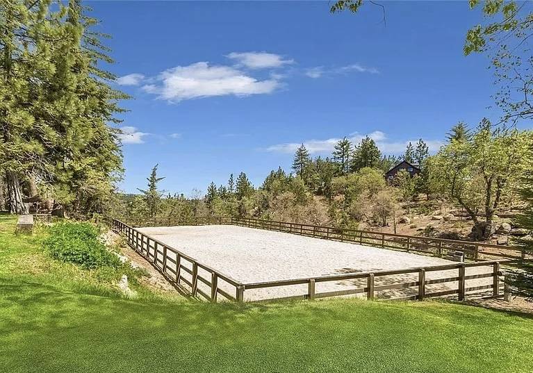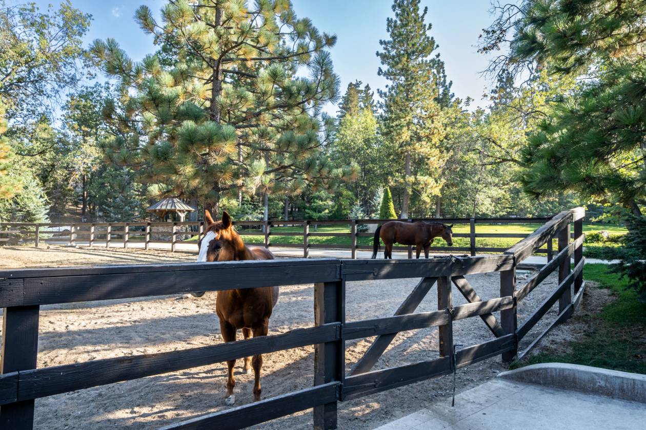 Welcome to your exclusive mountain retreat--an extraordinary equestrian estate that redefines luxury living. Set on an expansive 4.5 acres, this one-of-a-kind property offers an unparalleled blend of breathtaking natural beauty and elite equestrian amenities. Perfectly designed for those who value privacy, sophistication, and the equestrian lifestyle, this estate provides approximately 3 acres of lush, usable grass, rolling forested land, serene trails, and freshwater streams that flow throughout, creating an idyllic environment for both riders and nature lovers alike. The estate is comprised of three meticulously designed structures, each offering ample space for both living and entertaining, with a thoughtful layout that provides the perfect balance of openness and privacy. The main residence is a masterpiece of craftsmanship, featuring custom wood finishes, hand-crafted details, intimate lighting, and multiple fireplaces, one is wood-burning, that infuse the home with warmth and character. Paired with high-end modern conveniences, such as a state-of-the-art chef's kitchen, copper fixtures, and advanced thermostatic systems, this home effortlessly combines rustic charm with refined luxury. The expansive floor plan includes 6 spacious bedrooms, a private study, a loft, including a suite with a separate entrance, offering flexibility for a home office, gym, or guest suite. For sophisticated entertaining, host in the elegant guest house with 3 luxurious suites or enjoy your own private entertainment space, complete with a music stage, game room, pool table, rustic bar, and an inviting patio with a wood burning fireplace. Equestrian enthusiasts will find no equal in the property's barn and stable, designed with the utmost attention to detail. Offering a one bedroom live-in caretaker's quarters with a kitchenette, full bathroom & laundry room. Also, an office, gym, sauna, and tack room, this facility is fully equipped with 4 stalls for your horses. Beyond the barn, indulge in the serenity of the riding arena or take advantage of the miles of trails that lead you and your horses off into the majestic sunset. This estate has been thoughtfully curated with every luxury in mind. Additional amenities include two private wells, 8 gas fireplaces, 2 natural wood-burning fireplace, a koi pond with a waterfall, a hot tub, an exterior heating system, and the only property in Running Springs with usable flat acreage of real grass. Located just half a mile off the 18, this property offers great privacy and tranquility. It's perfectly situated between Lake Arrowhead and Big Bear, providing easy access to both stunning destinations. Plus, Snow Valley Ski Resort is only 4 miles away, making it an ideal spot for winter enthusiasts! No detail has been spared in making this property an unrivaled equestrian paradise. Experience the ultimate in luxury, privacy, and high-end living--this estate truly stands in a class of its own.