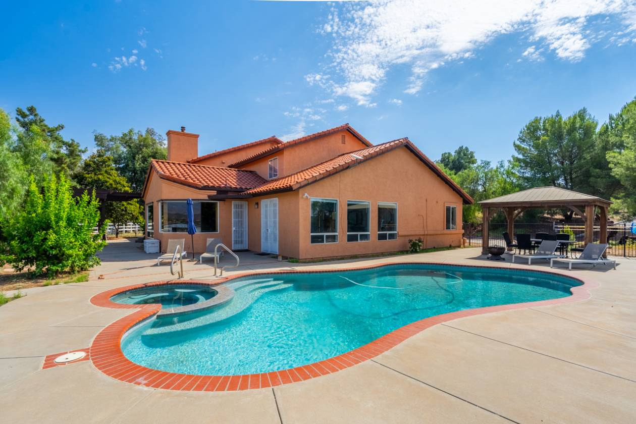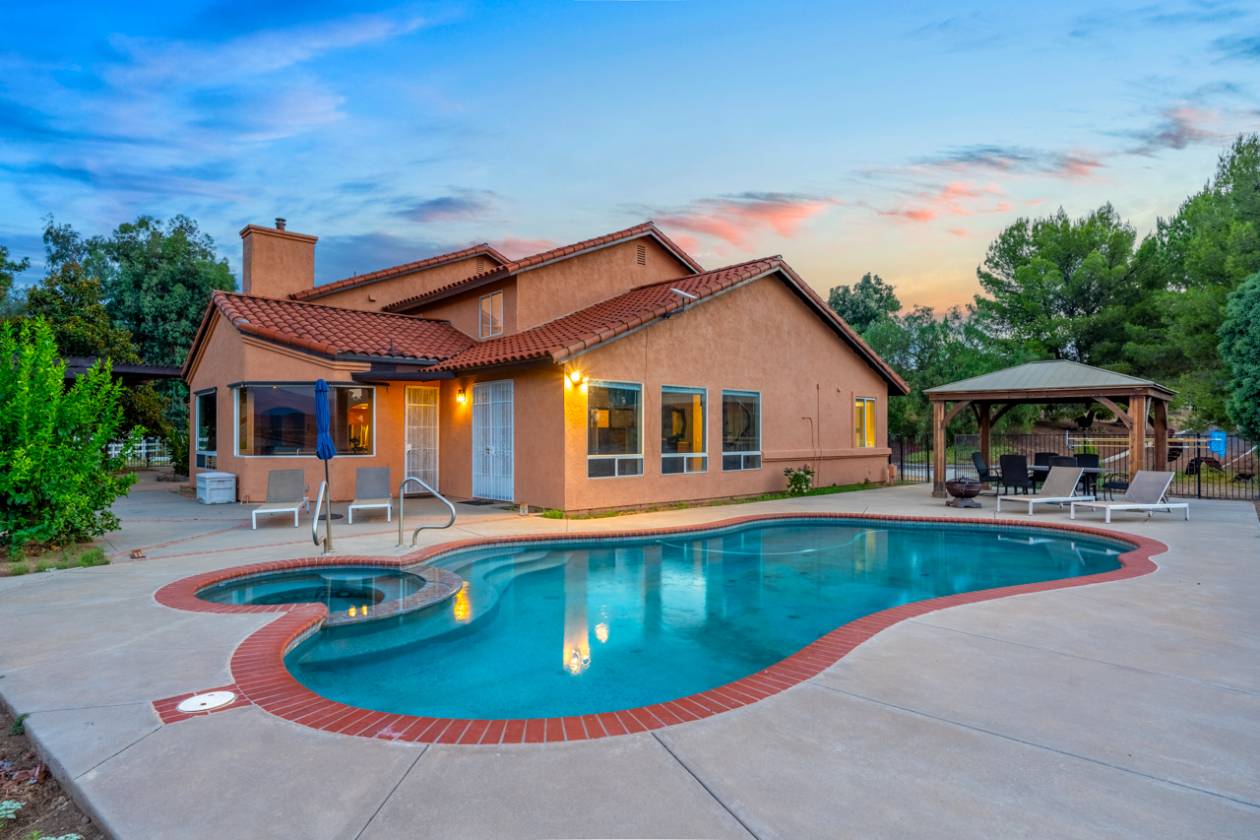 This stunning property offers a rare opportunity to embrace the California lifestyle on 10 acres of usable land. This residence boasts an array of new upgrades, making it a truly exceptional find. The home features 5 beds & 4 baths spread across a spacious 3753 sq ft of living space. As you step inside, you'll be greeted by new interior & exterior paint, as well as new carpeting that adds a touch of elegance to the interior. The property also benefits from owned solar panels, a new roof, and HVAC system, ensuring energy efficiency & comfort year-round. With a total lot size of 10 acres. For those with electric vehicles, this property offers the convenience of two level two charging stations. Additionally, a 3-car garage & a second two-car garage near the workshop provide ample space for vehicles & storage. We have septic & well inspection & Termite clearance completed Outdoors, the property is a true oasis, featuring a sparkling pool & jacuzzi, perfect for relaxation & entertainment. Embrace the agricultural opportunities with a vegetable garden, koi pond, 4 horse stable, horse corrals, livestock pens, and a chicken coop. The property also includes a large workshop for hobbyists & enthusiasts, surrounded by rolling mountains & hills, creating a peaceful & serene ambiance. Water is abundant on the property, with plenty of well water available for irrigation and home use. The property is also equipped with new pool equipment, including a propane heater & tank, ensuring that you can enjoy the pool & jacuzzi year round. The road to house has been upgraded for easy access.