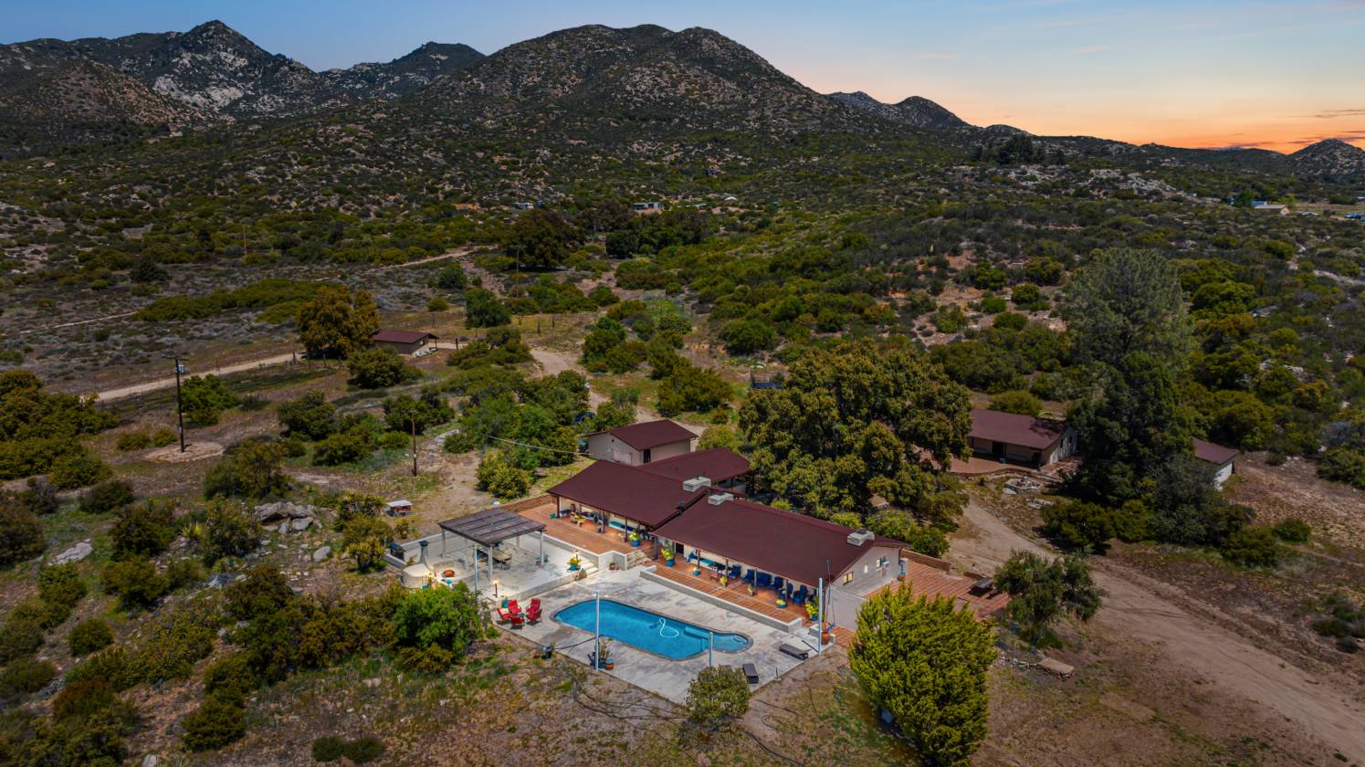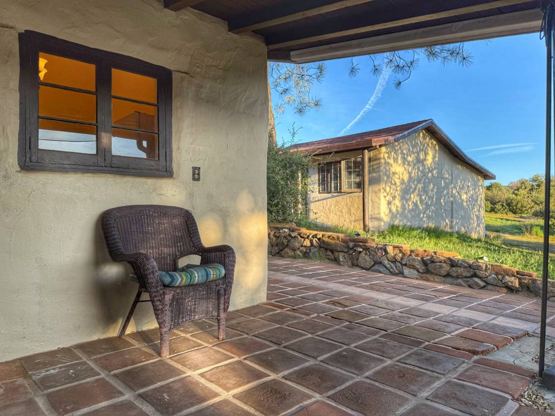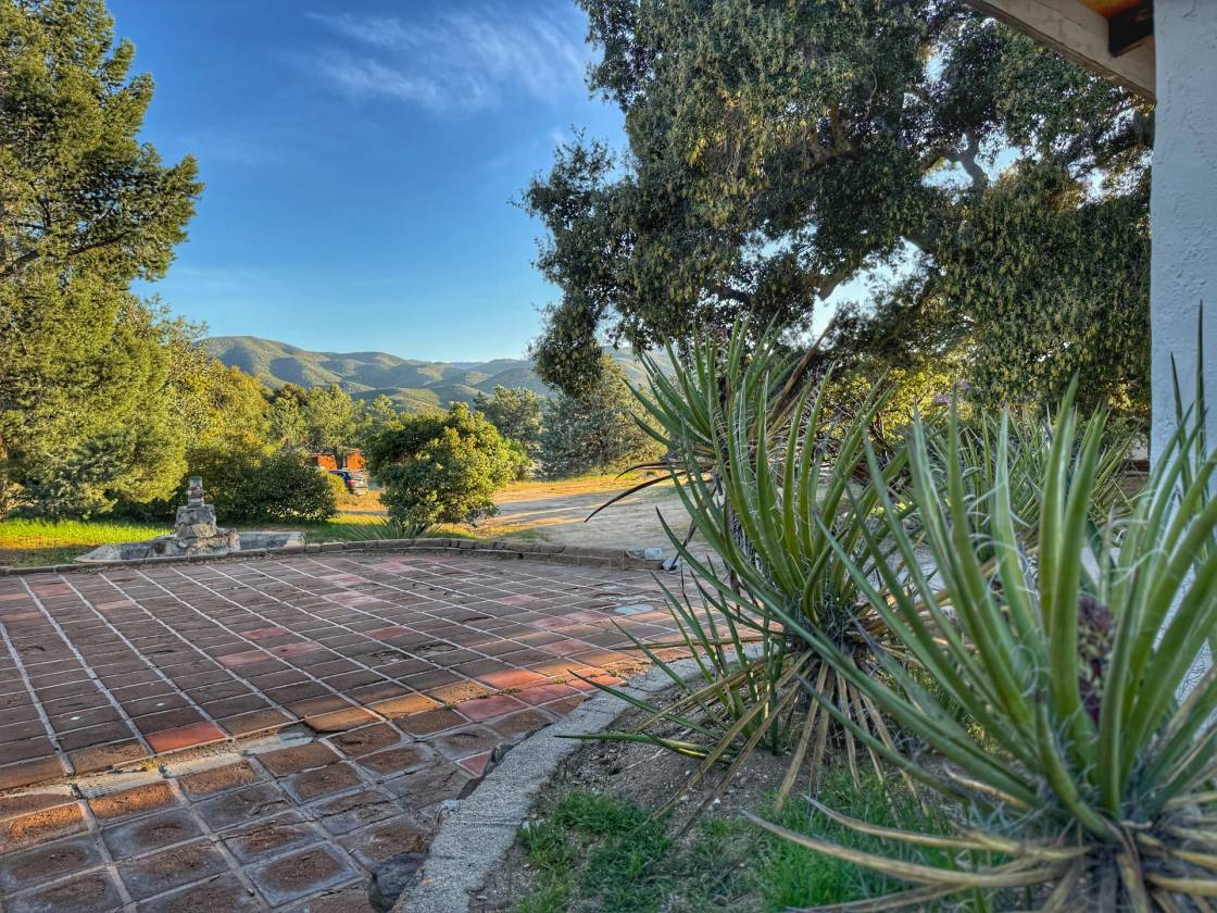 The most special place !!! This hacienda-style adobe pool home with detached guest quarters/ADU is situated just perfectly right on a lovely 15-acre spread. This is Old Mine Road, in an incredibly scenic and historic portion of Ranchita, with westward views and more cover from the elements that can be a little more wild, further east toward Borrego Springs, on the wide-open portions of town. Gorgeous plaster, saltillo tiles, murals, and mosaics speak to the heyday of this excellent ranch, once an Angeleno museum owner's and artists' retreat in the 1930s and 1940s. There is a small "servant's" quarters off the kitchen, and a very practical root and wine cellar beneath that wing of the home. There are multiple outbuildings for storage, workshop, a small adobe stable for horses or burros or goats and sheep, and another outbuilding was converted to be more habitable, possibly for guests or moody teenagers, or maybe it has a future as an upscale "catio" or chicken palace! More recent stewards of the ranch have updated countless necessities as well as creature comforts, including the addition of a small orchard and garden, a vineyard, and of course, the resort-like pool and sun deck with pizza oven, hearth, and outdoor kitchen. A winding path will take you to the upper elevation of the acreage where you can look out over the beginnings of a lavender farm, perfect for this elevation and climate, and other plantable areas. You can also still spy the remnants of yet more art installations from bygone days, as well as the views over miles of open space, distant night sky observatories, and some of the most gorgeous sunsets you will ever see. This has been a very popular airbnb the last 9 years with excellent ratings, and always in high demand. Offered fully furnished for you to continue as an income property, or keep this as your own private hideaway.