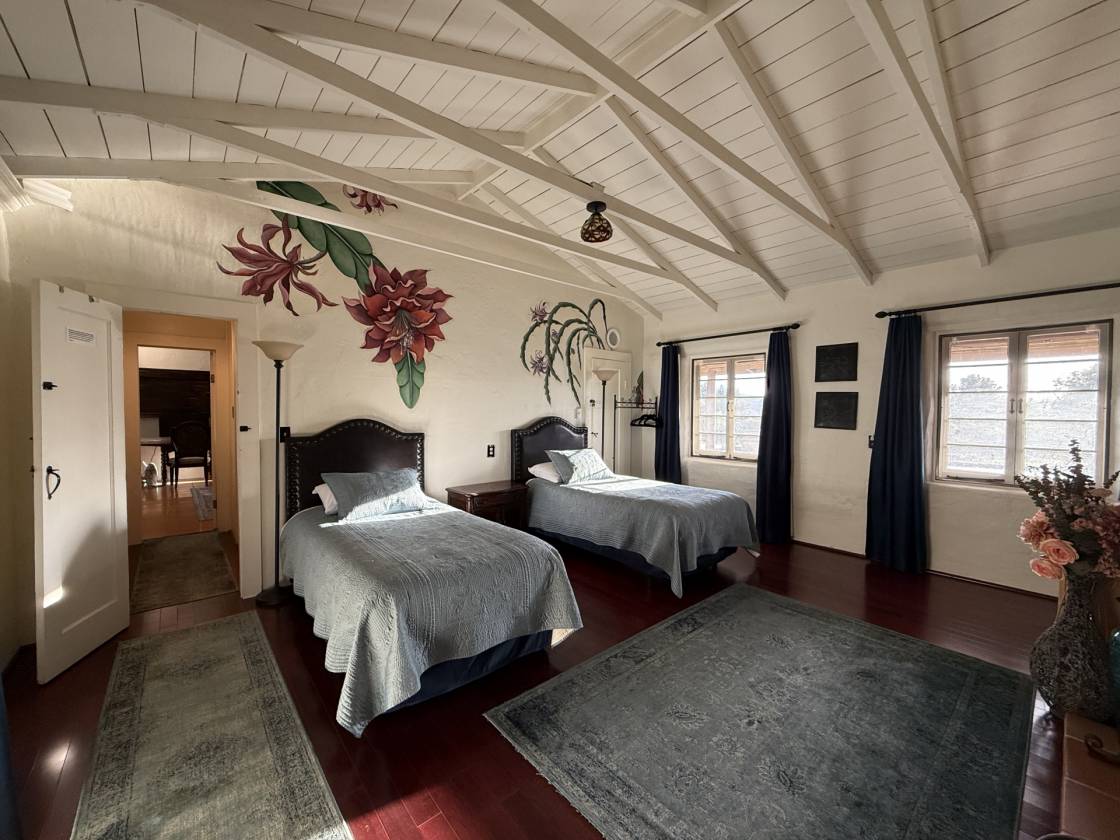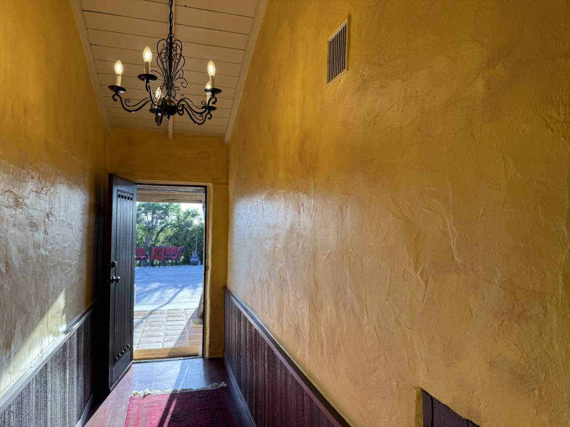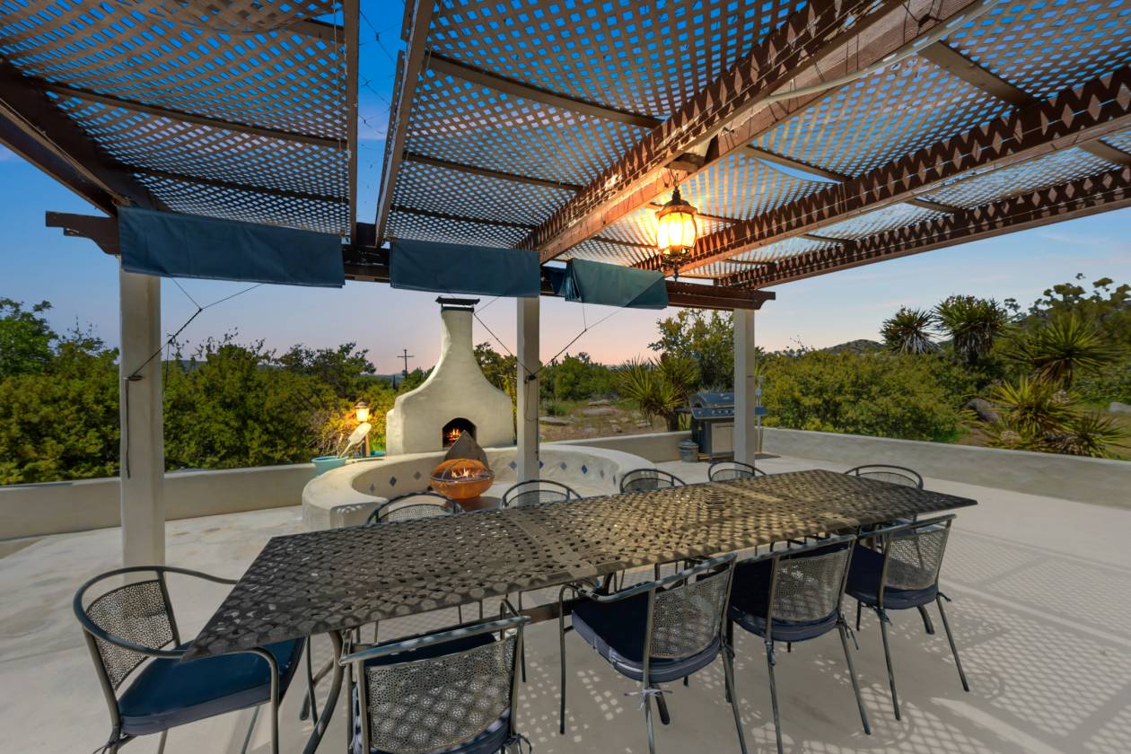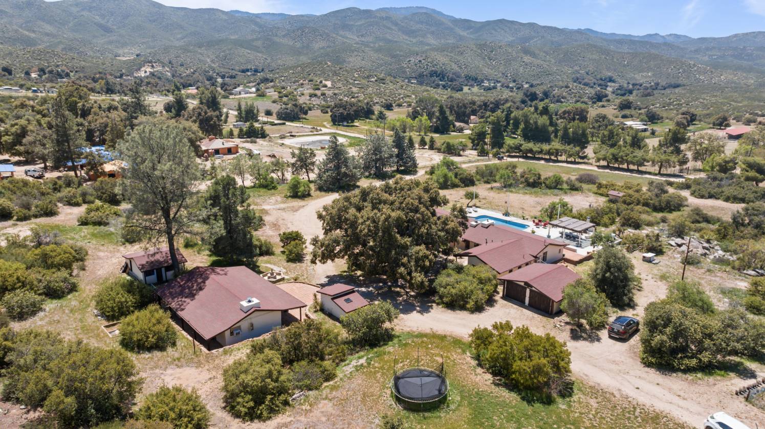 The most special place !!! This hacienda-style adobe pool home with detached guest quarters/ADU is situated just perfectly right on a lovely 15-acre spread. This is Old Mine Road, in an incredibly scenic and historic portion of Ranchita, with westward views and more cover from the elements that can be a little more wild, further east toward Borrego Springs, on the wide-open portions of town. Gorgeous plaster, saltillo tiles, murals, and mosaics speak to the heyday of this excellent ranch, once an Angeleno museum owner's and artists' retreat in the 1930s and 1940s. There is a small "servant's" quarters off the kitchen, and a very practical root and wine cellar beneath that wing of the home. There are multiple outbuildings for storage, workshop, a small adobe stable for horses or burros or goats and sheep, and another outbuilding was converted to be more habitable, possibly for guests or moody teenagers, or maybe it has a future as an upscale "catio" or chicken palace! More recent stewards of the ranch have updated countless necessities as well as creature comforts, including the addition of a small orchard and garden, a vineyard, and of course, the resort-like pool and sun deck with pizza oven, hearth, and outdoor kitchen. A winding path will take you to the upper elevation of the acreage where you can look out over the beginnings of a lavender farm, perfect for this elevation and climate, and other plantable areas. You can also still spy the remnants of yet more art installations from bygone days, as well as the views over miles of open space, distant night sky observatories, and some of the most gorgeous sunsets you will ever see. This has been a very popular airbnb the last 9 years with excellent ratings, and always in high demand. Offered fully furnished for you to continue as an income property, or keep this as your own private hideaway.