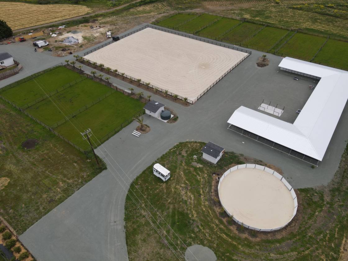 - Brand new custom FCP 15 stall horse barn with 16x24 stalls with custom fit interlock mats, wash racks and tackroom, 170x220 Premiere Equestrian irrigated arena with OTTO mats, 10 auto-irrigated grass pastures planted with mixed pasture grass and Bermuda, 60 ft round pen.