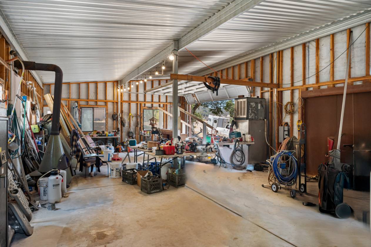 - Hay barn- with 2 run-in stalls. Several pasture areas with own covers to protect from the elements