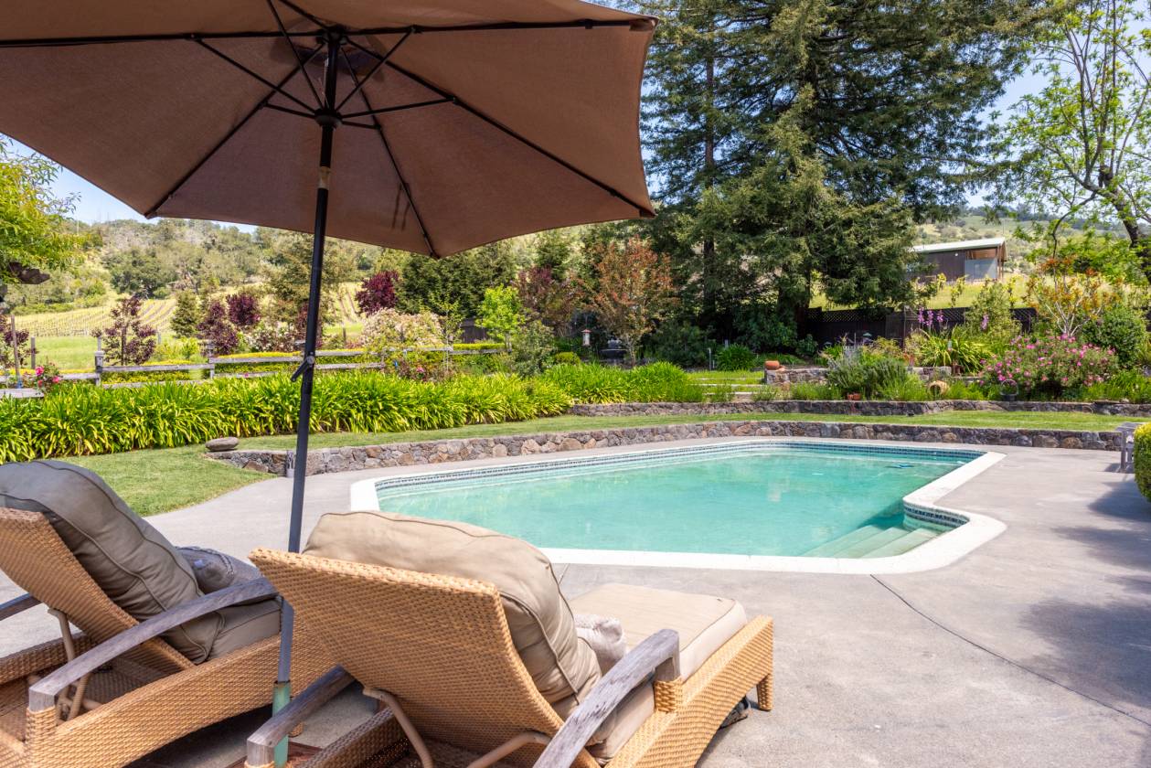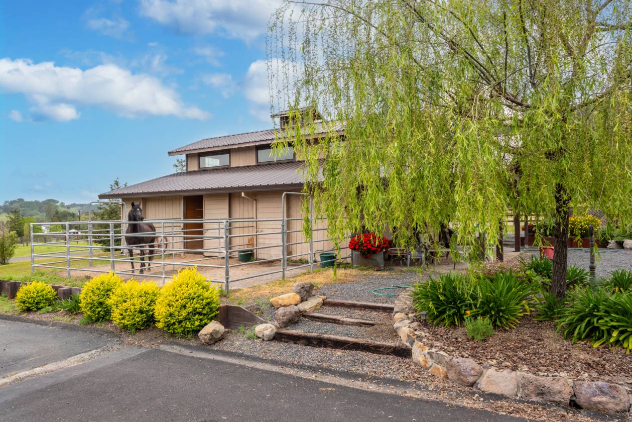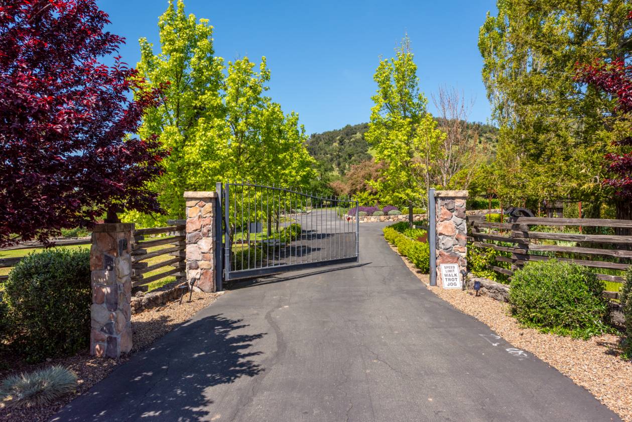 This property is pure perfection! Living here is a dream come true. No details were missed, and no expense spared, in creating the ultimate in classic elegance. Stand anywhere on this electronic-gated 9.42 acre parcel and you will be drawn into the beauty of immaculately maintained grounds and forever vistas. Quality features in the home include hardwood floors, two fireplaces, a remodeled English-style kitchen, and many more that render this residence hard to leave. The newer ADU is gorgeous with high-end finishes including vaulted ceilings, a fireplace & private yard. The 4-stall pole barn is the ideal place to enjoy your 4-legged friends or saddle up and ride in the over-sized arena, but the inviting & relaxing pool will compete for your attention on hot summer days! The newer garage & studio/workshop with full bath add yet another place to follow other pursuits. Mature landscaping includes an exquisite rose garden, grape arbors, and spacious lawns. An on-demand generator stands ready if ever needed. This gated community is located just minutes away from all amenities and is convenient to Santa Rosa and Valley of the Moon. This is not an opportunity to be missed!