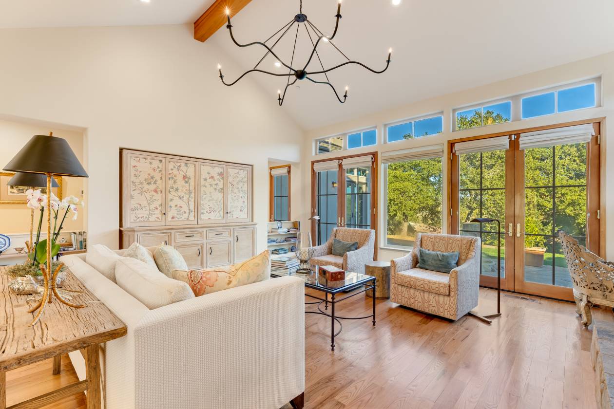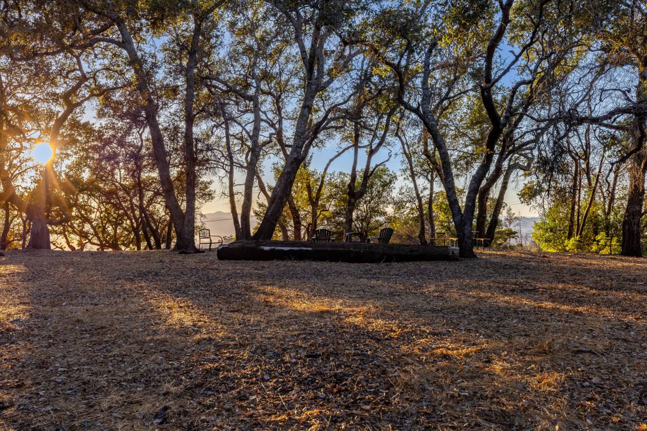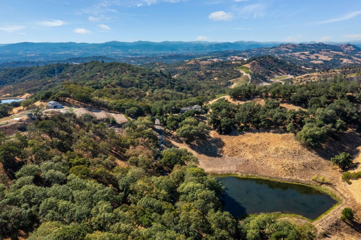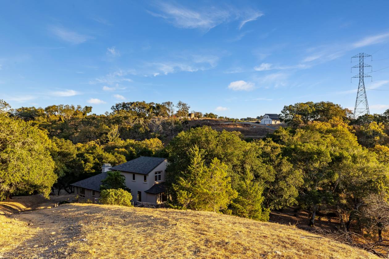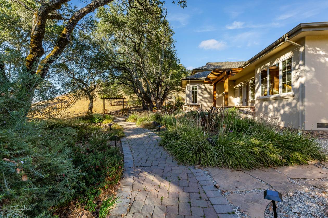 Poised on prime Sonoma County countryside 8373 Singing Hills Trl is the pinnacle of serenity and elegance. Originally part of Otto and Hansel (Mieth) Hagel's historic ranch, this estate offers panoramic views, walking trails, a tranquil pond stocked with fish, usable level land, and a versatile two story utility barn. The custom 4200 sqft residence exudes warmth and sophistication with oak floors, vaulted ceiling light filled interiors and grand stone fireplaces- all creating a timeless welcoming ambiance. Custom French doors in the living room open to a flagstone patio with a built-in wet bar and soothing fountain. A chic library/study with custom built-ins and woodland views provides a quiet retreat.Designed for entertaining, the chef's kitchen includes double ovens, a gas island cooktop, dual pantries and a charming breakfast nook. The main level primary suite is a true retreat, featuring a grand stone fireplace, sitting area, spa inspired bath, walk-in closet and private patio access. A breezeway leads to a three car garage and ADU/studio above-ideal for guests or a personal sanctuary. Located minutes from vibrant towns, this estate offers a rare combination of serene privacy and effortless daily living.