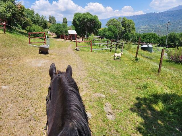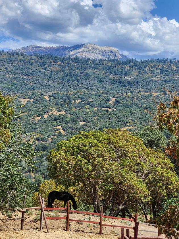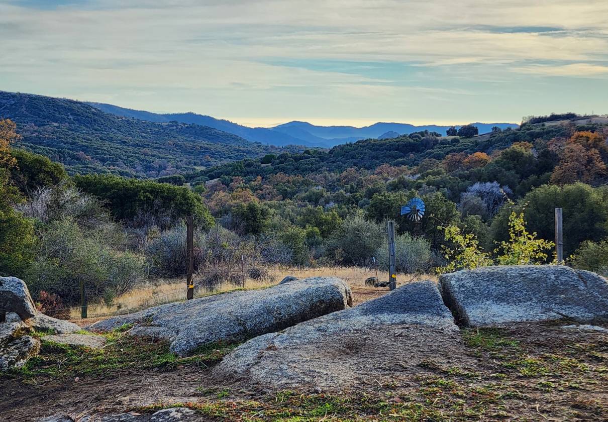 Discover your own private retreat in the Sierra foothills! This unique 9.5-acre property sits atop a secluded knoll at the end of a gated driveway, offering breathtaking 360° views—including Big Baldy, the valley below, and surrounding oak-covered hills. This property is two separate APNs that add up to 9.5 acres between the two of them. Designed for horse lovers and outdoor enthusiasts, the land features six paddocks with shelters, two turnout areas, a riding arena, large metal barn, and ample space for RV or trailer parking. About four acres remain undeveloped for future use or riding. The custom ranch-style home blends rustic charm with modern updates—stone fireplaces, knotty pine, hardwood floors, tile walk-in showers, and plenty of natural light. Enjoy multiple living spaces, a home office, excellent internet, and expansive porches to take in the scenery. Located in a Firewise Community across from the County Fire Station and near the Community Center, you're just 30 minutes from Kings Canyon National Park, and 50 min from Sequoia National Park, nearby Hume Lake, and endless recreation. At 3,000 ft elevation, enjoy life above the fog and below the snow. A mini 'Yellowstone' awaits—don't miss this one-of-a-kind opportunity!