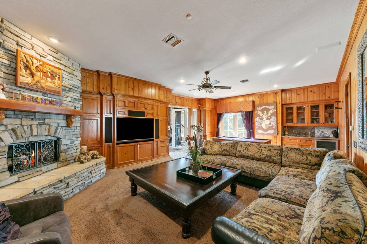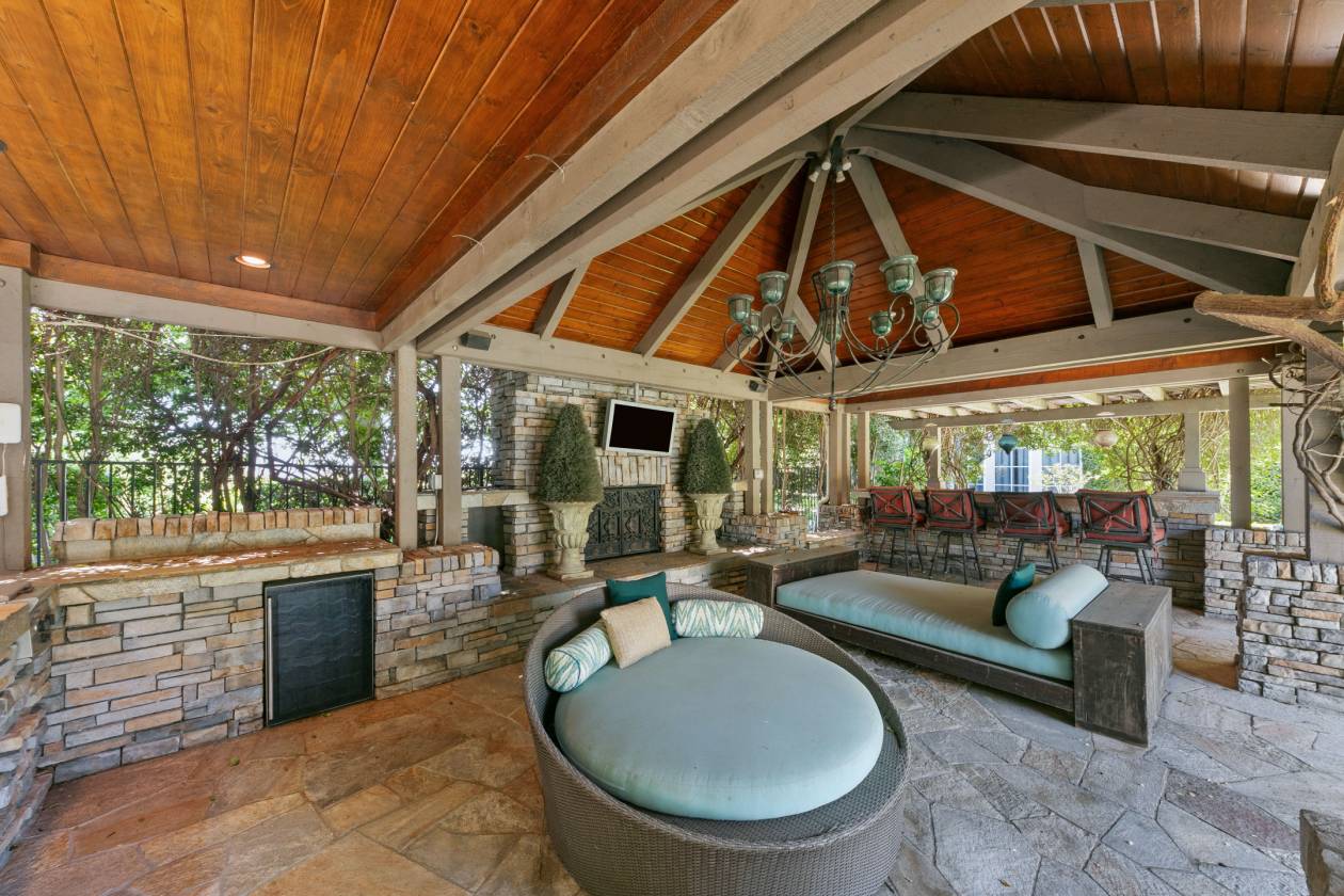 - 3 Covered Outdoor Entertainment Areas just steps from the pool/spa featuring Kitchen/BBQ, Fireplace, TV and inviting Bar Area