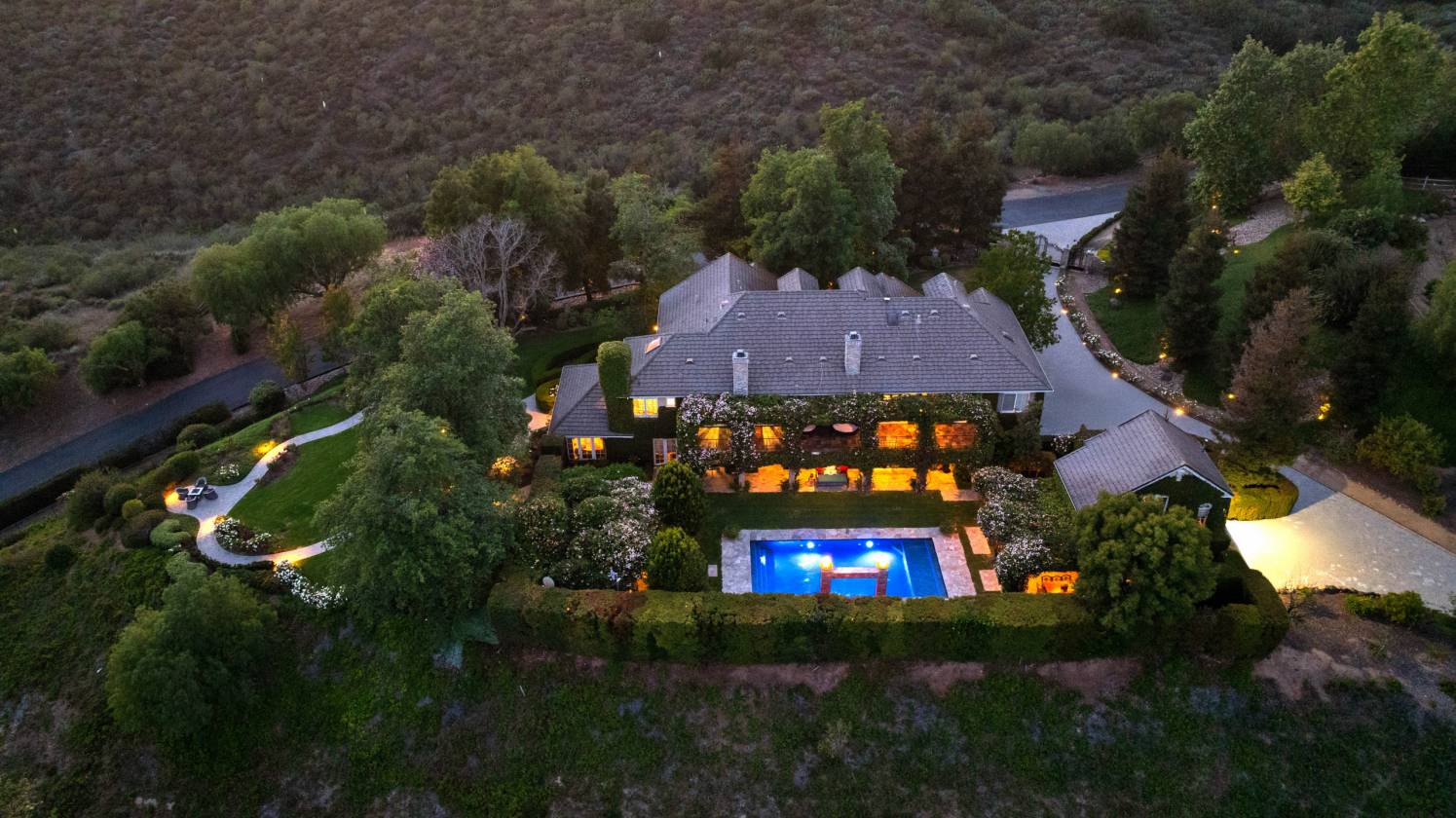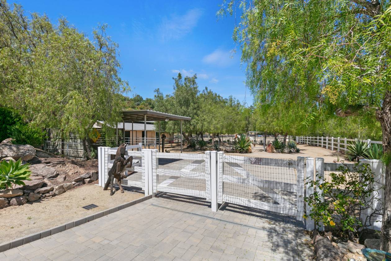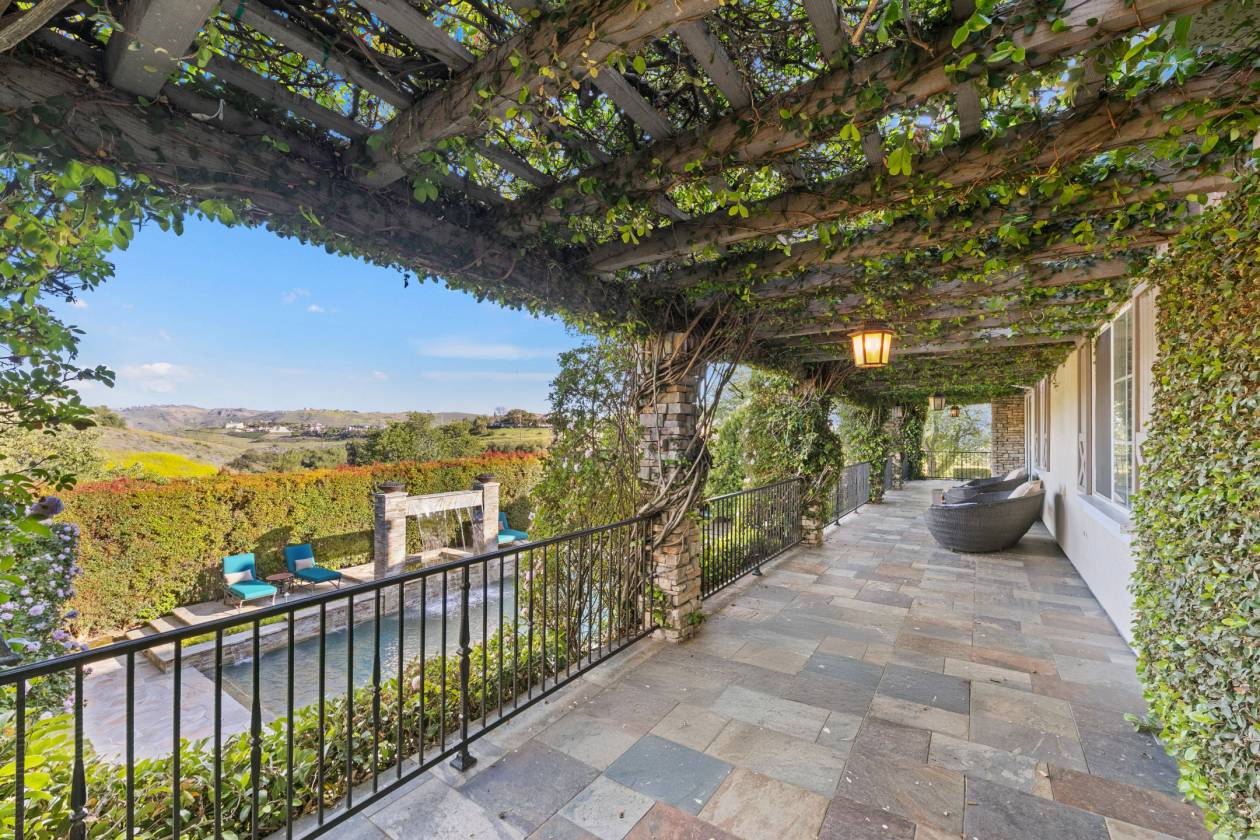 Just Reduced! Rocking Horse Ranch - Where luxury living meets storybook country life on 20.93 private acres in the heart of Santa Rosa Valley. Priced under $7.4 million--and unlike anything else on the market. Tucked inside a gated access equestrian enclave, this French Country-inspired estate feels like its own world. Think: sunrise rides on bridle paths, afternoons by the pool, and nights under the stars with friends and music. Horse lovers, get ready to saddle up to a regulation-size riding arena with lights (a rarity in the Santa Rosa Valley), viewing stand, 6-stall barn with turnouts, mini kitchen/bath and tack lounge, hot walker, wash racks, shaded pony ring, and luxury chicken coop co-op. There is convenient horse trailer and RV access with electrical nearby. Beyond the barn facilities, the property feels like a private park—lush gardens with flat walking paths and view-inspired gathering areas, rose garden and greenhouse, a putting green that transforms into an outdoor movie viewing lawn, and a dreamy country path that leads to an expansive flat pasture/meadow perfect for weddings, parties, or just chasing sunsets. Inside the warm 6,731 sq ft main residence, you’ll find high ceilings throughout, a chef’s dream kitchen with two islands, formal dining room, a warm office/library, music room, and inviting family spaces that spill right into the outdoors. A guest/au pair suite with private entrance completes the first level. The second-level primary suite is its own complete retreat with a fireplace, wide covered balcony, mini kitchen, and expansive bath and closet area. Five more spacious suites upstairs mean everyone has space to unwind. Smart home tech, heated floors, 4 fireplaces, and a 4-car garage are all featured. Creative soul’s, this one’s for you – a separate 1200 sq ft two-story guest house/music studio overlooks the pool. When the sun goes down? Head to the movie room with bar or step out to the resort-style pool and spa with shimmering water walls, fire features, and three covered lounges. The outdoor living room—with full kitchen, bar, fireplace, and TV—takes entertaining to the next-level. Set against the backdrop of Ventura County's breathtaking Santa Rosa Valley, this 20.93-acre dream estate strikes the perfect chord between rustic charm and luxury living. Nestled within a private, gated equestrian enclave where bridle paths weave through the community, this Country French-style retreat is more than just a home - it's a lifestyle. Rocking Horse Ranch: A place to thrive, create, ride, celebrate—and breathe. Welcome to your next chapter. Please call for a private viewing. Co-listed with Deb Chakko - KW Exclusive Properties DRE# 01941021