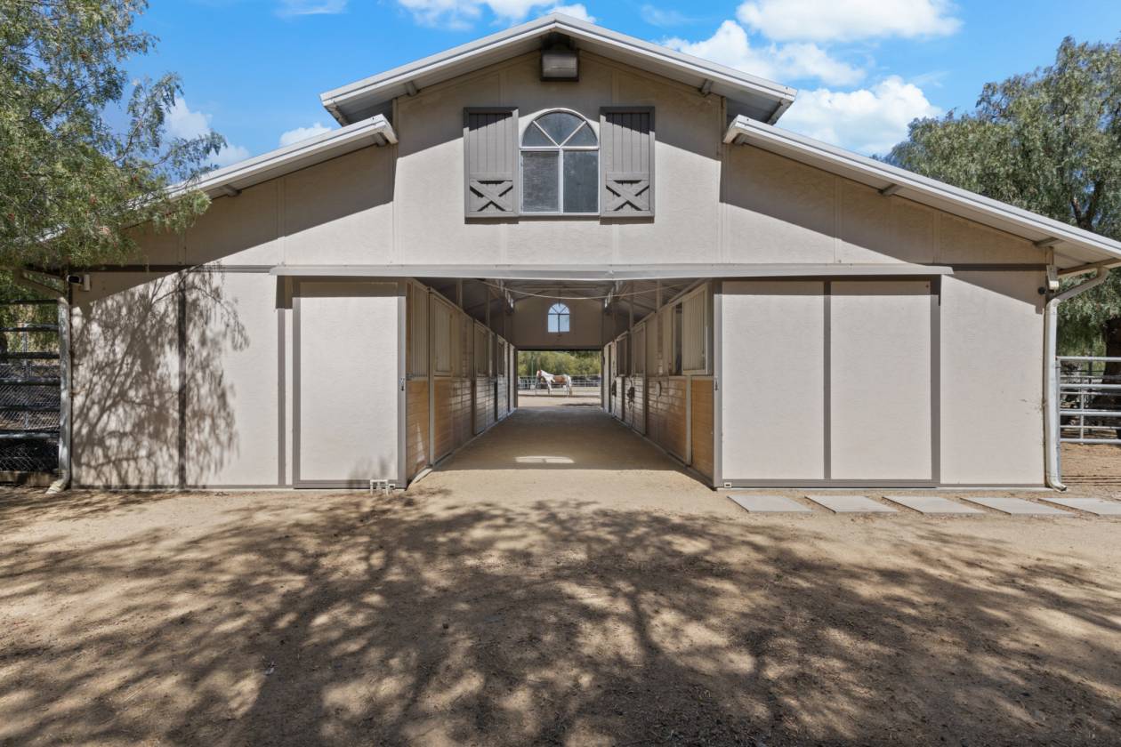 - Full Equestrian Facilities including regulation sized lighted arena with viewing stand, pony ring, 6-stall barn with turnouts/mini kitchen/bath and tack room, hot walker, washing station, extra grazing area, storage area