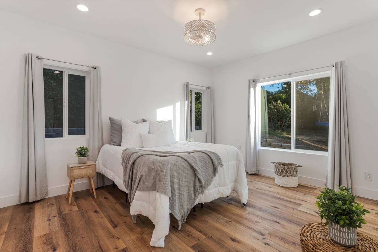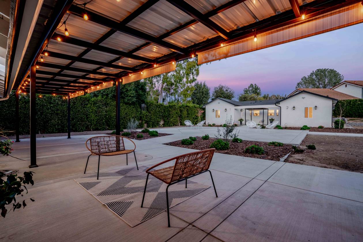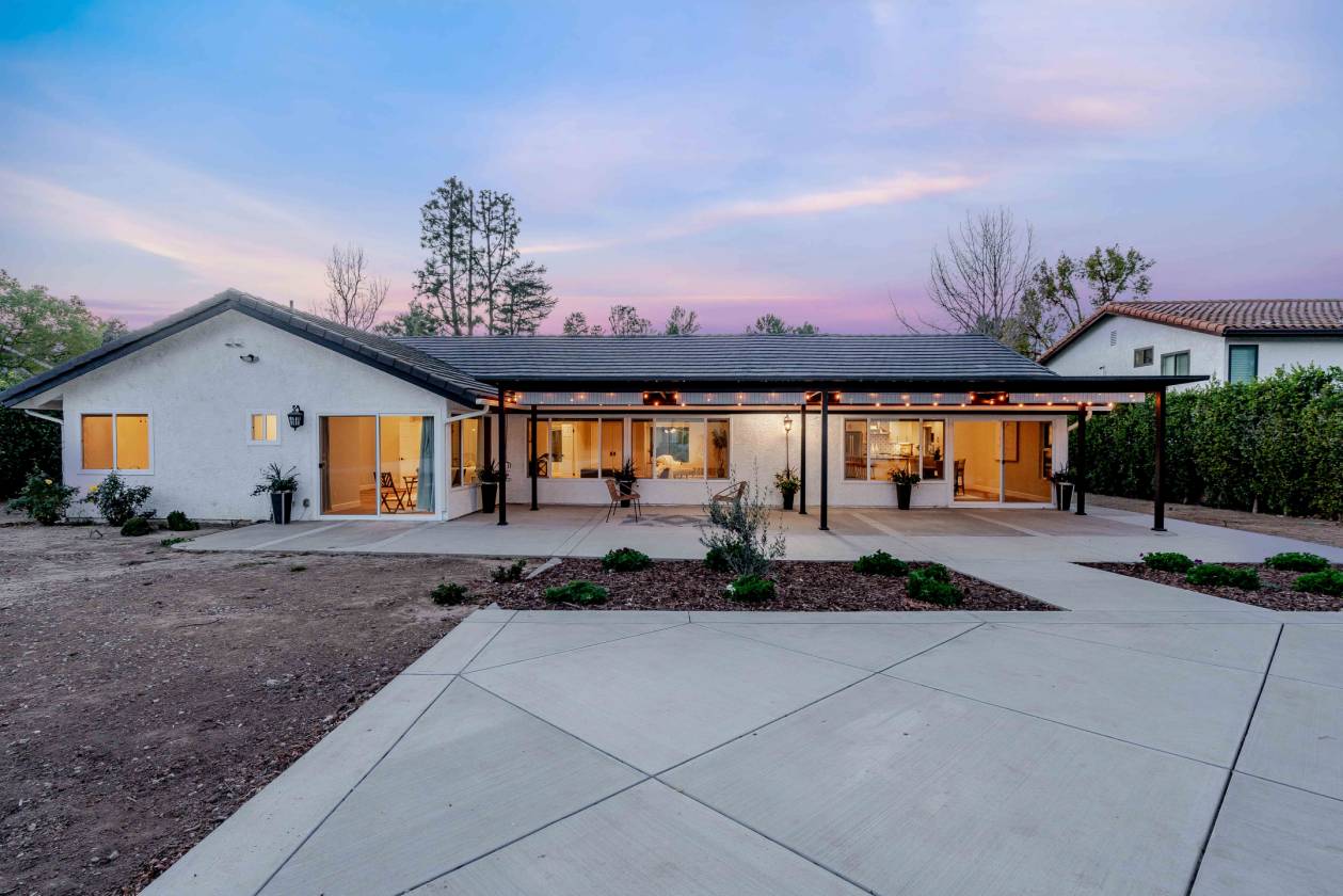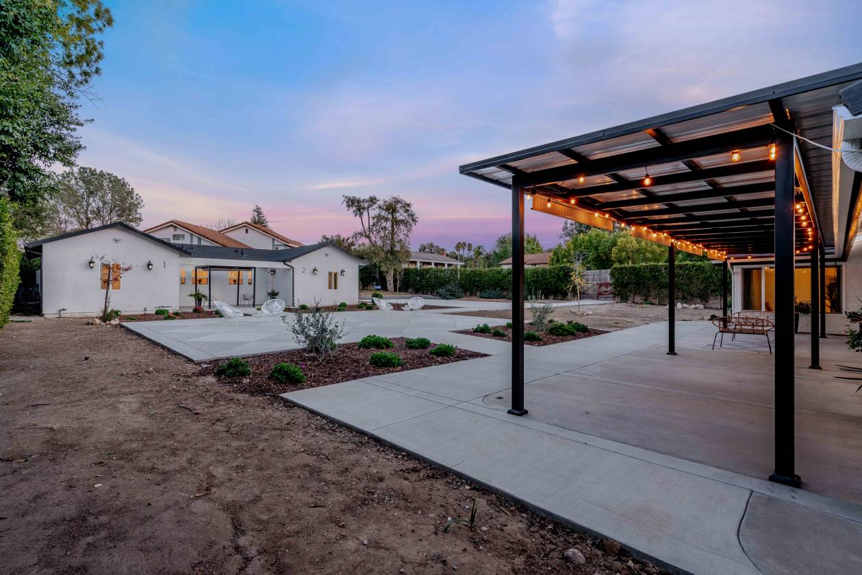 Luxury Meets Lifestyle in this One-of-a-Kind West Simi Valley Property! Single Story with 1,200 sqft ADU!! Don't miss your chance to own a truly exceptional property in the heart of the highly sought-after Pheasant Hills neighborhood of West Simi Valley. This horse-zoned, half-acre corner lot offers a blend of luxury, space, privacy, and flexibility—perfectly suited for multi-generational living, entertaining, and enjoying the very best of California living. This custom single-story home has been thoughtfully remodeled to create a warm and elegant space. The main residence spans 2,765 square feet and features four bedrooms and two and a half baths. Inside, soaring wood beamed ceilings and expansive new windows bathe the interior in natural light, while brand-new luxury vinyl waterproof flooring flows throughout the home, combining beauty with durability. The chef's kitchen is a true showpiece, centered around an oversized quartz island and featuring sleek finishes, a generous pantry with pull-out drawers, and high-end appliances—perfect for both everyday living and entertaining on a grand scale. The bathrooms have been completely reimagined with spa-inspired finishes, oversized walk-in showers, and high-end fixtures, creating a sense of luxury and relaxation in every detail. Solid wood doors, recessed lighting throughout, and a brand-new Lennox HVAC system ensure comfort and quality at every turn. Adding tremendous value and versatility is a beautifully constructed 1,200-square-foot ADU, completed in 2023. Meticulously designed by renowned architect Immanuel Davis and brought to life by the expert craftsmanship of VOSS Construction. With its own private entrance, this detached unit is ideal for extended family, guests, or rental income. It features a full kitchen with stainless steel appliances, its own laundry room, a stylish half bath for visitors, a spacious bedroom, and a luxurious full en-suite bathroom. Designed with both function and comfort in mind, the ADU seamlessly blends with the property while offering complete privacy and independence. Step outside and let your imagination run wild. The expansive backyard is a dream come true, offering endless potential for a barn, a pool, a putting green—or any vision you have in mind. A 40-foot covered metal pergola with pull-down shades creates the perfect setting for outdoor dining or relaxing in the shade, while a sport-court-sized concrete pad provides the ideal space for tennis, basketball, volleyball, or recreational fun. For those with toys or trailers, the property includes a separate gated entrance offering massive RV access with enough room to accommodate multiple RVs, boats, or horse trailers—an incredibly rare feature in this area. The landscaping has been thoughtfully planned with automatic lighting, a full sprinkler and drip irrigation system, and a stamped concrete walkway leading to the front door. Even the garage has been upgraded with insulation, epoxy floor and recessed lighting, reflecting the attention to detail found throughout the home. Opportunities like this don't come often. Come experience it for yourself—and make this exceptional estate your forever home.