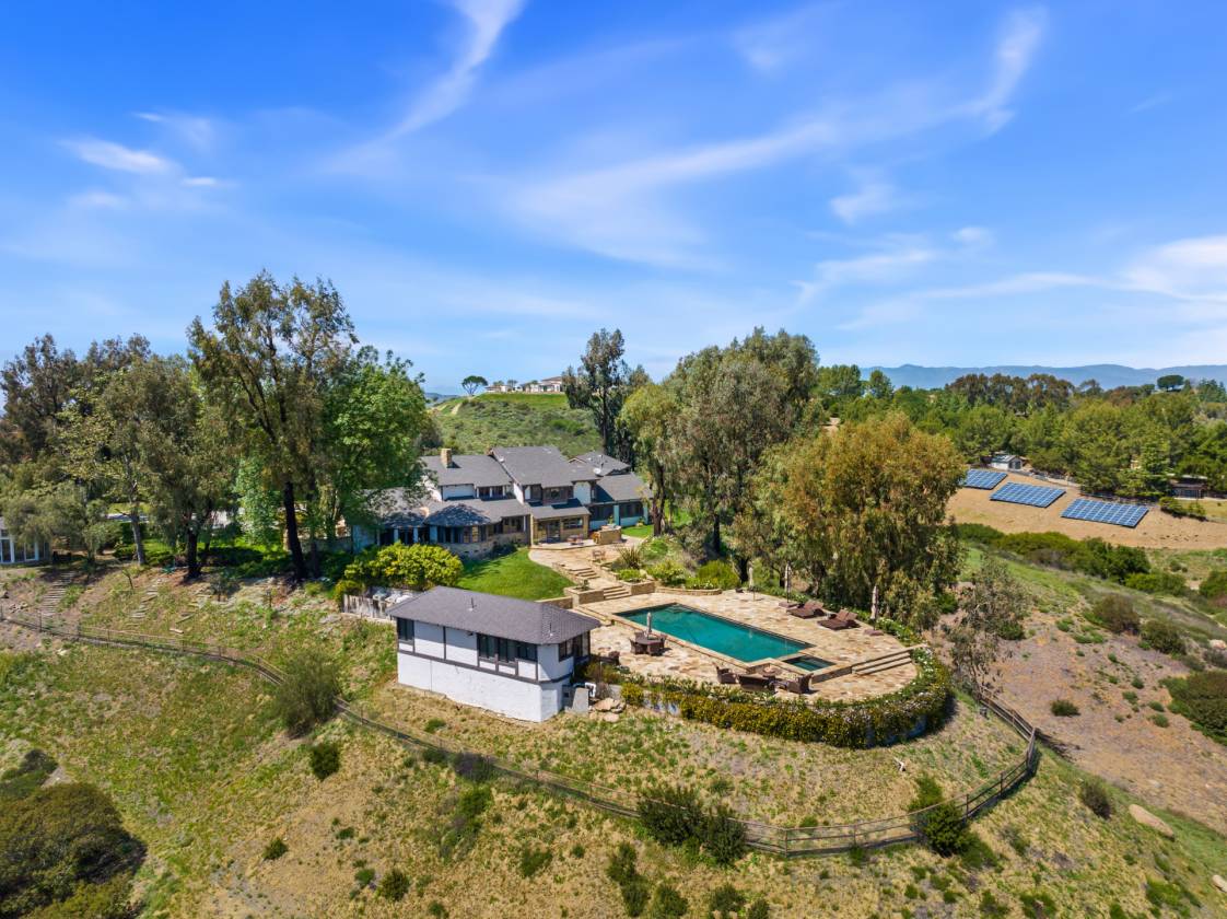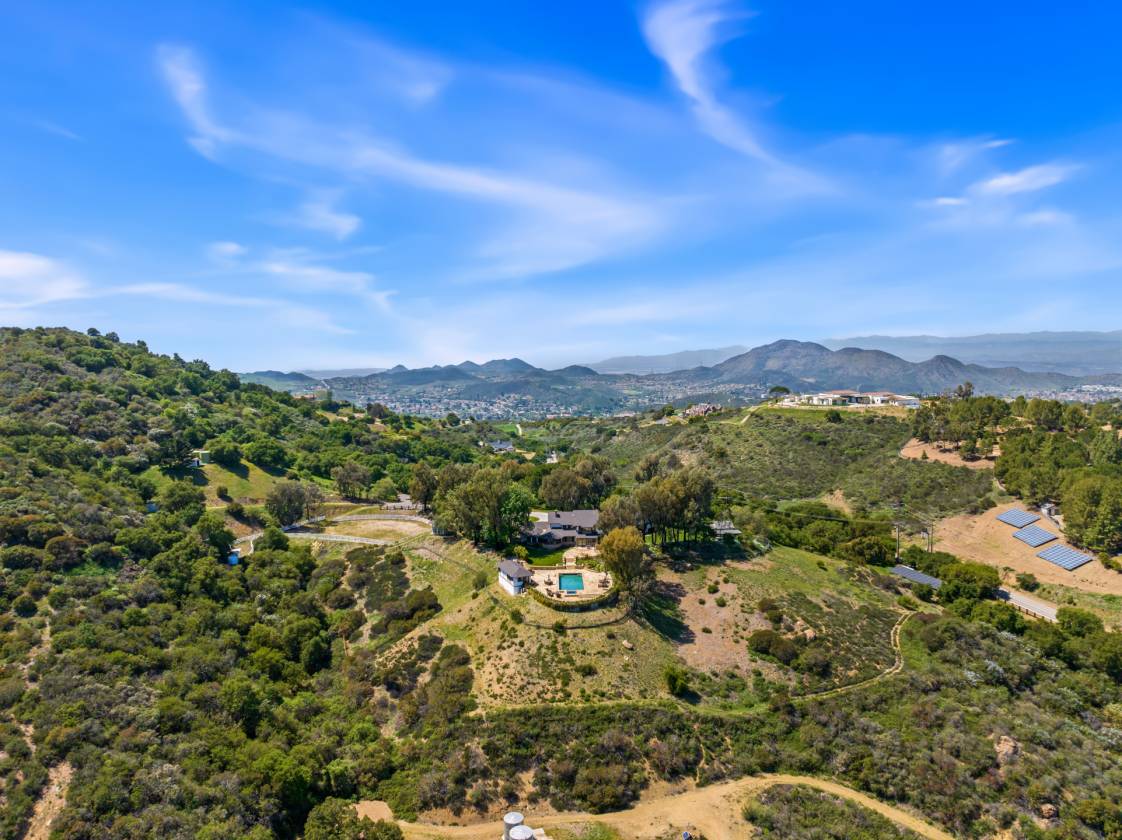 Set in one of Hidden Valley's most breathtaking locations, Treasure Hill Ranch offers a rare opportunity to own a legacy estate with sweeping, unobstructed views. Situated in the historic and pastoral community of Hidden Valley, one of the most exclusive ranch areas in California, this remarkable property captures the essence of privacy, natural beauty, and the unmatched lifestyle that defines the area. Privately gated and graced by stately oak trees and dazzling open space, this equestrian retreat is truly one of a kind, a picturesque, storied property with a charm all its own.Situated on approximately 20 acres of land, the property includes a main residence positioned to take full advantage of the sweeping vistas. A separate guest house offers additional space for family or visitors, and the well-equipped barn features a tack room, offices, and a one-bedroom apartment with a full kitchen, perfect for staff or extended stays. The grounds also showcase an expansive pool and yard with built-in BBQ, creating the perfect setting for entertaining or relaxing while soaking in the unparalleled views.This secluded and gated retreat provides the ultimate in privacy and tranquility, with panoramic views of majestic mountains and wide-open skies. It's an incredible opportunity to create your personal lifestyle vision, whether that means organic gardens, chickens, or even living off the grid. The land is a blank canvas with endless possibilities, an inspiring space for those seeking self-sufficiency, creativity, and connection to nature. Nearby trails wind through the awe-inspiring Santa Monica Mountains, inviting adventure and exploration just beyond your doorstep.Treasure Hill Ranch is more than just a property, it's a lifestyle. Whether you envision a working ranch, a luxurious country getaway, or a family compound, this estate is the perfect canvas for your dream. Ideally situated near Sherwood Country Club and Camarillo Airport, and just 45 minutes from Beverly Hills, this property offers an unrivaled lifestyle in one of Southern California's most desirable and elite communities, ''where the fortunate few come to live amongst legacy, beauty, and a way of life that is truly extraordinary.