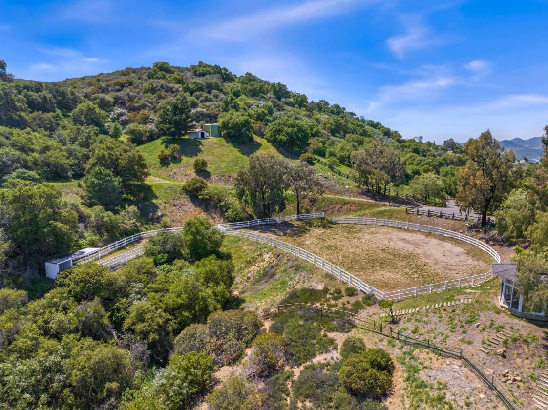 Set in one of Hidden Valley's most breathtaking locations, Treasure Hill Ranch offers a rare opportunity to own a legacy estate with sweeping, unobstructed views. Situated in the historic and pastoral community of Hidden Valley, one of the most exclusive ranch areas in California, this remarkable property captures the essence of privacy, natural beauty, and the unmatched lifestyle that defines the area. Privately gated and graced by stately oak trees and dazzling open space, this equestrian retreat is truly one of a kind, a picturesque, storied property with a charm all its own.Situated on approximately 20 acres of land, the property includes a main residence positioned to take full advantage of the sweeping vistas. A separate guest house offers additional space for family or visitors, and the well-equipped barn features a tack room, offices, and a one-bedroom apartment with a full kitchen, perfect for staff or extended stays. The grounds also showcase an expansive pool and yard with built-in BBQ, creating the perfect setting for entertaining or relaxing while soaking in the unparalleled views.This secluded and gated retreat provides the ultimate in privacy and tranquility, with panoramic views of majestic mountains and wide-open skies. It's an incredible opportunity to create your personal lifestyle vision, whether that means organic gardens, chickens, or even living off the grid. The land is a blank canvas with endless possibilities, an inspiring space for those seeking self-sufficiency, creativity, and connection to nature. Nearby trails wind through the awe-inspiring Santa Monica Mountains, inviting adventure and exploration just beyond your doorstep.Treasure Hill Ranch is more than just a property, it's a lifestyle. Whether you envision a working ranch, a luxurious country getaway, or a family compound, this estate is the perfect canvas for your dream. Ideally situated near Sherwood Country Club and Camarillo Airport, and just 45 minutes from Beverly Hills, this property offers an unrivaled lifestyle in one of Southern California's most desirable and elite communities, ''where the fortunate few come to live amongst legacy, beauty, and a way of life that is truly extraordinary.