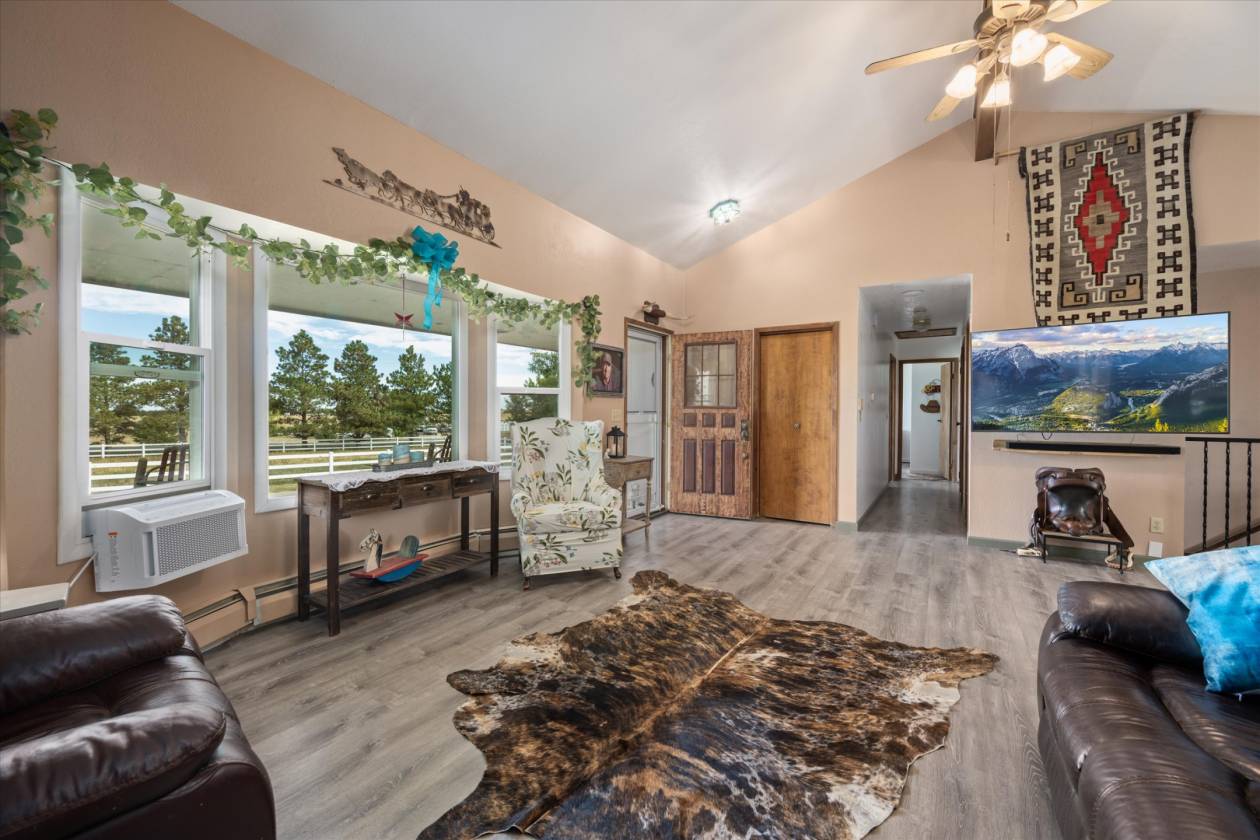 Bring your Horses, livestock, boats etc to this lovely Custom 4 bed 3 bath home situated on 4.83 +/- acres surrounded by nearly 50 towering pine, spruce, and a variety of trees offering privacy and quiet seclusion. 6 stall barn with hay storage, vet room, tack room, heated foaling stall, roping/riding arena, automatic waterers. Heated and air conditioned shop with 1/2 bath/office area, garden shed. Home features Thermadore appliances, including 60 " cooktop and double oven/hood, granite, under counter microwave. Stone fireplace/pellet insert. Entertain in the back yard oasis! Raised garden beds and chicken coop and so many things to see here and easy access to I 70 and 79 for convenient commuting! Handicap accessible! Broker Remarks: 24 hour notice to show and bring an offer Handicap accessible!