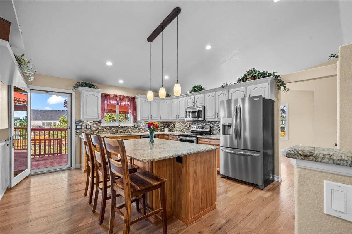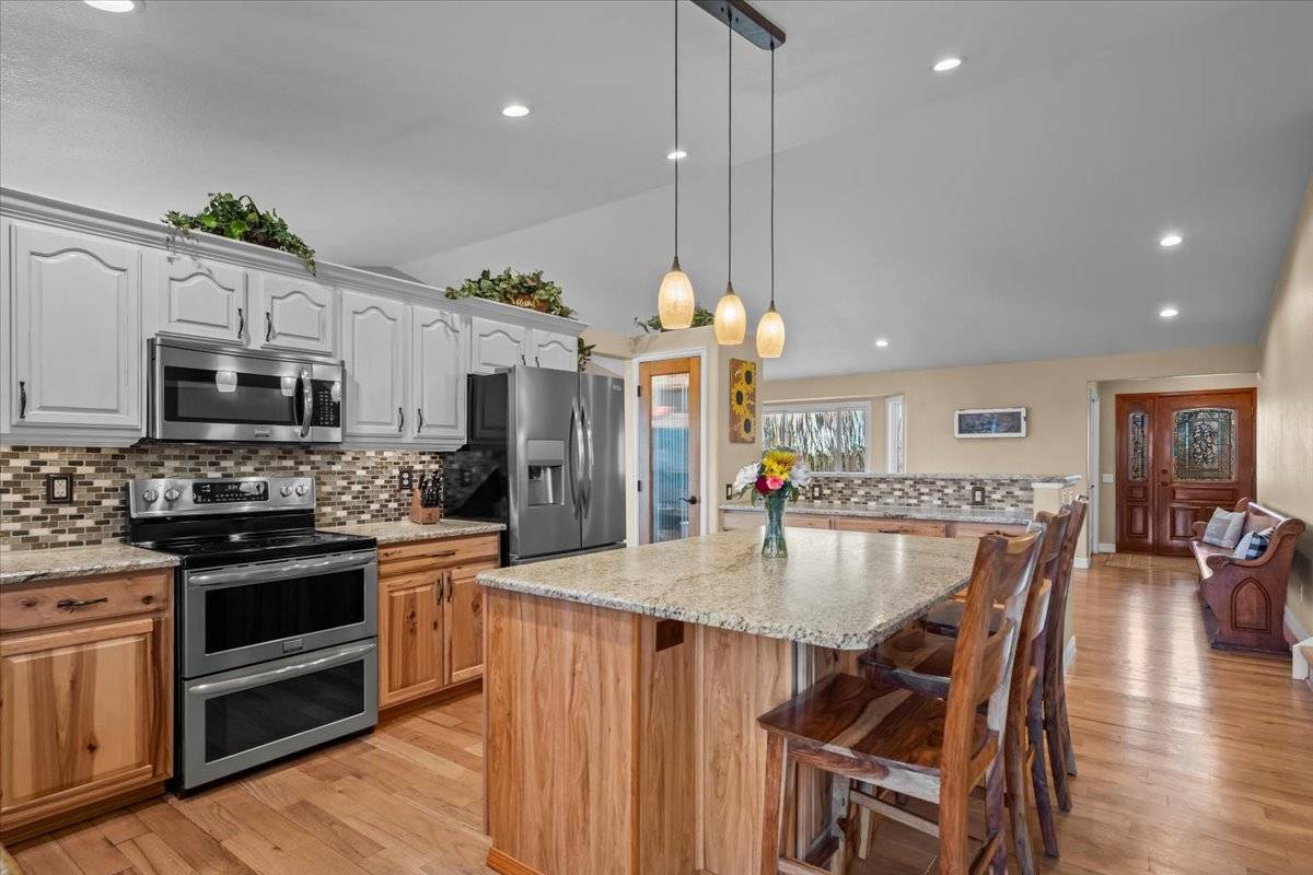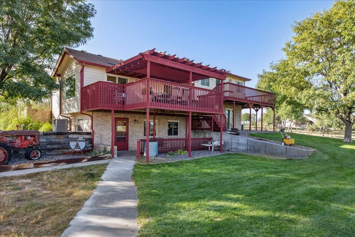 Welcome home to this stunning 4-bedroom, 4-bath multi-level residence set on nearly 3 acres—perfectly designed for both people and horses. This thoughtfully planned property offers a rare combination of space, privacy, and breathtaking mountain views, all just minutes from town conveniences. Bring your horses, hobbies, and guests—there’s room for it all! The property features two fenced grazing pastures, a riding arena, and a lean-to shelter, ideal for those seeking a manageable horse setup with easy access to amenities. A heated 1,530 sq ft outbuilding with concrete flooring and 220V power offers endless possibilities for tack, equipment, workshop, or trailer storage. Inside, a large foyer welcomes you into the main level with hardwood floors, vaulted ceilings, and abundant natural light. The upgraded kitchen features a spacious center island, stainless steel appliances, extensive cabinetry, and generous counter space—flowing seamlessly into a dining area with large windows framing your scenic surroundings. Step out onto the multi-level deck with two roller shades, a sunshade, and a built-in propane stub for grilling—perfect for relaxing after a ride or entertaining under the Colorado sky. The primary suite offers a luxurious retreat with a 5-piece bath, large walk-in closet, and top-down/bottom-up blinds. Another ensuite bedroom and multiple living areas—including a lower-level family room with new carpet and propane fireplace, plus a media room and office—provide flexibility for all lifestyles. A separate guest house currently used as a game room features a ¾ bath, large closet, and cabinetry—ideal for guests, a home office, studio. With its thoughtful layout, equestrian amenities, and proximity to town, this property offers the best of both worlds—country living with modern convenience. Don’t miss this rare opportunity to own a horse-friendly property with unmatched versatility and views!
