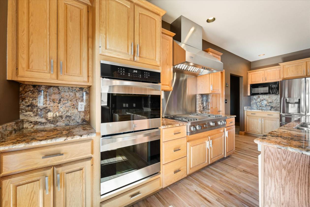 - Custom sprawling Brick 7046 sq ft home featuring 5 bedrooms,5 baths, 3 fireplaces ,Granite countertops, Viking Range hood, Walkout basement, Swimming Pool, Outdoor living space, formal dining, Mature trees, Landscaped, sprinkler system, drip system, dog kennel,generac generator,separate guest quarters or help home