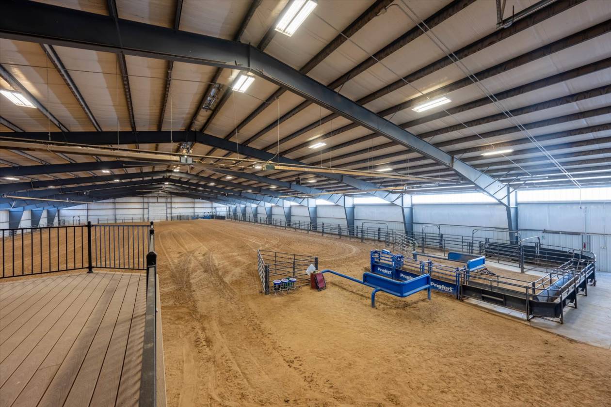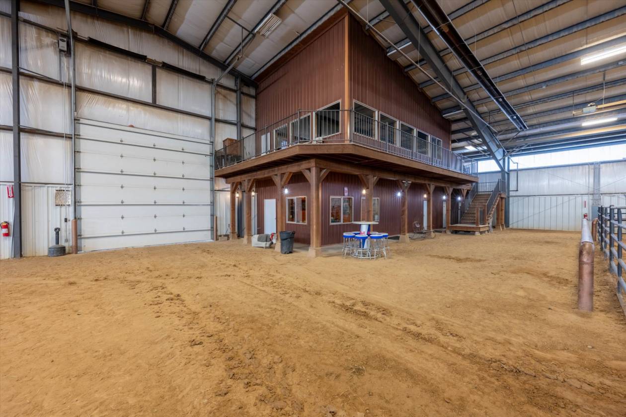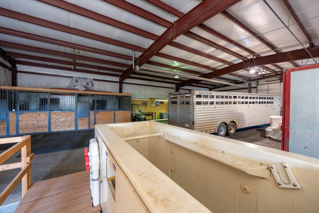 - 180 x 300 heated Indoor arena with office/Bar/apartment/restrooms, sound system, 20 12x12 stalls, tack room, heated wash rack, event approved, Priefert Walker, Round Pen,, Outdoor arena with lights, 2nd Barn/Shop with 6 stalls, Multiple runs, sheds, turnouts, fenced pastures, Aqua treadmill, Hay barn, RV Hookups