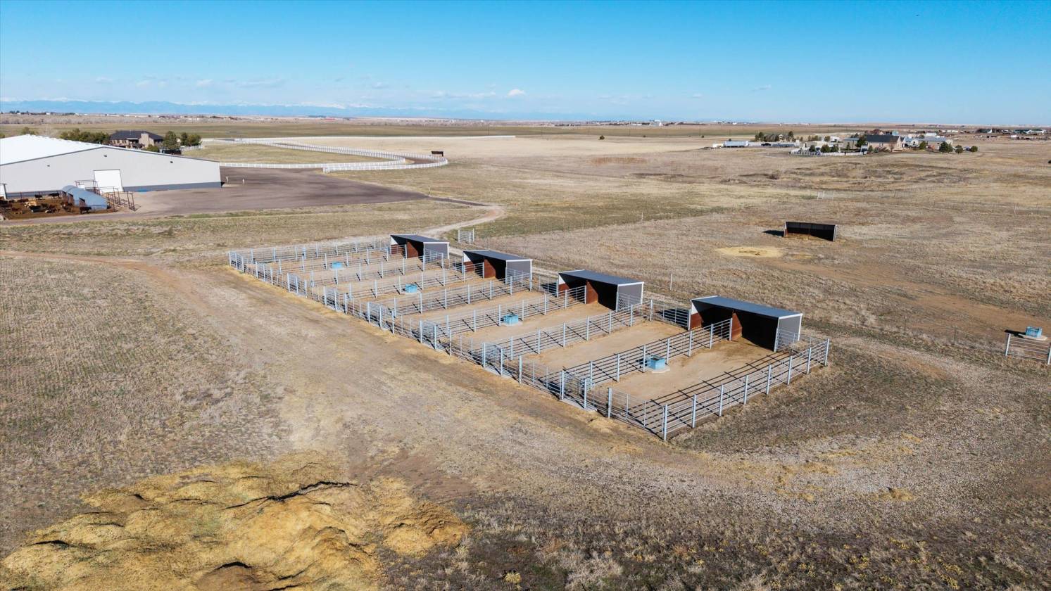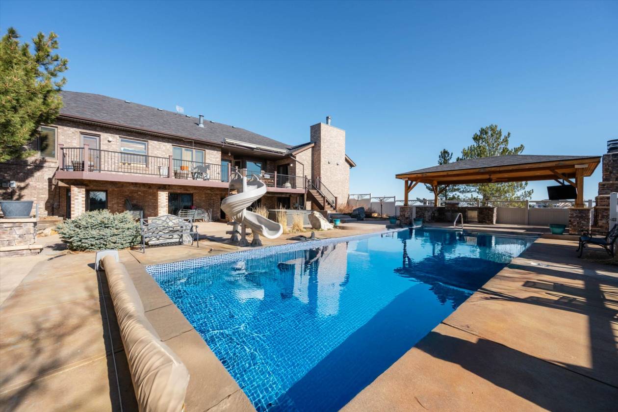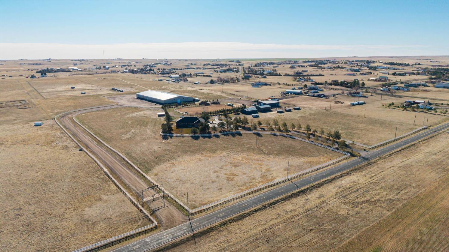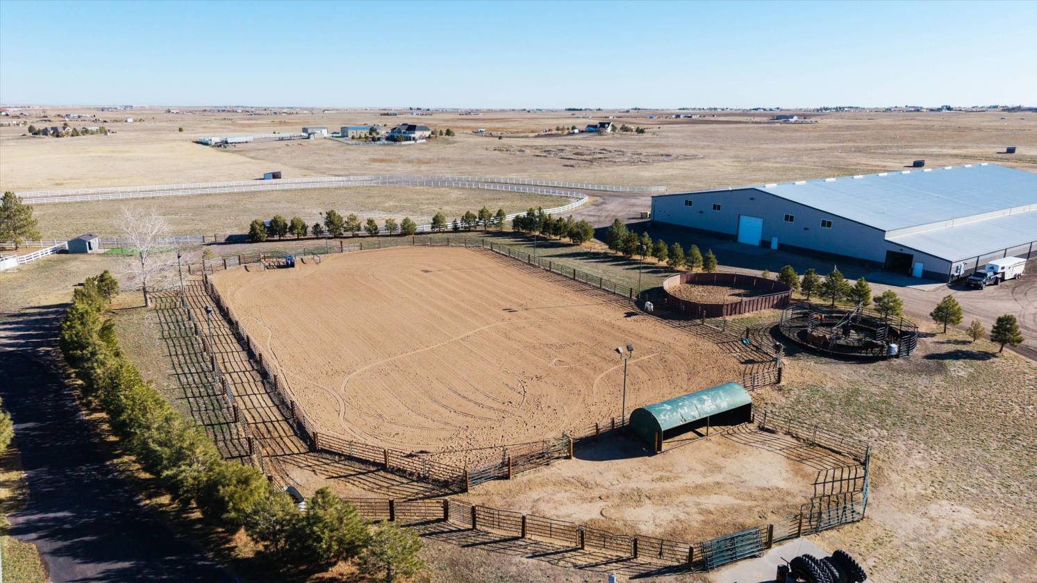 Now Offering Bar Double J Ranch, one of Colorado's premier equestrian estates. Situated on 75+/- acres. State of the art heated 180x300 indoor arena complete with full bar/office/apartment/mens and ladies restrooms, event approved/ 20 12x12 stalls/Rv hookups/event approved. Great location only 15 min to DIA and Denver. Features custom 7046 sq ft 5 bedroom/5 bath home/ Walkout basement/Swimming Pool/Outdoor living area/Viking Range/Granite. Outdoor arena/lights/Priefert walker/Round Pen/ barn/shop/6 stalls/Aqua tread/walk in Cooler/Guest quarters. Fenced pastures/large turnouts/multiple sheds/ runs/Hay barn/ Apt for help or guest quarters/gated entry and so much more. Incredible views off paved road. This is truly one of a kind with so many custom features!