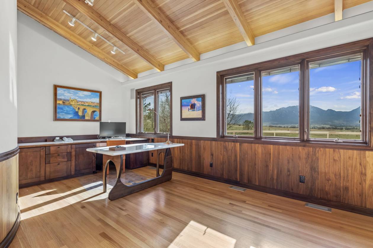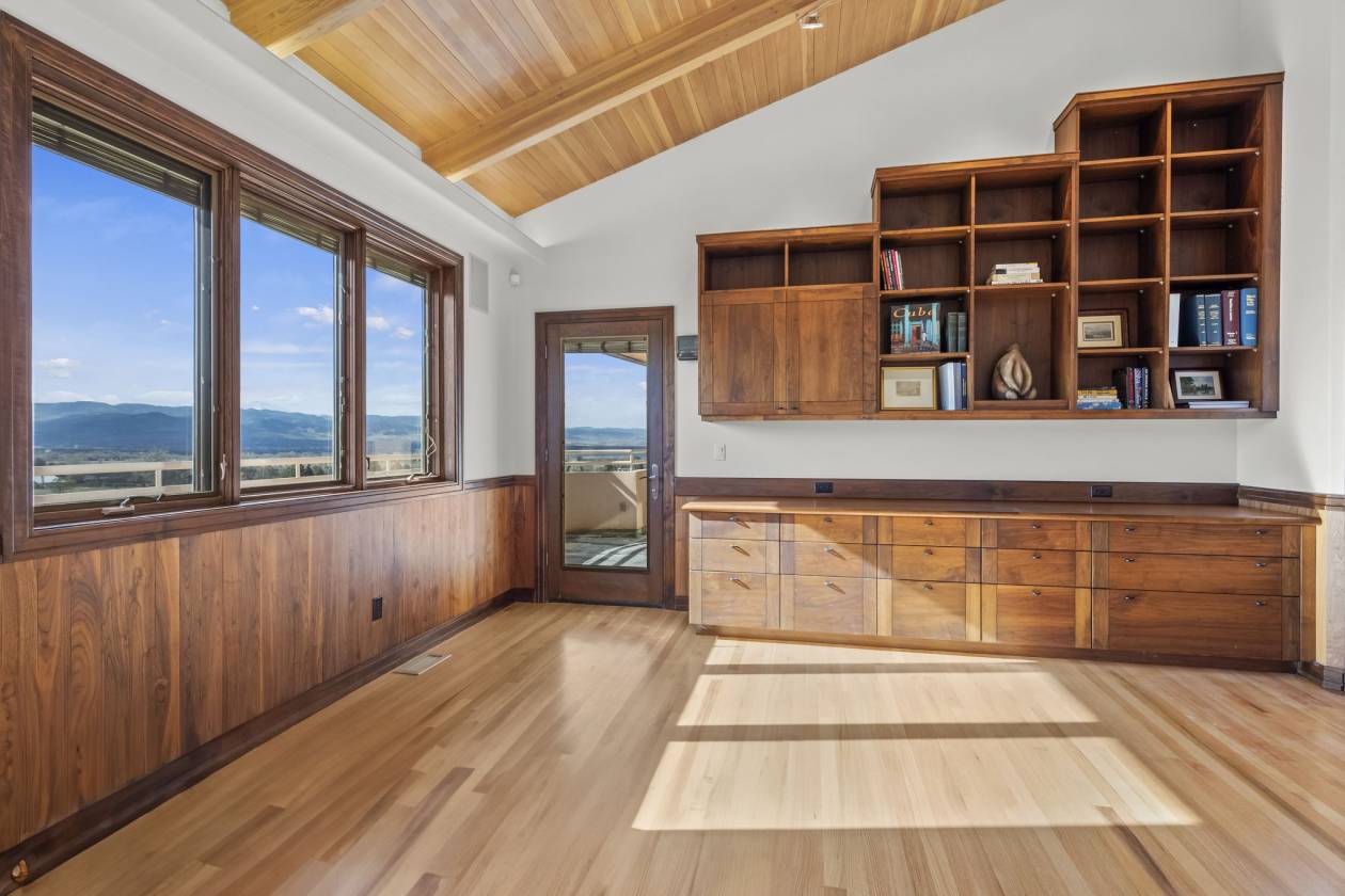 - Office – views to the mountains; access directly to the main level balcony; custom walnut Wainscoting and built-ins