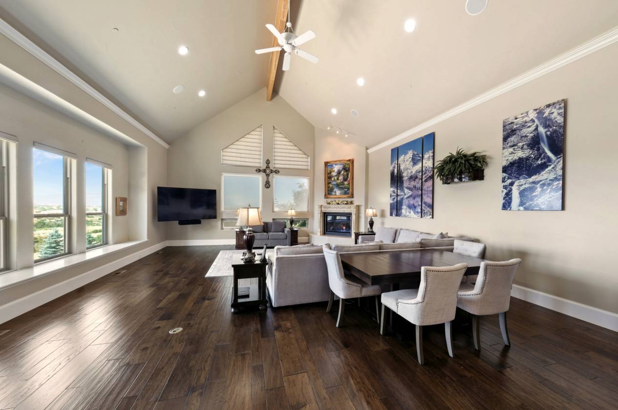 - ● Primary Suite: Fireplace, vaulted ceiling, panoramic views, automatic blinds
