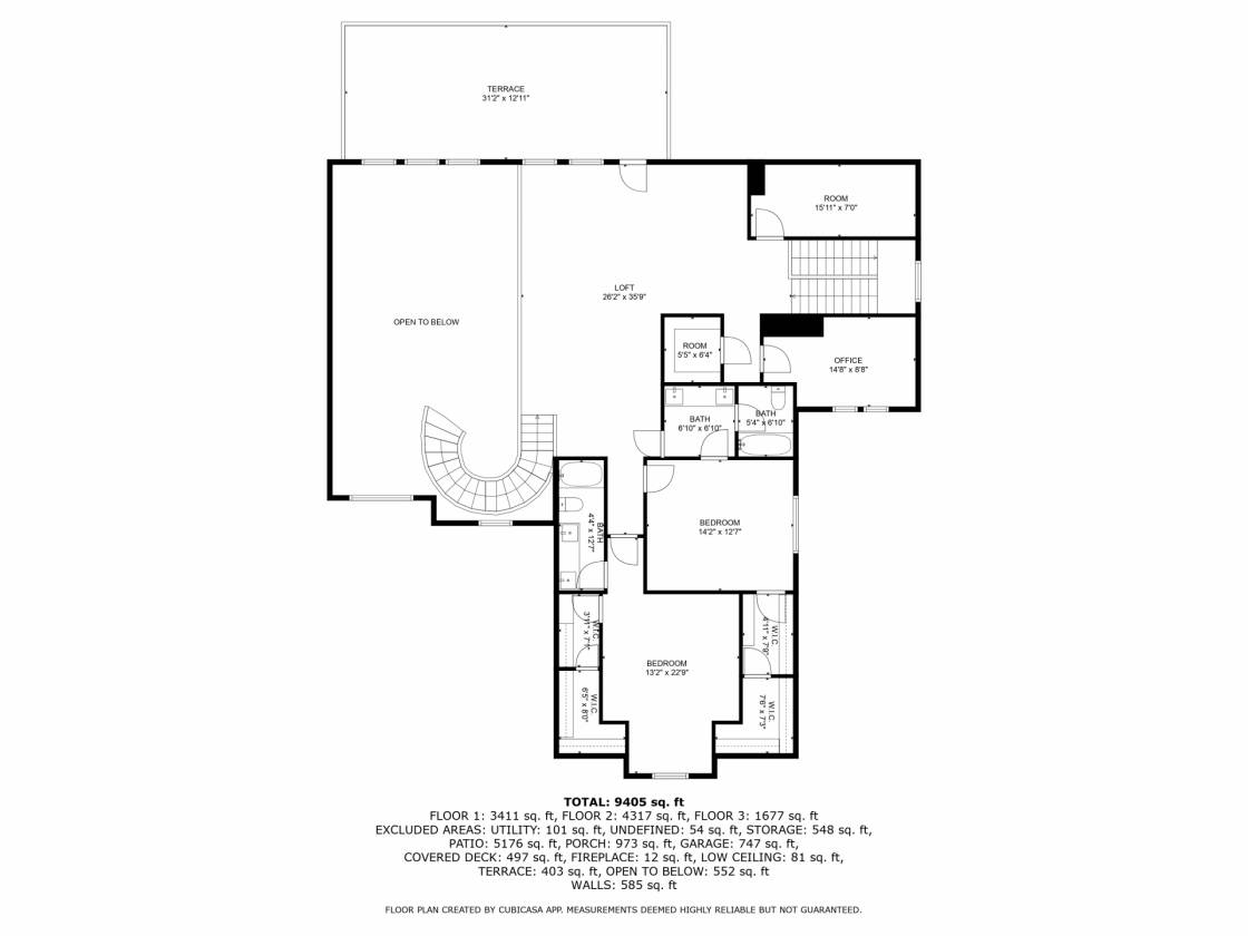 - ● Loft: Open, access to viewing deck, additional small study/office space