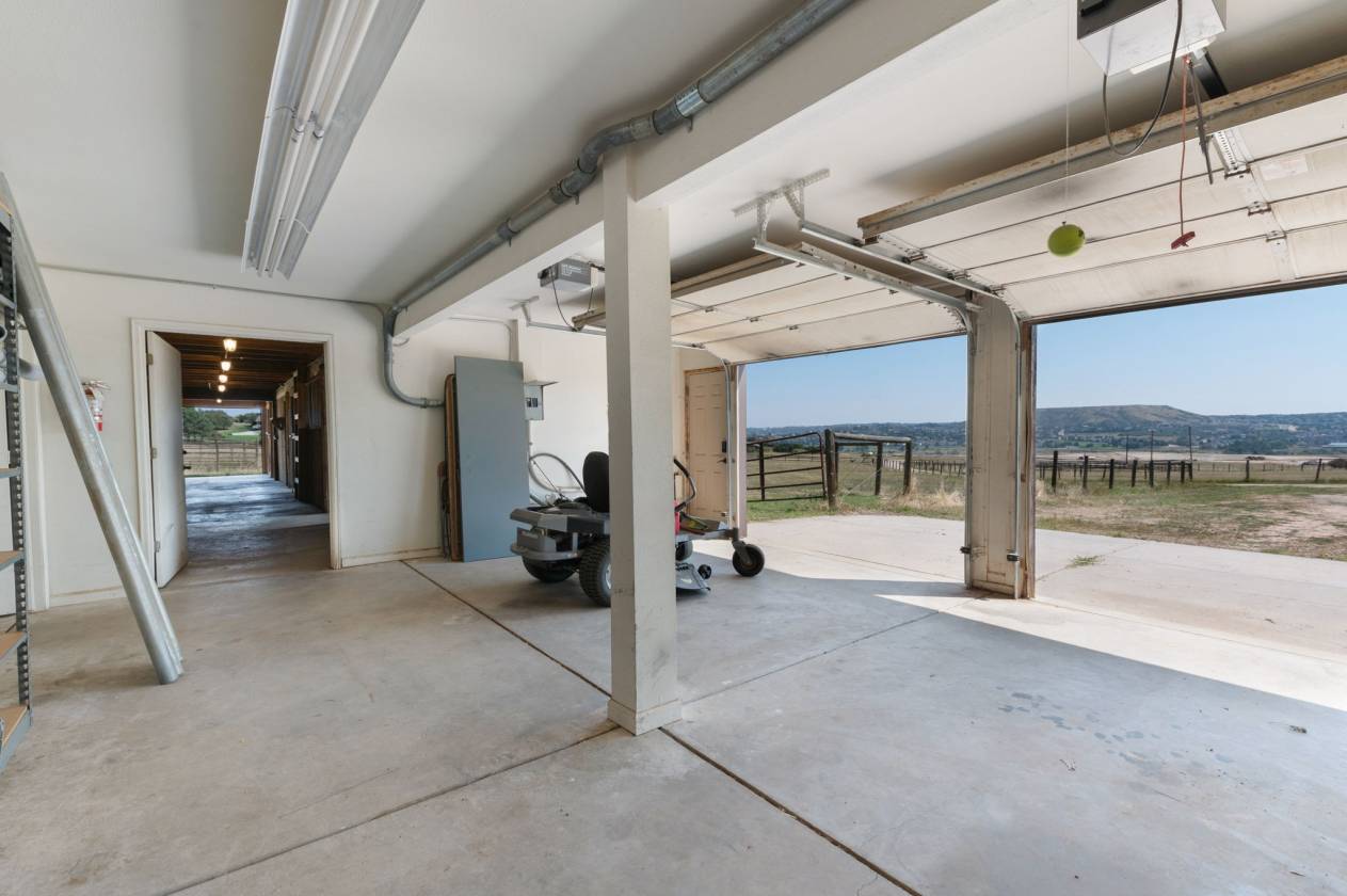 - - 7 stall auto watered barn with hay drop in stalls, a tack room, pen, adjoining oversized workshop and oversized 2 car garage