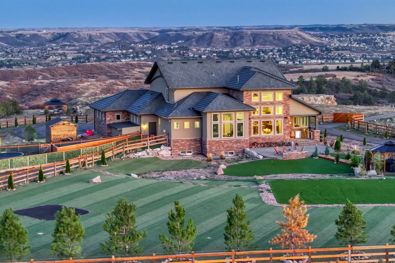 One of the best views in all of Douglas County from a private gated community & gated property w/security. On top of a mesa, 10 minutes from downtown Castle Rock, this luxury home & horse property has 35 acres with amazing 360 degree views of the front range from Ft. Collins to CO Springs, & Castle Rock city lights.