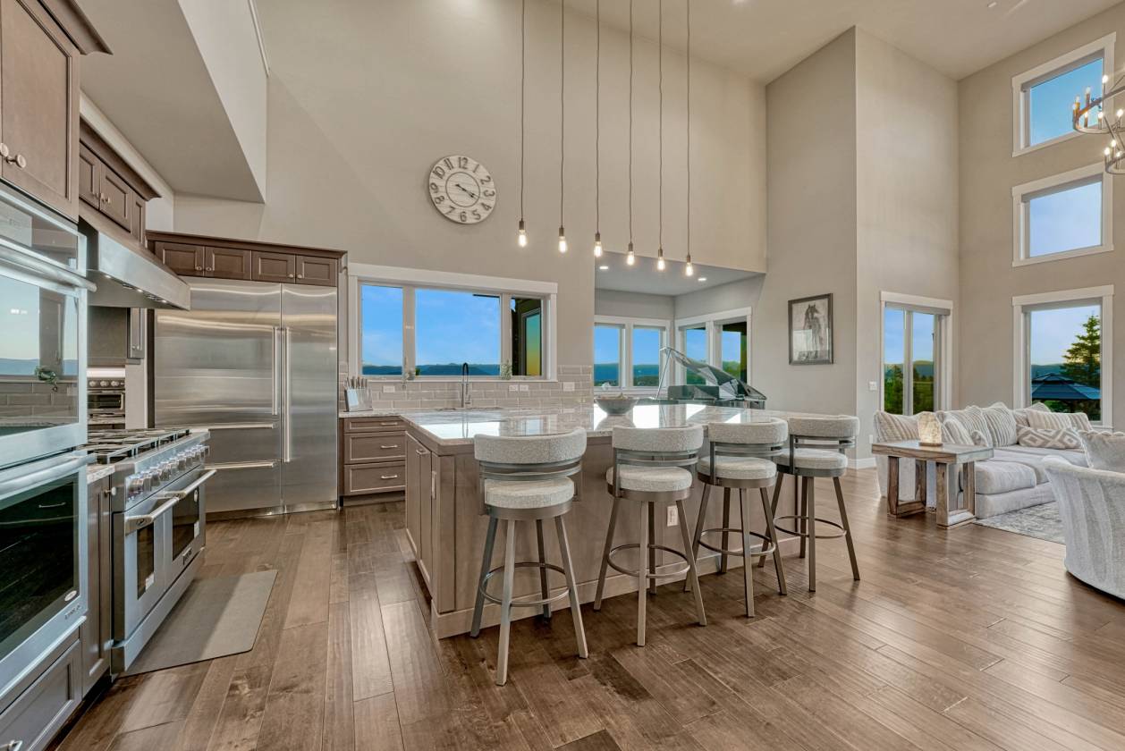 - Stunning finishes include a gourmet kitchen with a sub zero refrigerator, 4 ovens, 7 burner gas range, 2 beverage cooling drawers, 2 dishwashers, large slab granite kitchen island, walk-in pantry, 8' doors. Great room includes a beautiful stone fireplace surround, 25' ceiling, glass wall for picturesque views, auto remote windows coverings, and walks out to a covered patio, 2nd kitchen w/pizza oven. Main level primary suite is equally impressive with 13' ceilings, large picture windows, fireplace, 5 piece bathroom, multiple shower heads, exceptionally large walk-in closet w/built-ins & locking jewelry drawers. Upper level has 2 bedrooms w/en suite full bathrooms & loft. Basement includes an open game room, media area, wet bar w/wine cooler, exercise room, 2 bedrooms w/en suite bathrooms, geo thermal heat/cooling system, multiple unit water filtration system, tankless water heater, whole home fire suppression & radon mitigation systems.