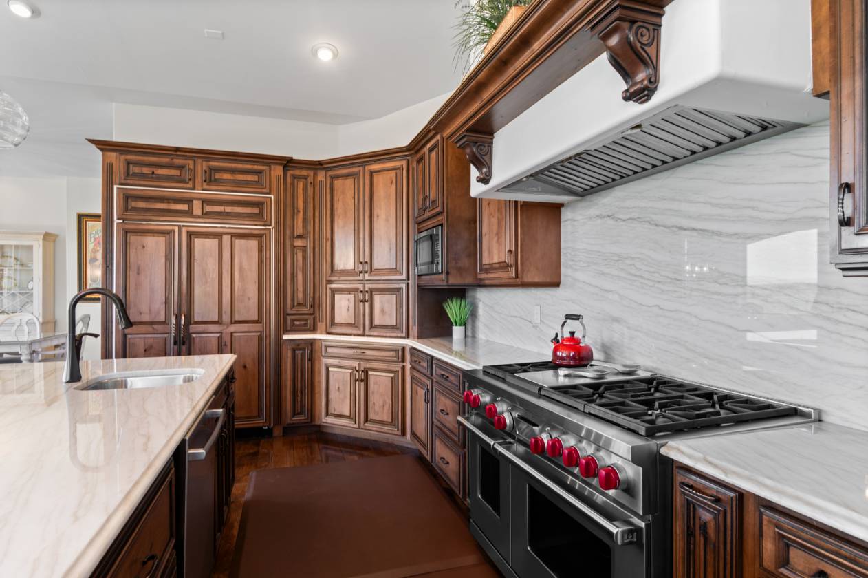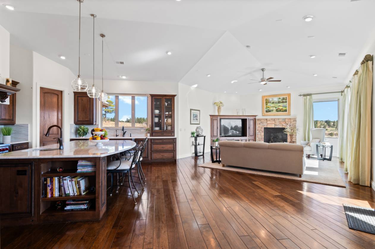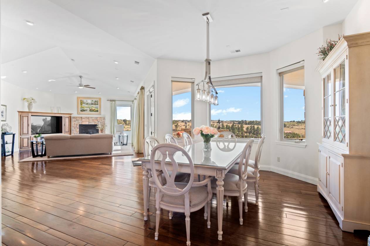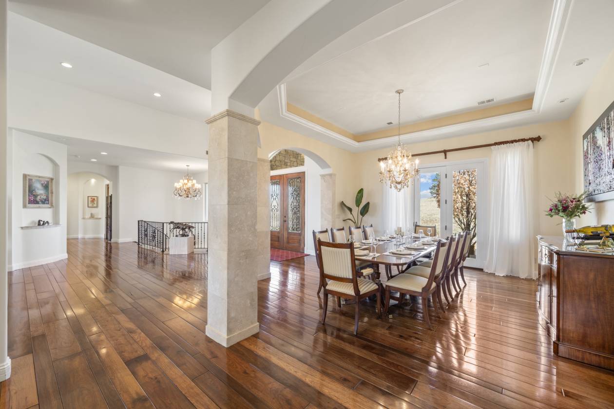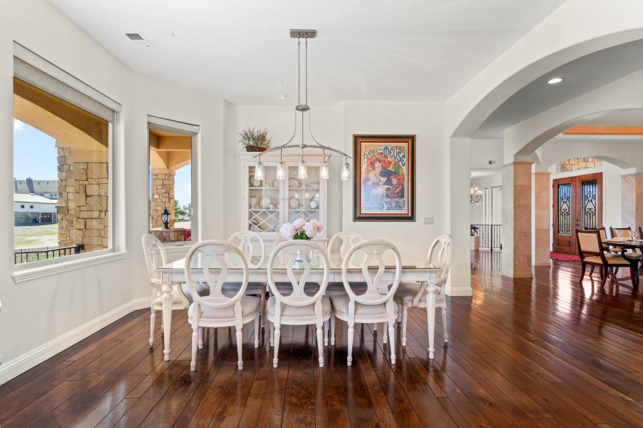 A masterpiece of luxury living in the exclusive enclave of Rancho Montecito. Set on 3.26 private acres, this Tuscan-inspired villa offers timeless elegance, serene privacy, and exquisite design in every detail. One of just 11 custom estates in this coveted, equestrian-friendly community, the property offers a rare combination of seclusion and sophistication—just minutes from downtown Parker. Inside, soaring ceilings, hand-troweled walls, and intricate architectural details define over 8,400 SF of refined living. A grand entrance sets the tone with custom solid mahogany arched French doors that lead into a foyer where Brazilian pecan hardwood floors flow throughout the main level—highlighted by Swarovski crystal chandeliers and anchored by one of many dramatic 95-inch picture windows framing Colorado’s iconic Pikes Peak. The main level also includes a handsome executive office, offering the perfect blend of privacy, natural light, and architectural refinement—ideal for remote work, creative pursuits, or quiet retreat. A chef’s kitchen worthy of any culinary enthusiast features custom Habersham cabinetry, Chantilly Quartzite countertops and backsplash, a Wolf 6-burner range, an integrated Sub-Zero refrigerator, and a walk-in pantry. Beyond a wrought-iron gate, a private vestibule sets the tone for the home’s most intimate wing—where architectural lighting and artful wall insets create a gallery-like transition to serenity. Thoughtfully paired with an adjacent ensuite bedroom ideal for a nursery or live-in care, the primary suite is a retreat unto itself. Vaulted ceilings, a travertine fireplace, and a sitting area invite rest, while a built-in coffee bar, beverage fridge, and spa-level bath complete the experience—all framed by a breathtaking 95-inch window overlooking Pikes Peak. The walk-out lower level offers three additional spacious bedrooms, each with private ensuites and walk-in closets, a full wet bar, recreation room, gym, additional office, and a private guest suite with its own living area and coffee bar—ideal for hosting or multi-generational living. A 3,000 SF patio opens to peaceful, open surroundings. Additional features include a heated driveway, an oversized 4-car garage, and a 1-acre fenced backyard. This isn’t just a home—it’s a legacy property for those who appreciate the finer things in life. Every space, finish, and view reflects exceptional craftsmanship and enduring beauty.