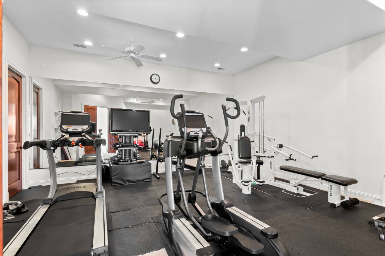 - Full wet bar, gym, recreation room, guest suite with private living area, and multiple offices.
