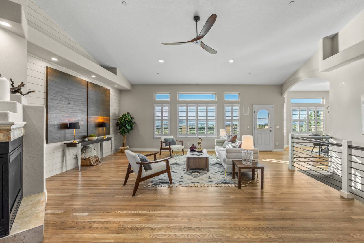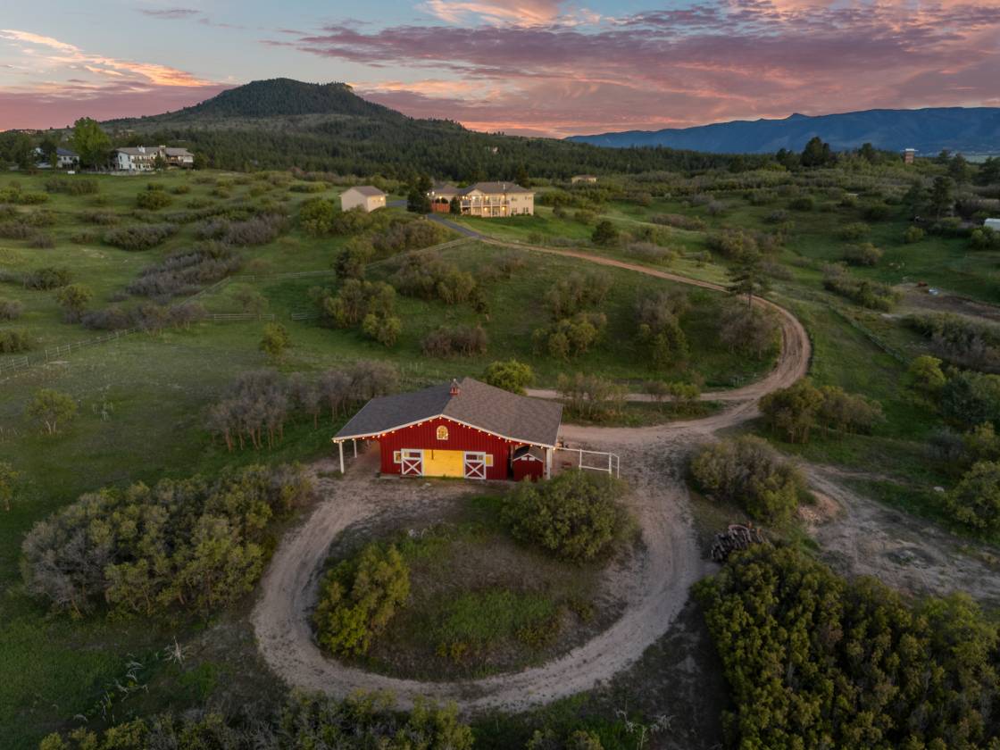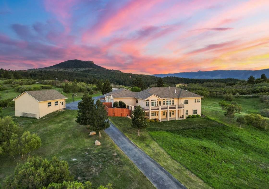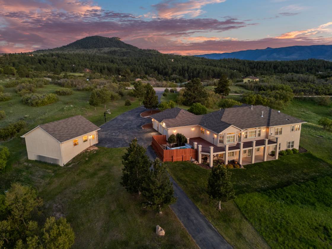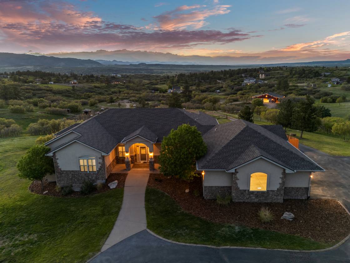 Welcome to this breathtaking 7.7-acre retreat in Sedalia—where the equestrian lifestyle, panoramic mountain views, and refined single-level living converge. This thoughtfully designed walk-out ranch delivers at every turn. With a 1,200 sf custom barn, 1,200 sf attached three-car garage, 750 sf detached two-car garage/shop, and grounds built for both relaxation and recreation, this is more than a home—it’s a way of life. Experience the ease of main-level living with wide-open entertaining spaces, vaulted ceilings and walls of windows that draw the outdoors in. The great room anchors the home, while the formal dining area, breakfast nook, and chef’s kitchen-strike a perfect balance of style and function. Just off the kitchen, an expansive deck invites effortless indoor-outdoor living with sweeping views in every season. The main-level primary suite was designed with intention—anchored by a cozy gas fireplace and filled with natural light, it offers a spa-like five-piece bath with jetted tub and a custom walk-in closet outfitted with its own washer and dryer. Two additional bedrooms provide comfort and flexibility, while a dedicated office and a functional mudroom with secondary laundry off the garage enhance the home’s everyday livability. The finished walk-out lower level offers exceptional versatility, enhanced by high ceilings, abundant windows, and spectacular views that make the space feel anything but secondary. A spacious rec room, wet bar, fitness room, guest suite with private bath, powder room, and a large second office or study create an ideal setting for remote work, entertaining, or multigenerational living. Additional features include a paved driveway, landscaped grounds with front and rear irrigation, a swim spa, and a built-in fire suppression system—every element thoughtfully curated for comfort, safety, and ease of living. This property offers a rare blend of rural tranquility and everyday convenience—capturing the very best of Colorado living.
