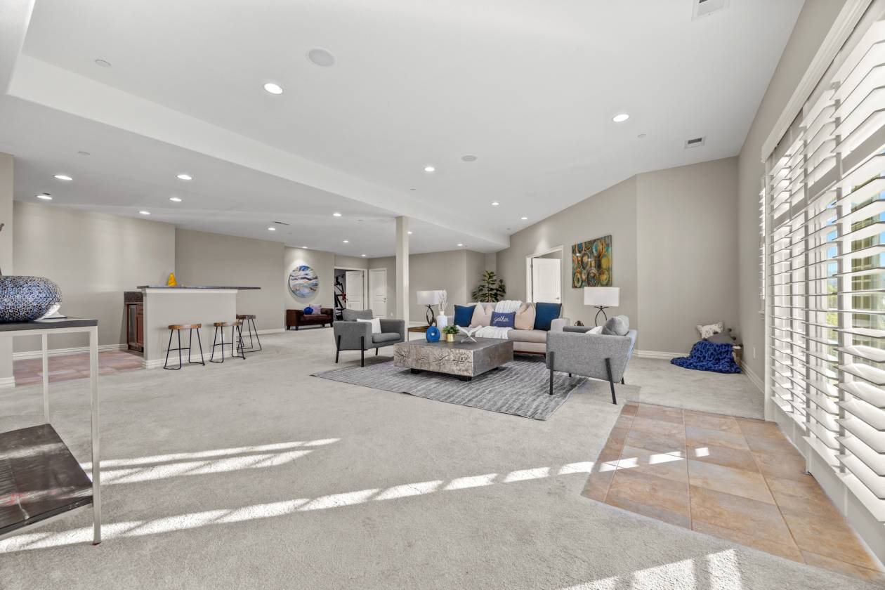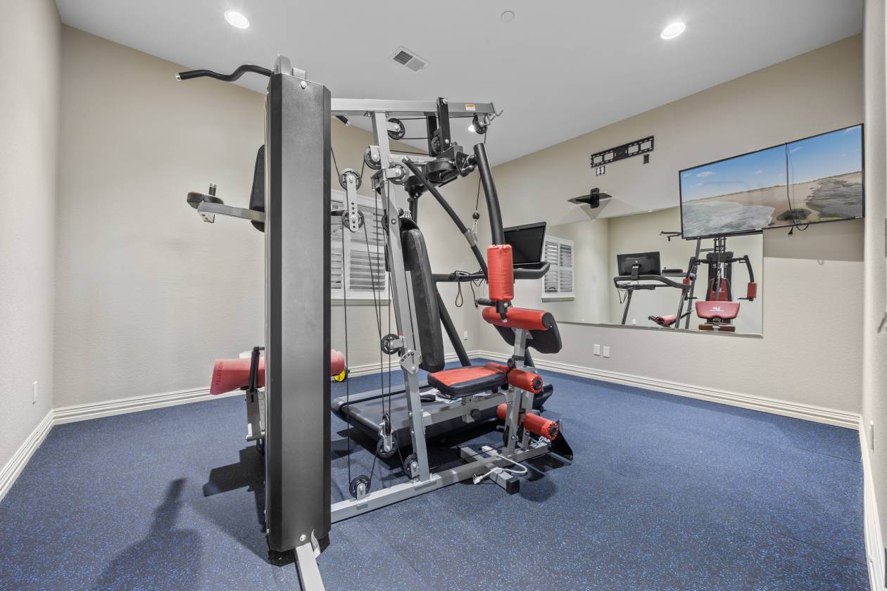 - Gym, rec room, wet bar, and additional office in basement