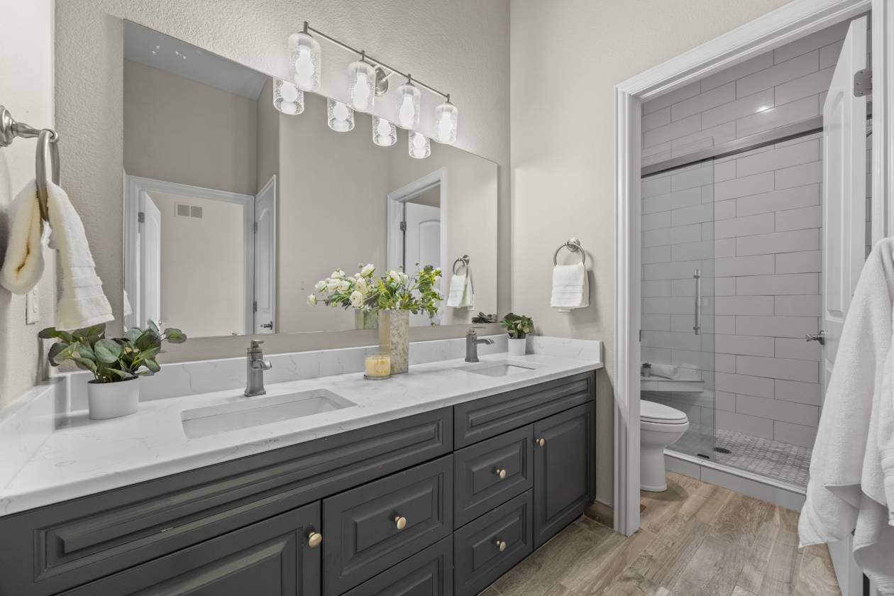 - Plantation shutters throughout