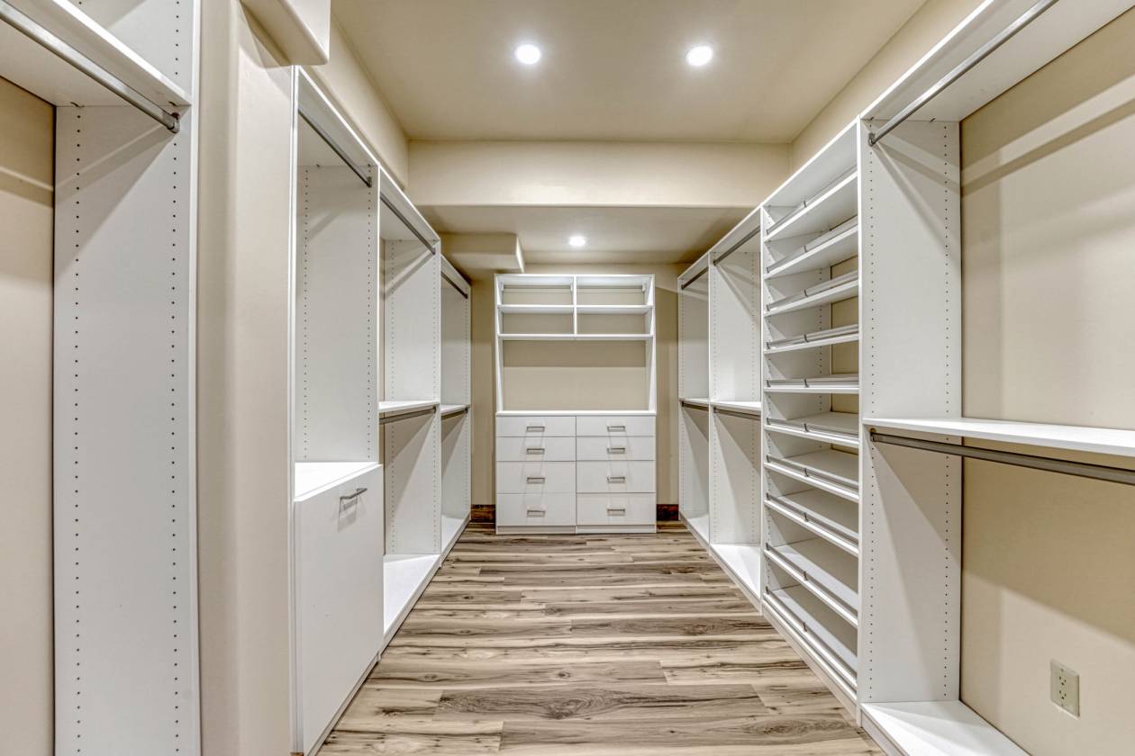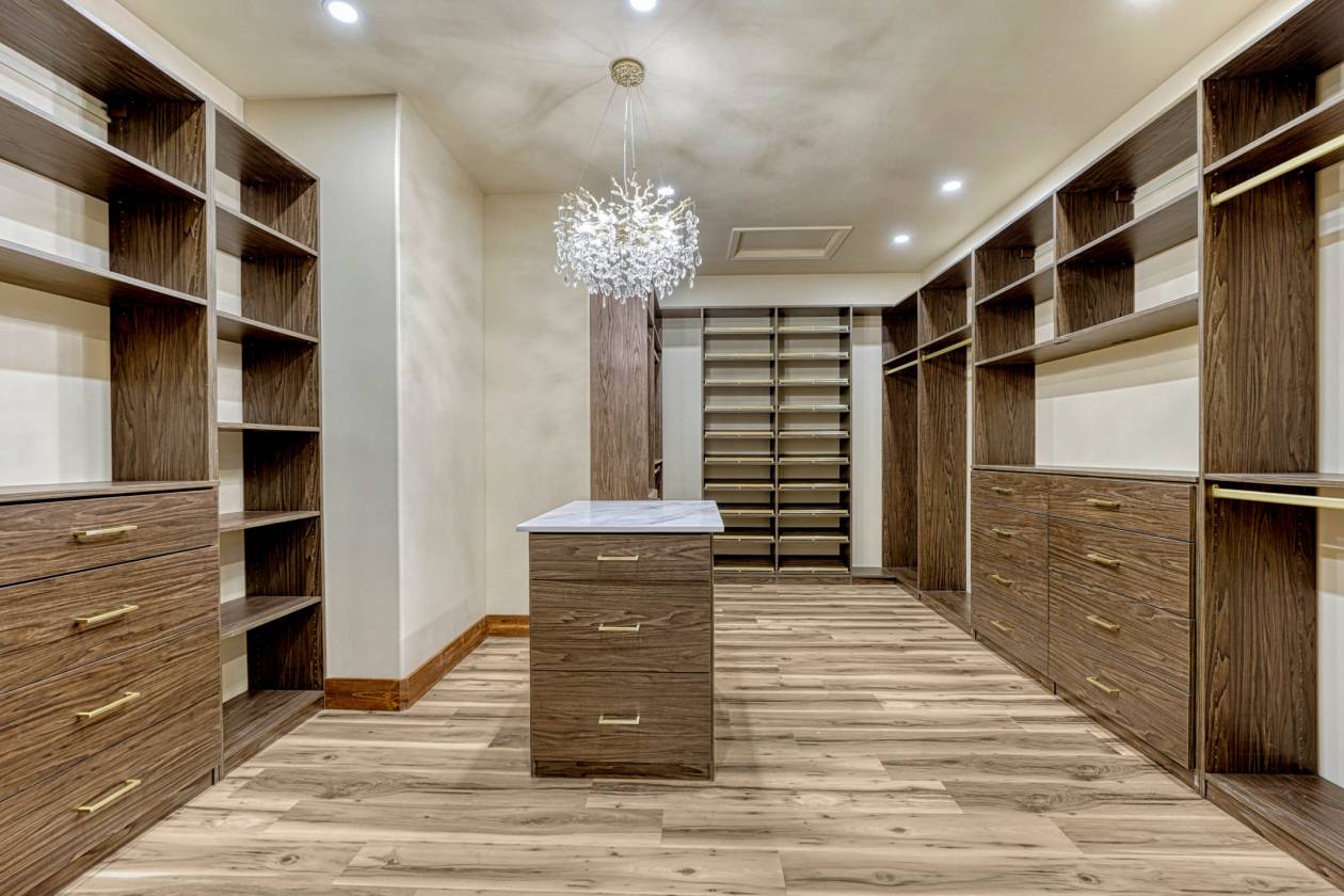 - One story, walkout ranch style house. Open floor plan has high vaulted ceilings, decorative beams, grand chandelier, 7" hickory floors, floor to ceiling wood fireplace surround which is beautifully mirrored on the exterior of the home, and a full wrap around deck. There is an abundance of natural light with all new windows, sliding glass doors, and upper view windows. Kitchen boasts slab soap stone counters, large entertainment island, all new appliances, charcoal stone back splash, walk thru pantry/coffee bar. Main level primary bedroom has a vaulted ceiling, double glass doors that walks out to the wrap around covered/uncovered deck on 3 sides of the home. Primary bathroom is equally as impressive with two toilet rooms, slab tile floors, walls, & wainscot, glass shower enclosure, deep soaking tub, and an oversized walk-in closet with built-in shelves, dressers, and chandelier. Basement has 2 bedrooms, 2 full bathrooms, large game room, wet bar, and walks out to the new lower level deck. One of the bedrooms could be a 2nd primary bedroom due to the design, size, walk-in closet, and full bathroom.