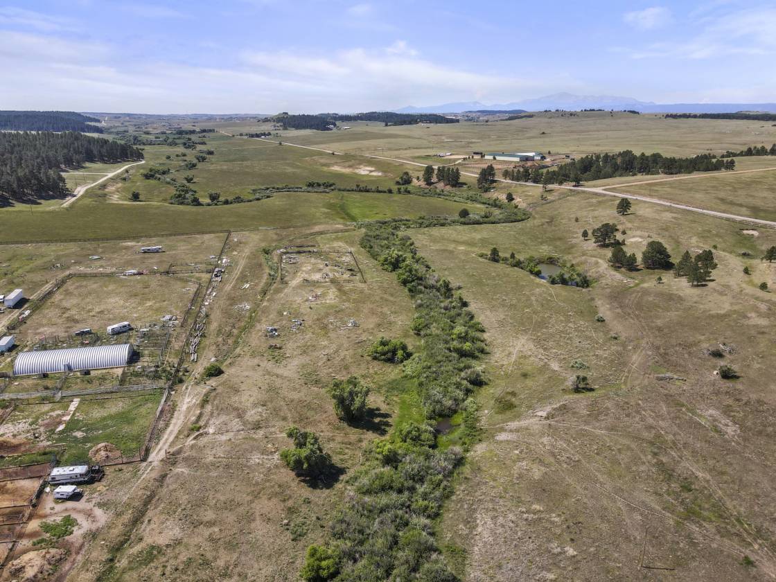 Stunning scenic and sought after south Douglas County property with 35 acres! History abounds on this gorgeous 35 acres with a year round stream (Cherry Creek) flowing through the property, towering mature cottonwoods line the stream, Ponderosa Pines, lush grasses, majestic views of the surrounding treed hills with rock outcroppings. This property is apart of the historic East Cherry Creek Stock Farm established in the 1860's. Since the property has a year round water source there are is so much wildlife - tons of birds, fox, coyote, deer and elk. No covenants or HOA. Possibility of purchasing additional water rights. Located on county maintained roads. Prime location only 28 minutes to Castle Rock, 43 minutes to Denver, 30 minutes to Colorado Springs. The property is zoned for horses, livestock, chickens. Barns and outbuildings allowed. Low agricultural based taxes. Great access to Highway 83 and I-25. Surrounded by large ranches with an abundance of privacy. The western boundary are fenced with high quality welded pipe run fencing. It is very rare to have the opportunity to purchase large acreage with trees, live water and views - - see this property quickly!!