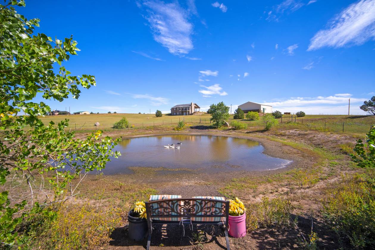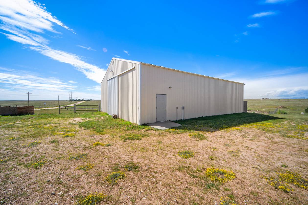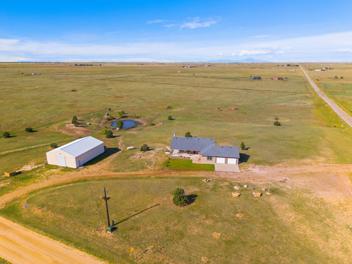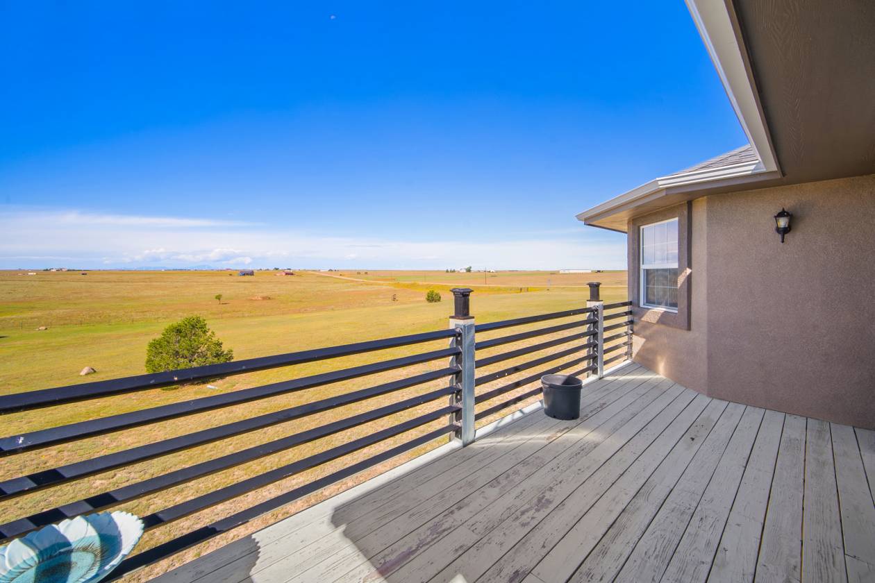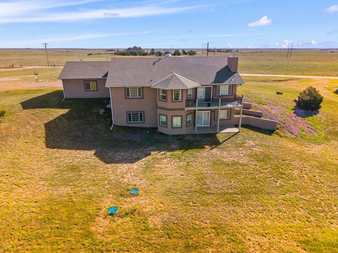 Relaxing country life in Calhan on more than 35 acres of groomed land with mineral rights. Easy access right off the highway on a paved road over 35 acres is fenced, and all livestock is welcome. The 60X40 barn/workshop has a brand-new roof and two stalls with Stall mats and a double, automatic waterer for animals. The home has been completely re-painted, w/ new gutters & downspouts, new insulated garage doors, new screens on windows, and a new roof on 60" X 40" barn and workshop that is insulated. This custom home has everything you could want main level living, move-in ready, 4 bedrooms, 3 bath, Dedicated office or could be used as another bedroom. 871sf 2-car oversized attached garage. Enjoy the amenities of this country estate including prepared pond, 50 X 100-, and 285-yard developed shooting range. The main level in the house has a great room with kitchen, dining, and living area with architectural 10'+ ceilings and ledges, master retreat with attached 5-piece bathroom, office, powder room, laundry, drop zone off of the garage, and al brand new multiple sliding doors walking out to the wrap around covered front porch and back deck with lower patio w/ amazing expansive views overlooking the property & Pikes Peak. Watch the sunrise to the east and the sunset to the west every day. The walkout basement features built-in architectural shelving, 9' ceilings, 2 more bedrooms, bathroom, huge recreation area, and sliding door walkout to the stamped concrete covered patio. All together there are 656sf of outdoor stamped concrete patios, porches, and decks, for peaceful enjoyment or entertainment. This stunning home has many custom features, built in whole house vacuum system, including a beautiful multi-level staircase with custom railings designed just for this home! New furnace in 2023. Domestic Well for your animals. This home does have cell signal, high speed internet, & digital TV services! This amazing country estate will not disappoint, come see this home today.