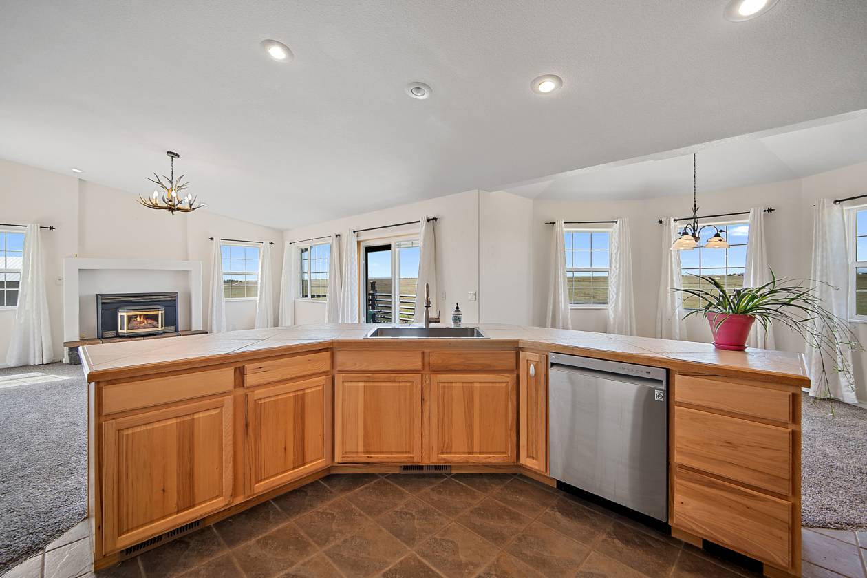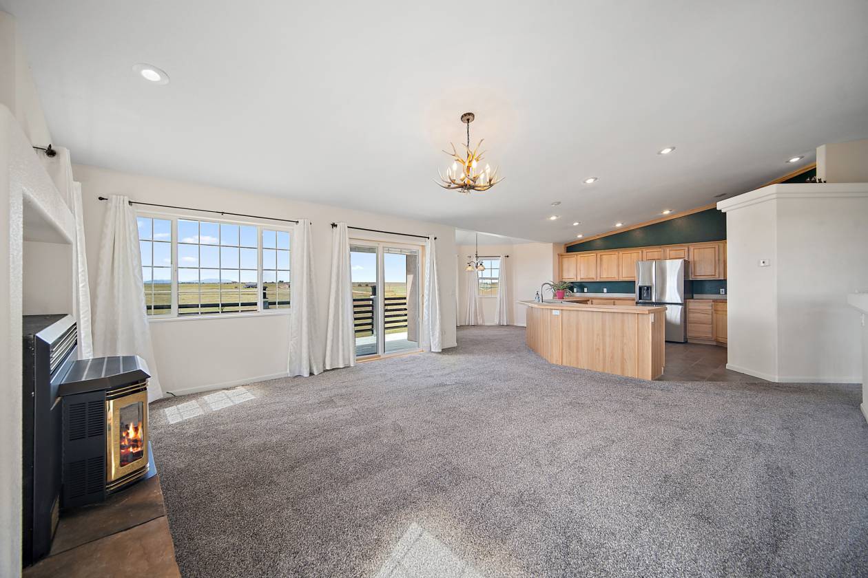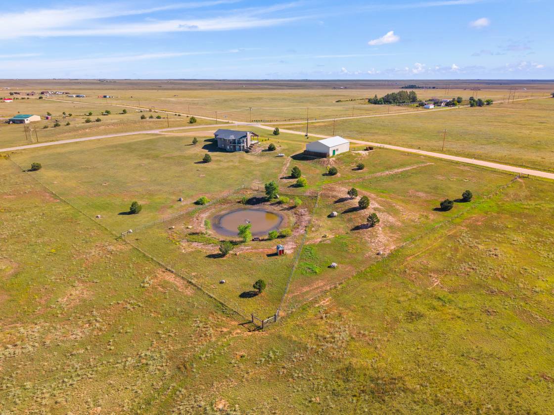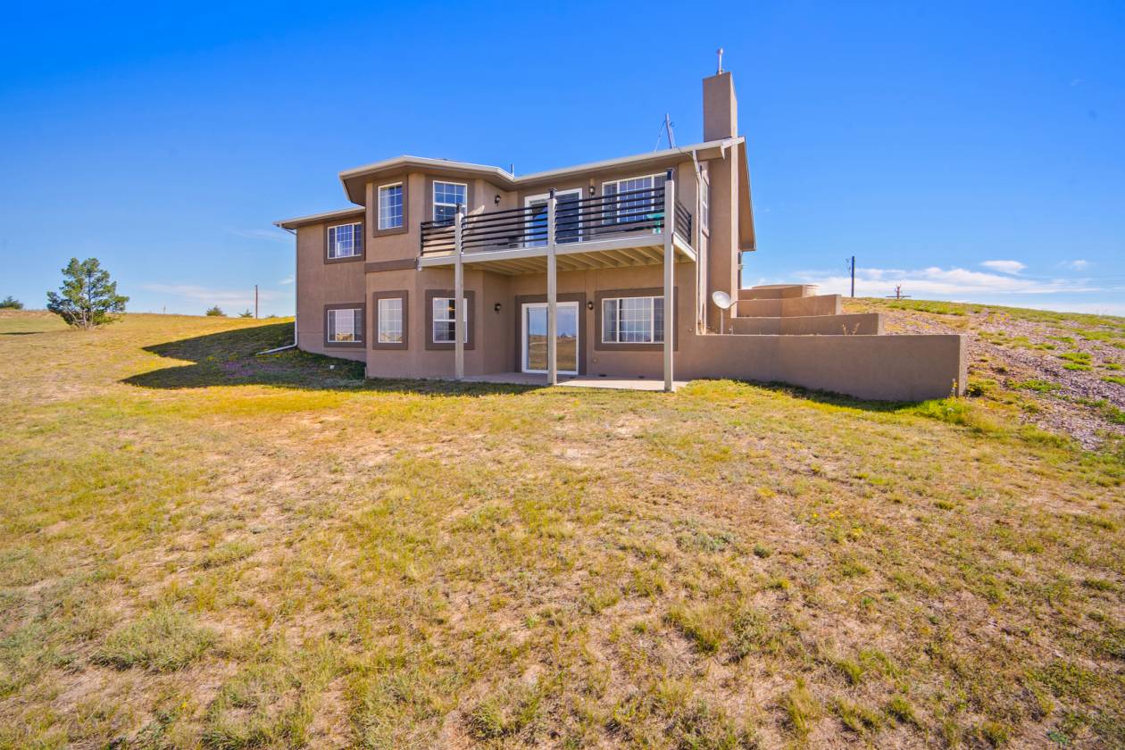Relaxing country life in Calhan on more than 35 acres of groomed land with mineral rights. Easy access right off the highway on a paved road over 35 acres is fenced, and all livestock is welcome. The 60X40 barn/workshop has a brand-new roof and two stalls with Stall mats and a double, automatic waterer for animals. The home has been completely re-painted, w/ new gutters & downspouts, new insulated garage doors, new screens on windows, and a new roof on 60" X 40" barn and workshop that is insulated. This custom home has everything you could want main level living, move-in ready, 4 bedrooms, 3 bath, Dedicated office or could be used as another bedroom. 871sf 2-car oversized attached garage. Enjoy the amenities of this country estate including prepared pond, 50 X 100-, and 285-yard developed shooting range. The main level in the house has a great room with kitchen, dining, and living area with architectural 10'+ ceilings and ledges, master retreat with attached 5-piece bathroom, office, powder room, laundry, drop zone off of the garage, and al brand new multiple sliding doors walking out to the wrap around covered front porch and back deck with lower patio w/ amazing expansive views overlooking the property & Pikes Peak. Watch the sunrise to the east and the sunset to the west every day. The walkout basement features built-in architectural shelving, 9' ceilings, 2 more bedrooms, bathroom, huge recreation area, and sliding door walkout to the stamped concrete covered patio. All together there are 656sf of outdoor stamped concrete patios, porches, and decks, for peaceful enjoyment or entertainment. This stunning home has many custom features, built in whole house vacuum system, including a beautiful multi-level staircase with custom railings designed just for this home! New furnace in 2023. Domestic Well for your animals. This home does have cell signal, high speed internet, & digital TV services! This amazing country estate will not disappoint, come see this home today.
